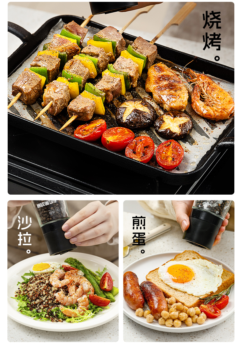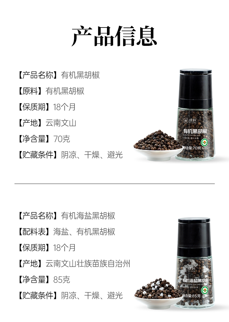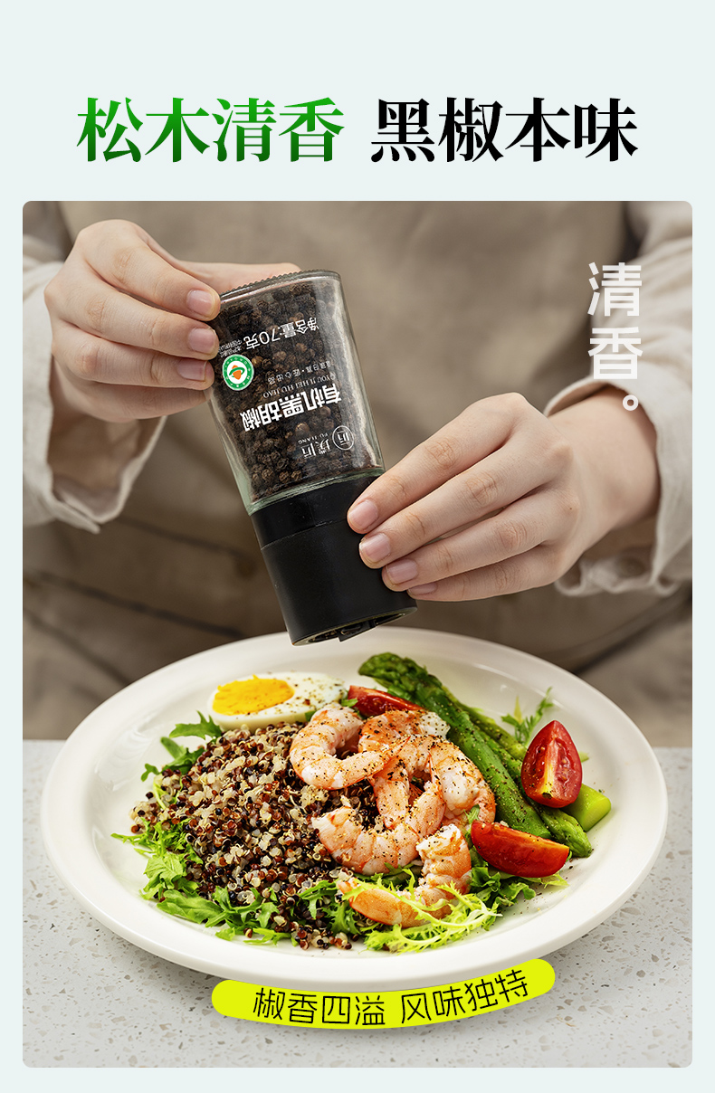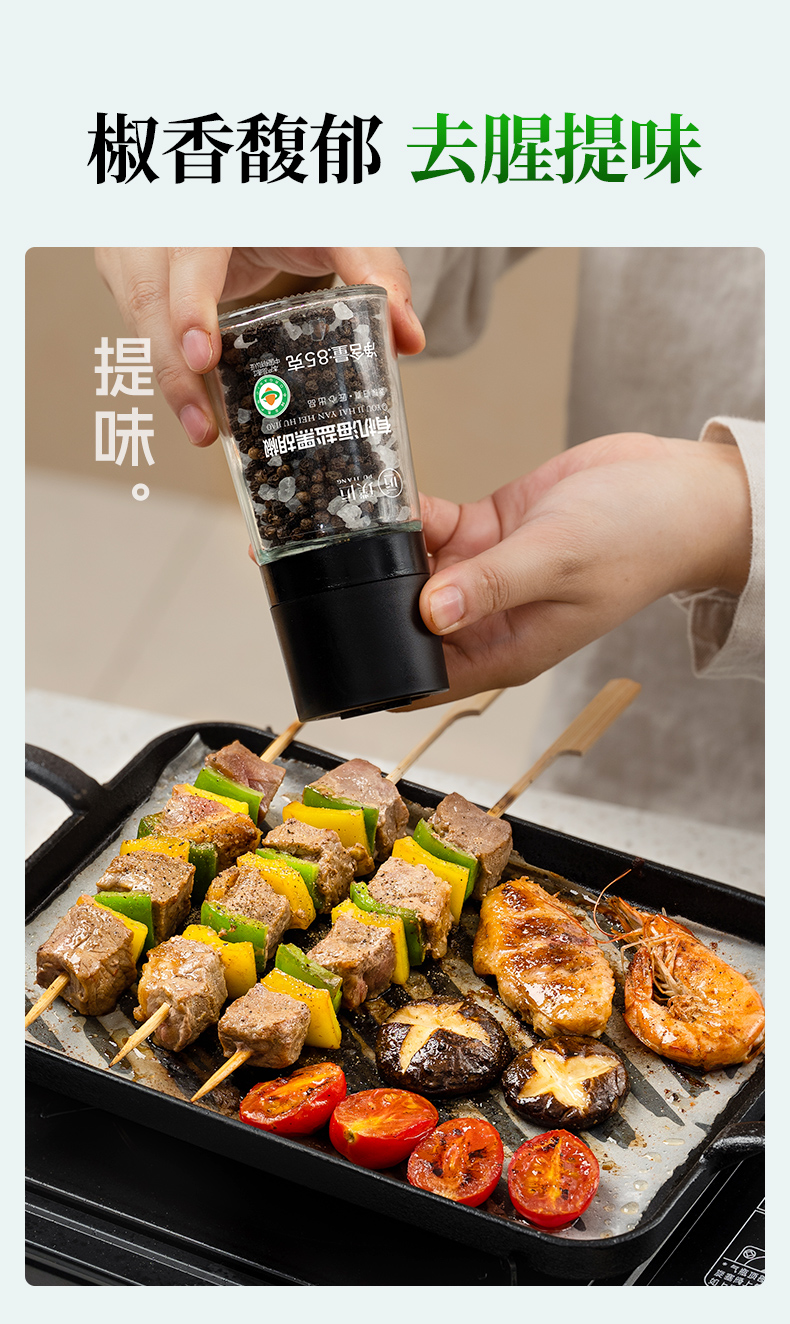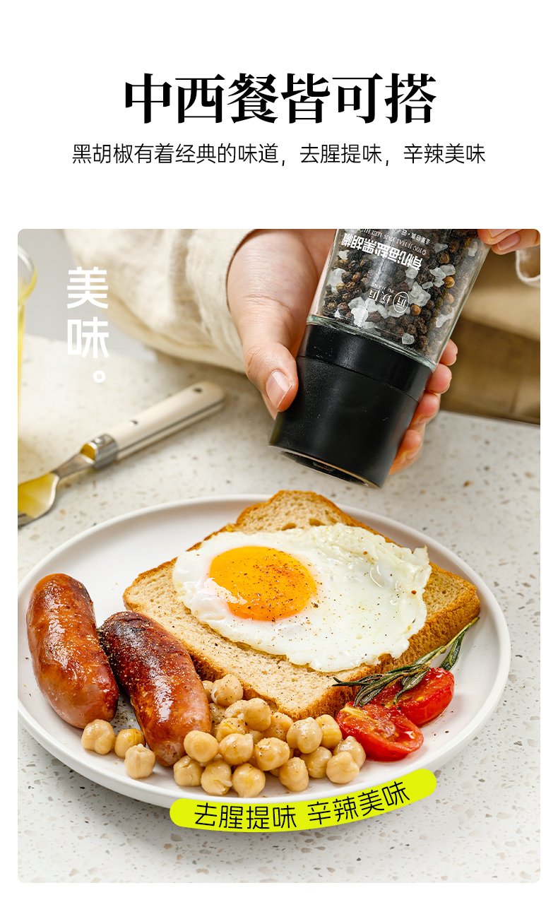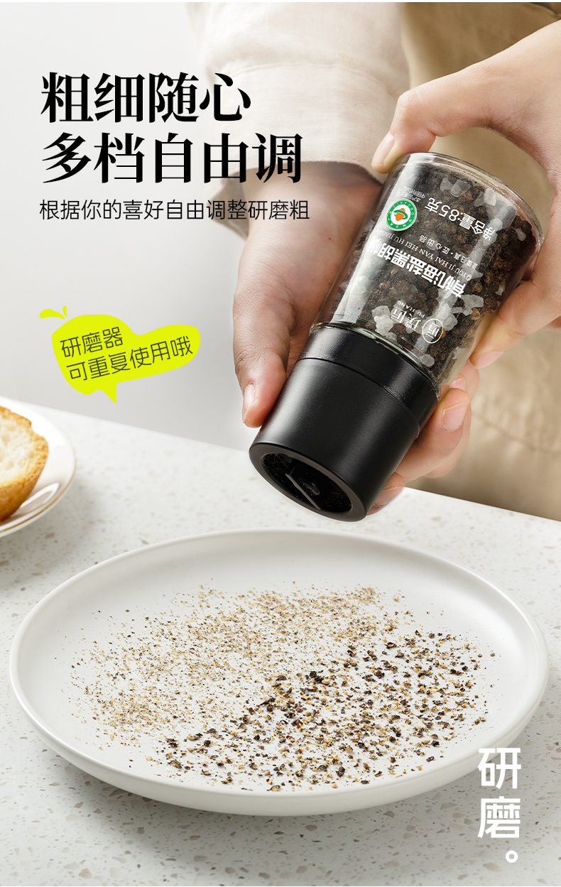 璞匠有机海盐黑胡椒颗粒带研磨器胡椒粉瓶装健身牛排意面调味料