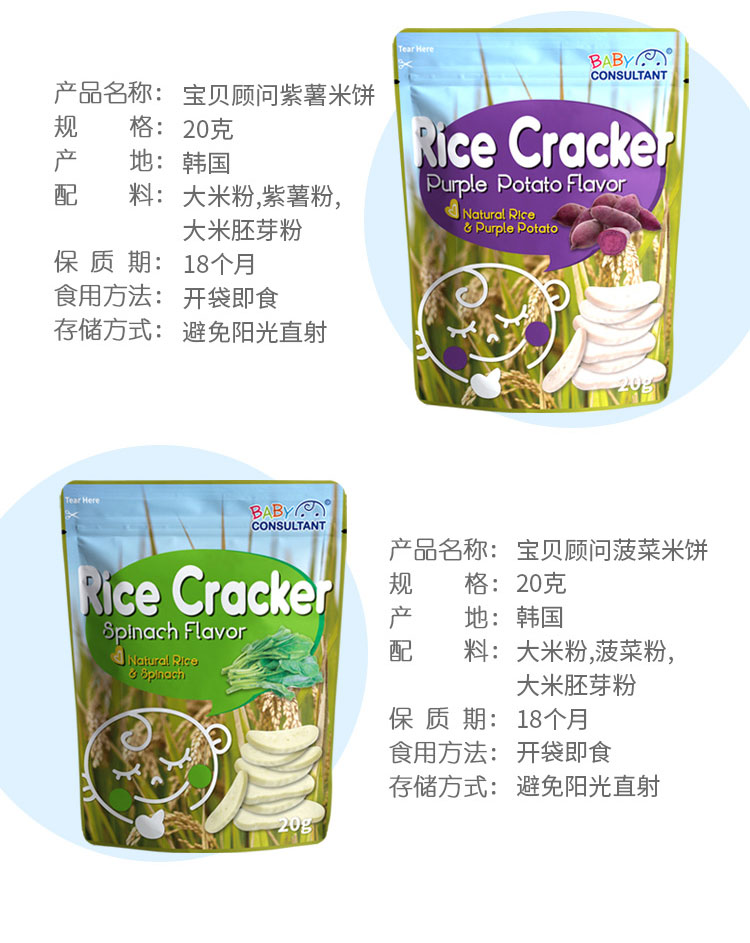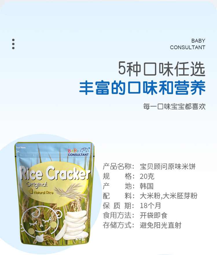 宝贝顾问米饼韩国进口宝宝辅食儿童米饼磨牙棒饼干20g/袋