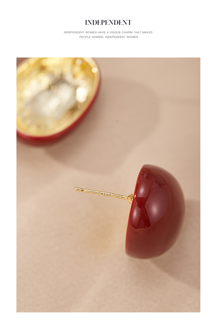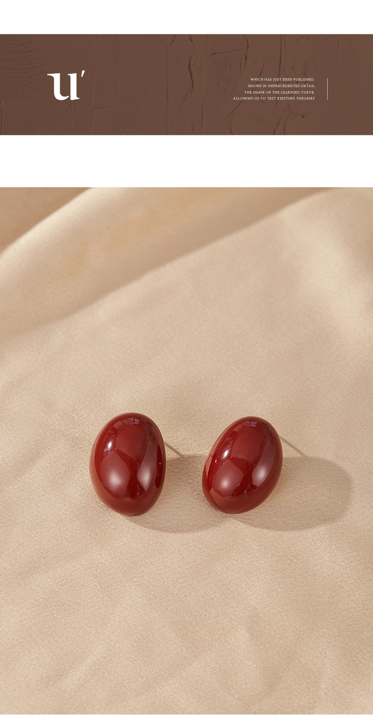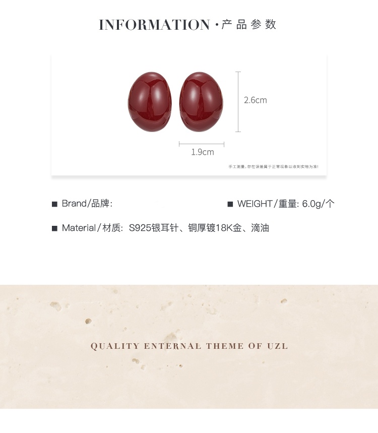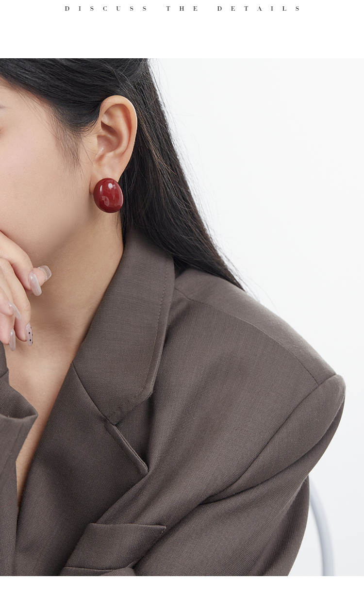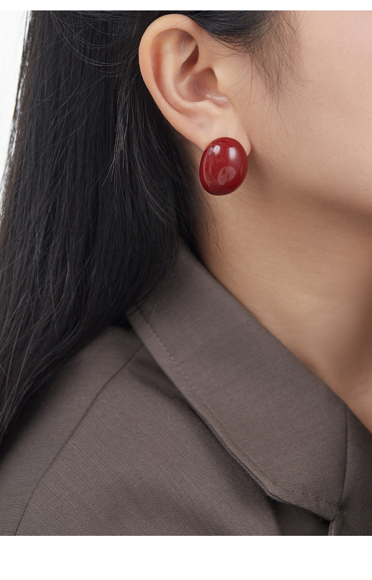 Oflye潮流饰品 小众设计高级感酒红色椭圆金属耳钉耳环女新款法式耳饰潮