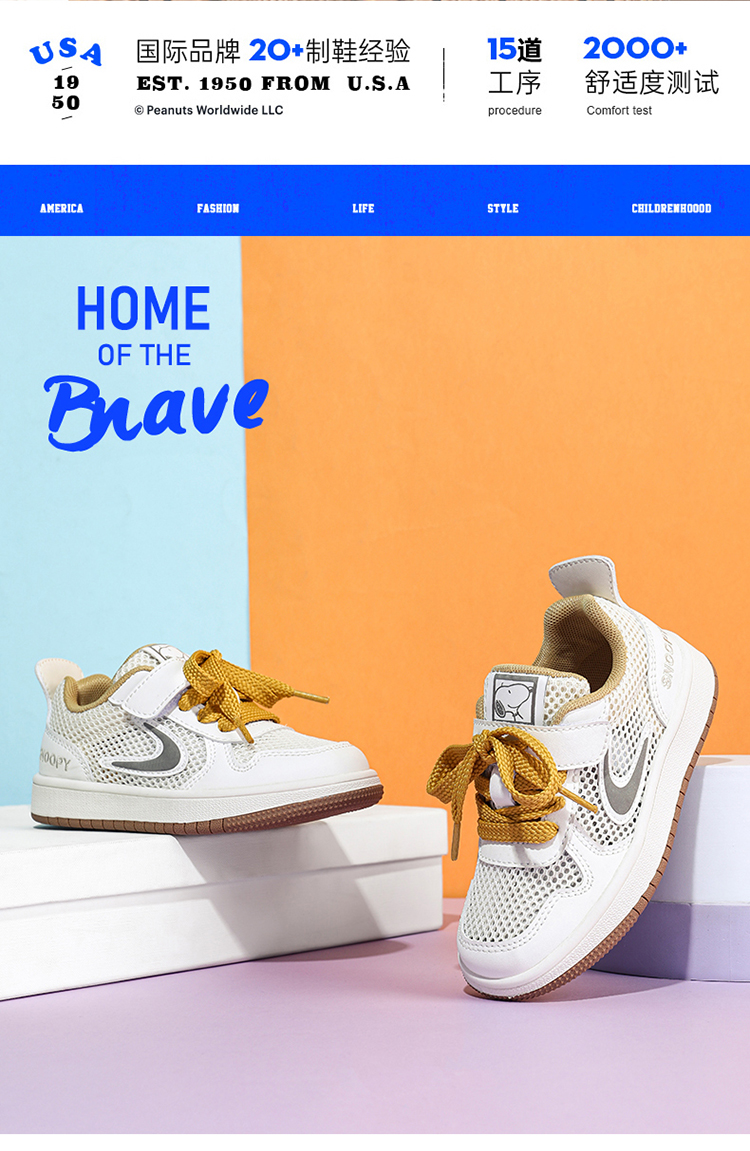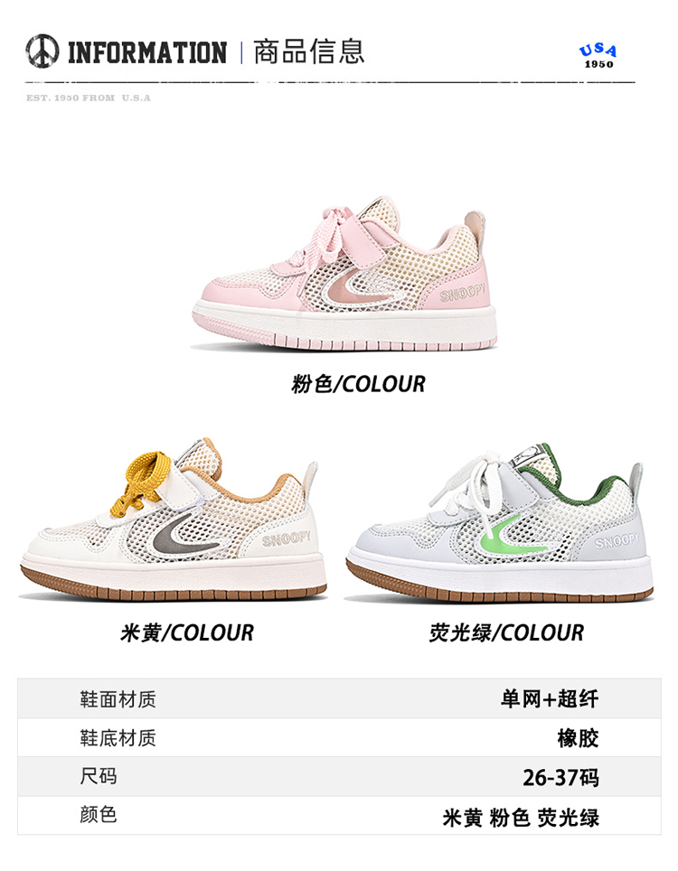 【史努比】儿童鞋板鞋春夏网面透气小白鞋软底舒适板鞋26-37