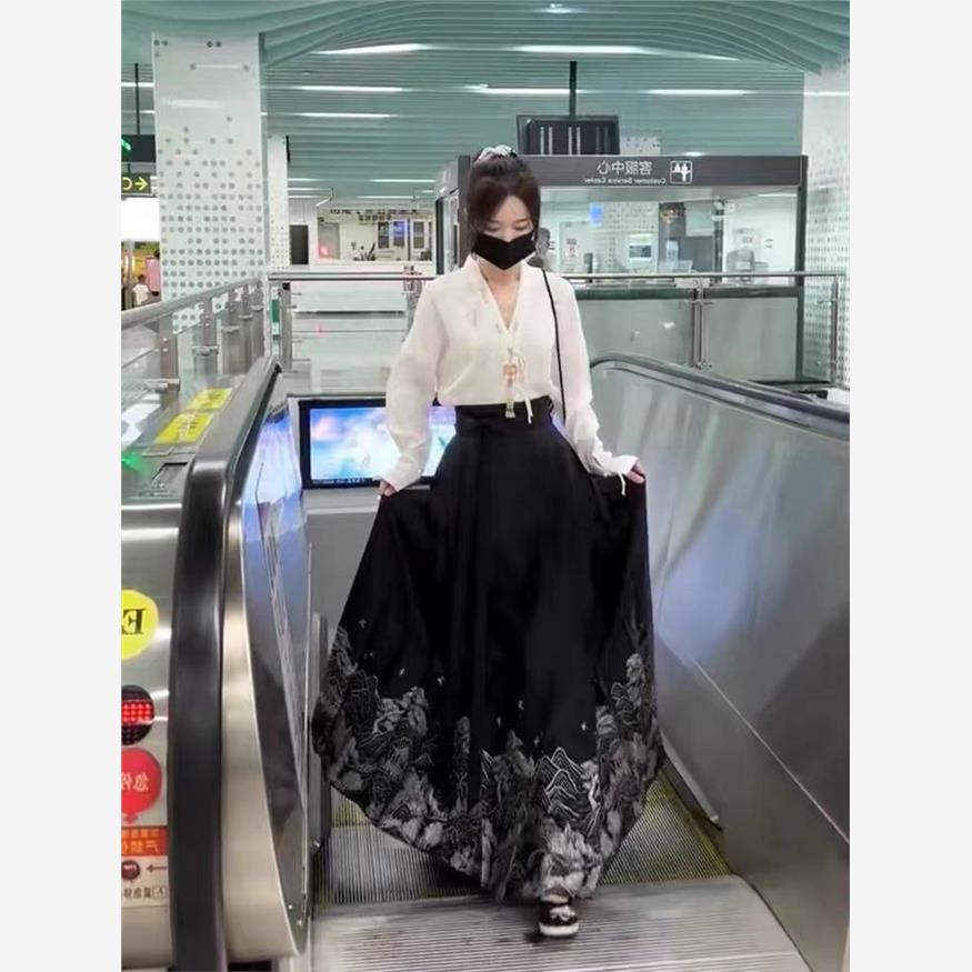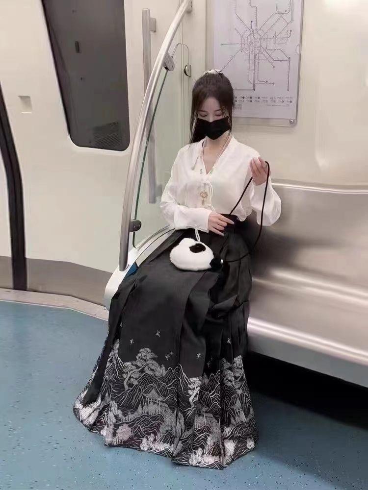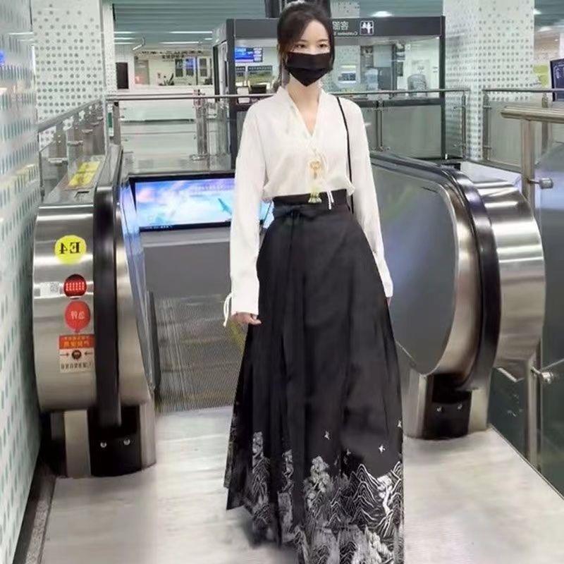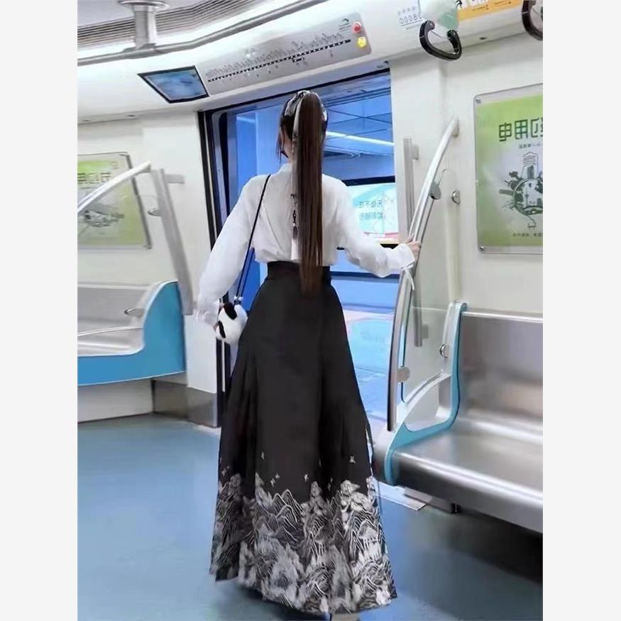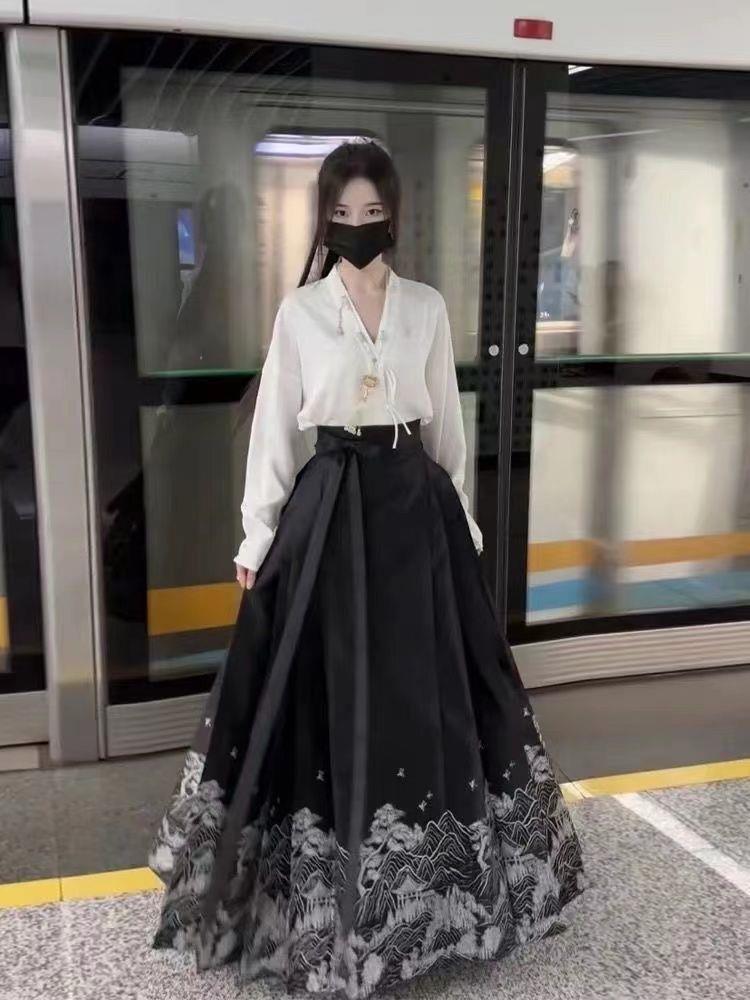 【新中式国风爆款马面裙】24新款马面裙全套新中式国风马面裙改良汉服休闲纯色衬衫套装女装-FSXPDC0401