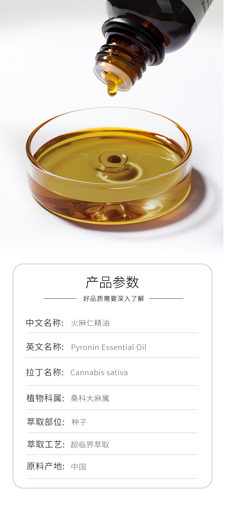 火麻仁精油原料批发芳疗护理调香推拿按摩本草精油Pyronin 商品图3
