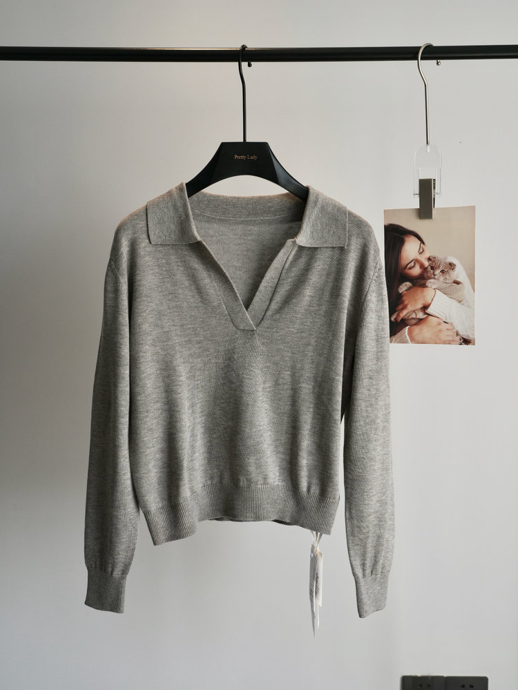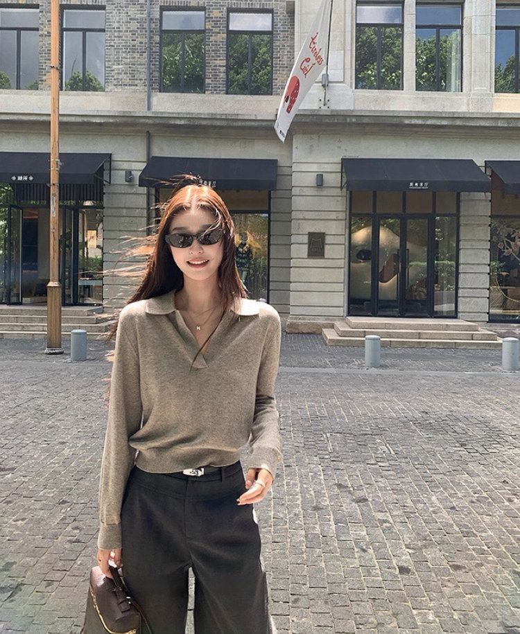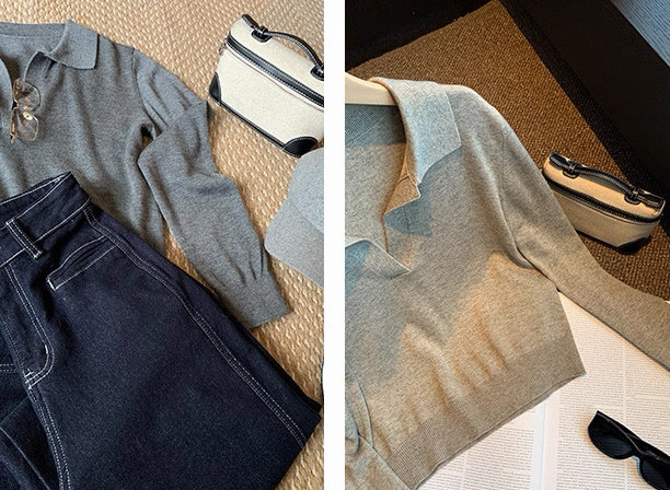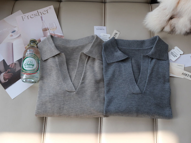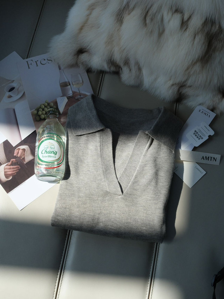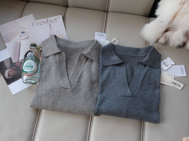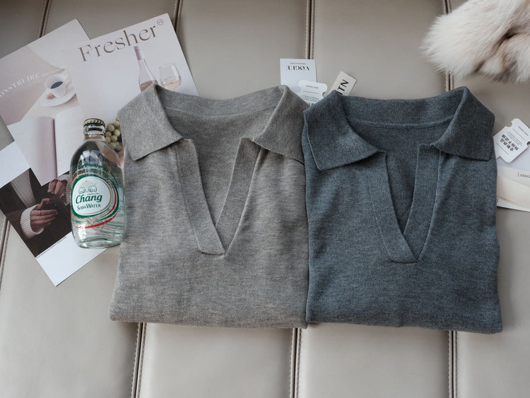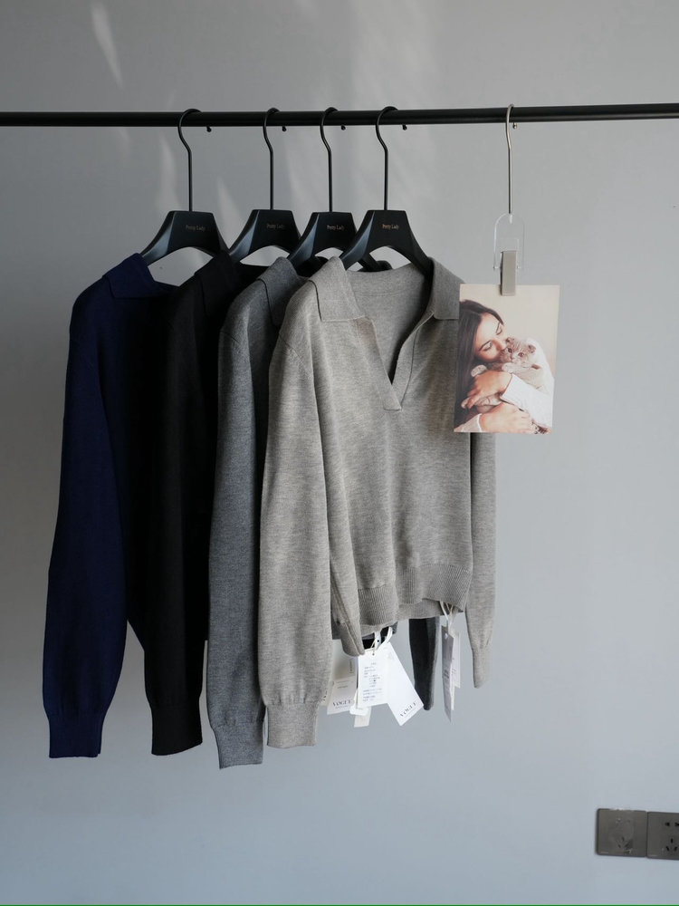 老钱风Polo领针织衫,春天的标配!【AMTN慵懒休闲V领长袖】气质尽显!好看!不扎!版型很好!上身利落气质!老钱十足!有点小高腰那味道,腰以下都是腿,很显腿长,不紧身,包容性大大的👌