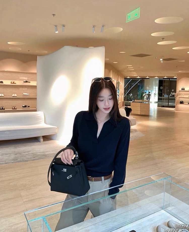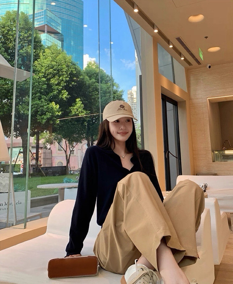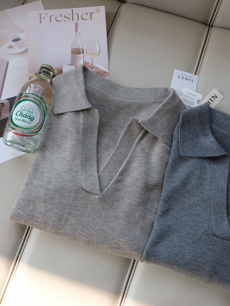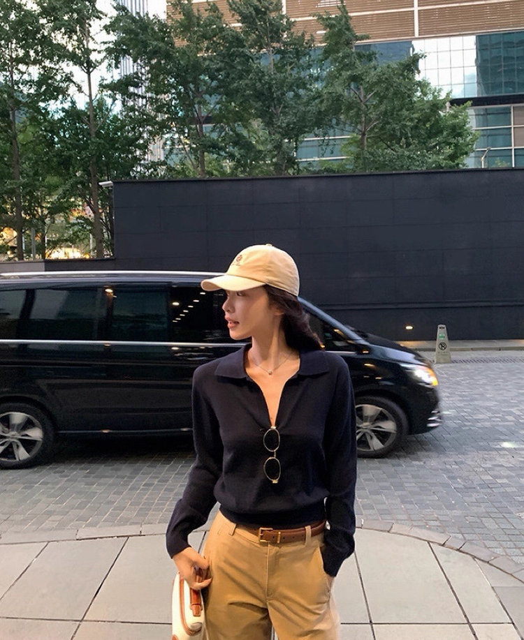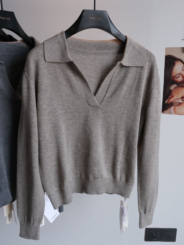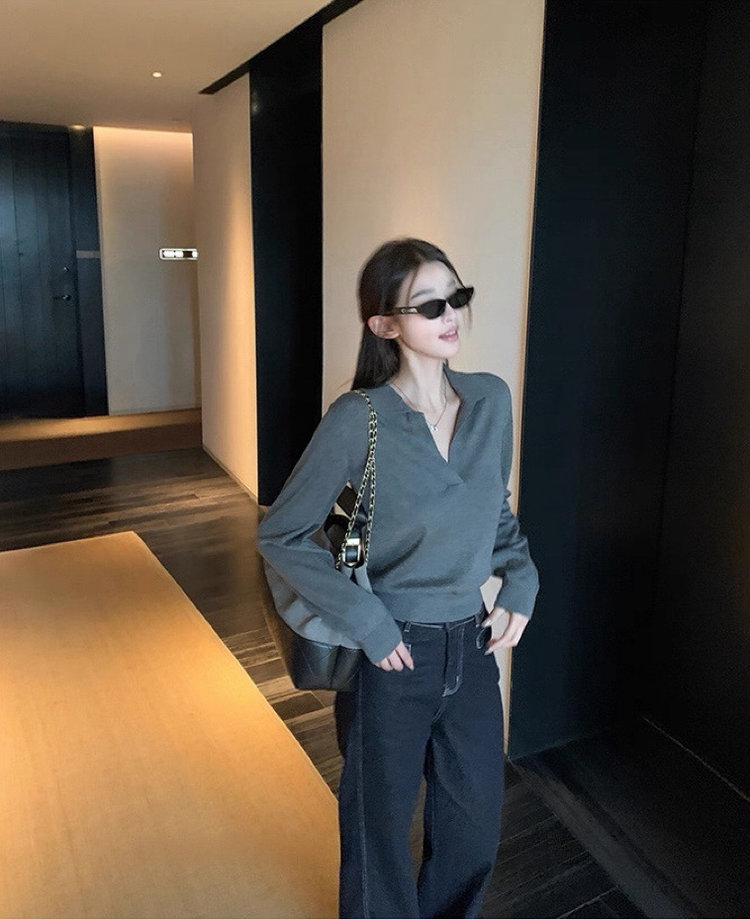 老钱风Polo领针织衫,春天的标配!【AMTN慵懒休闲V领长袖】气质尽显!好看!不扎!版型很好!上身利落气质!老钱十足!有点小高腰那味道,腰以下都是腿,很显腿长,不紧身,包容性大大的👌