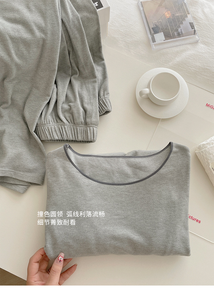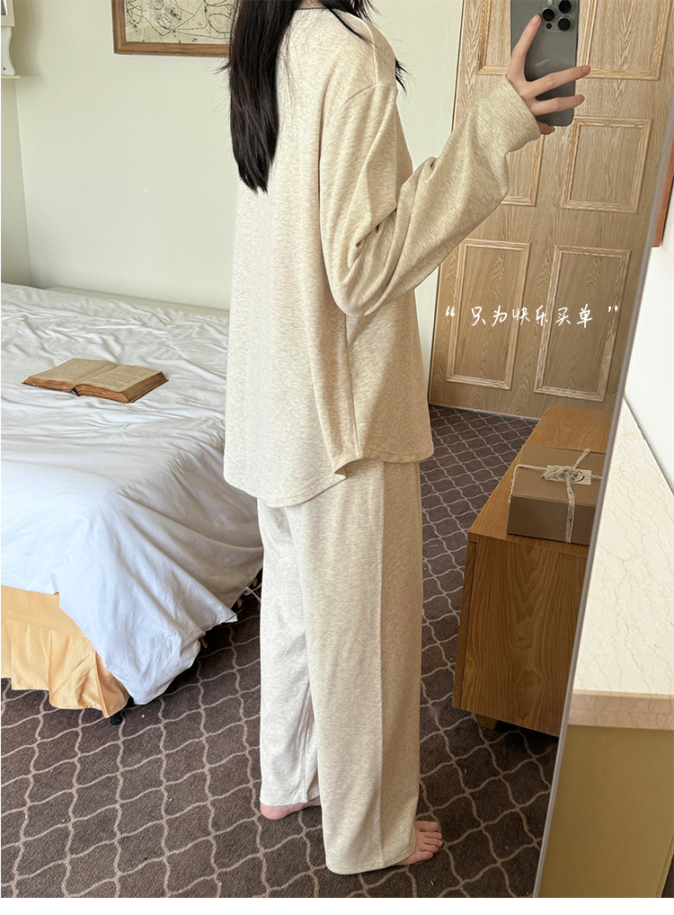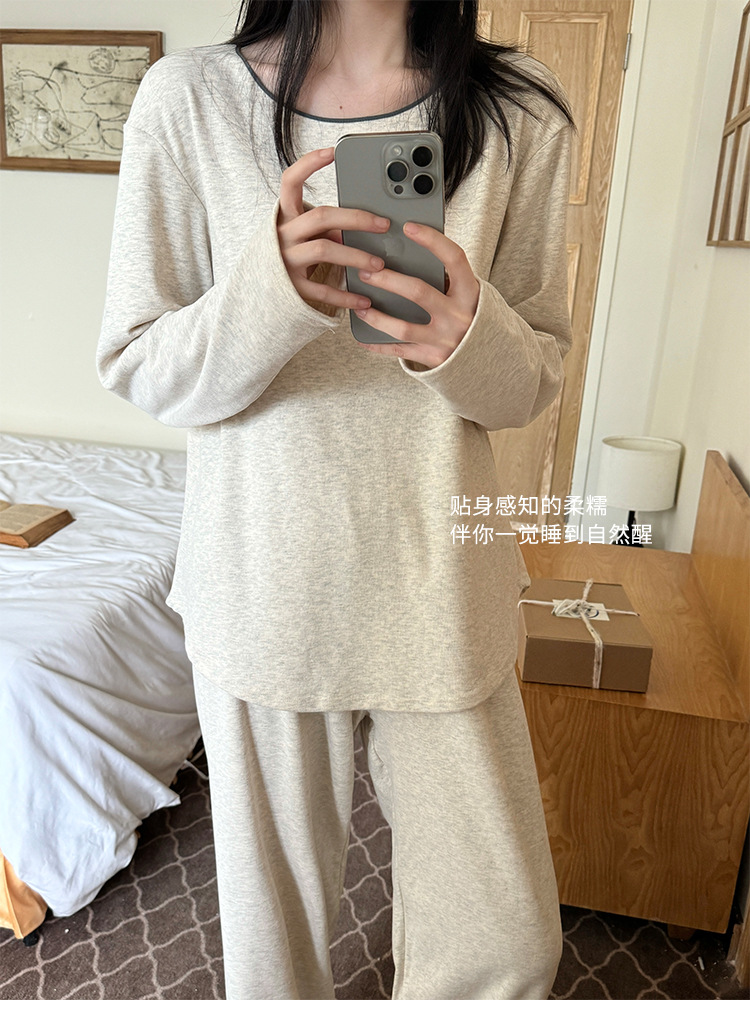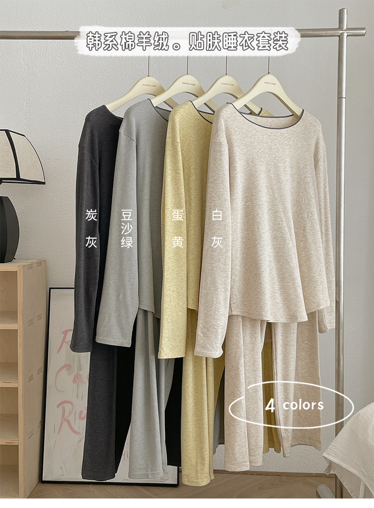秋季加厚棉羊绒圆领套头长袖套装 宽松舒适弹力家居服可外穿两件套