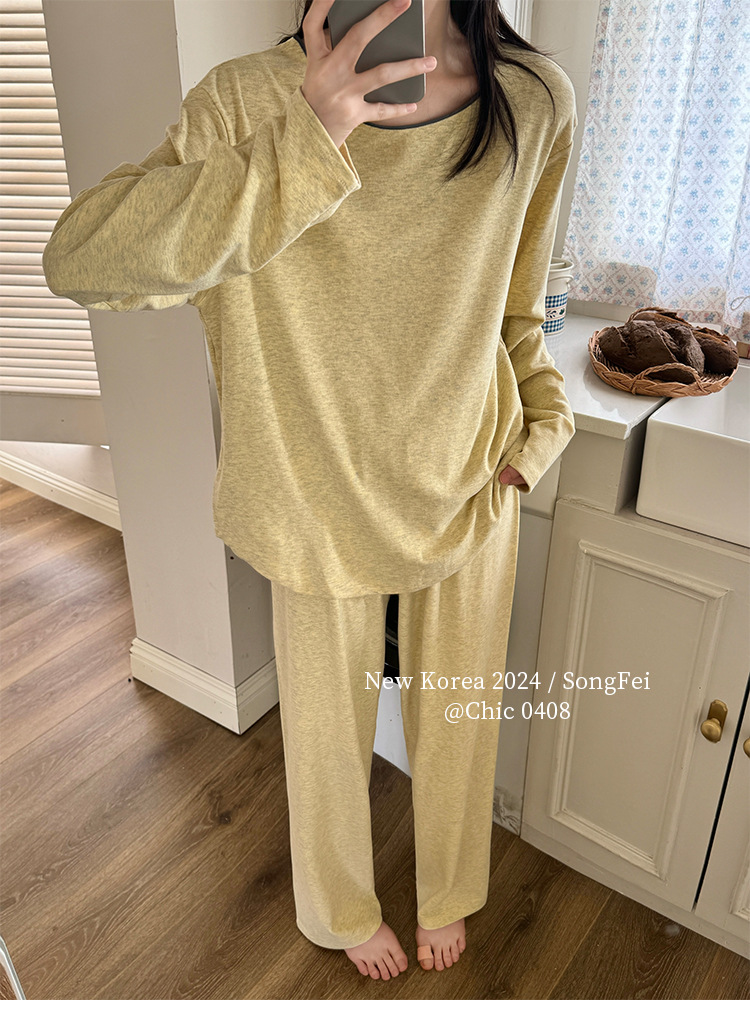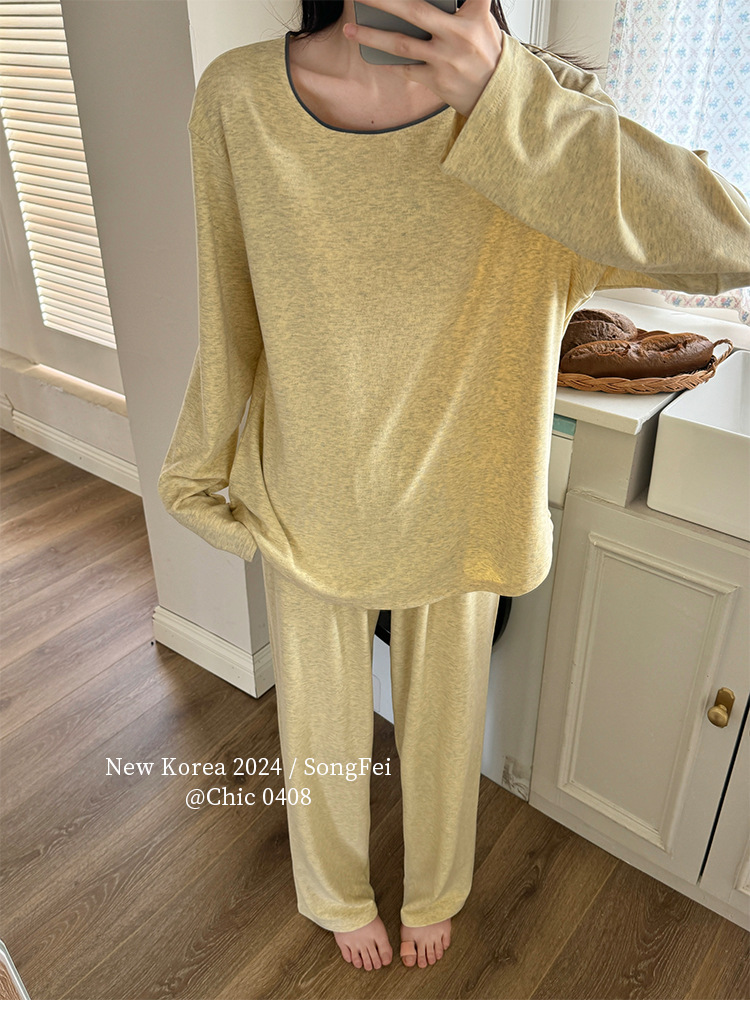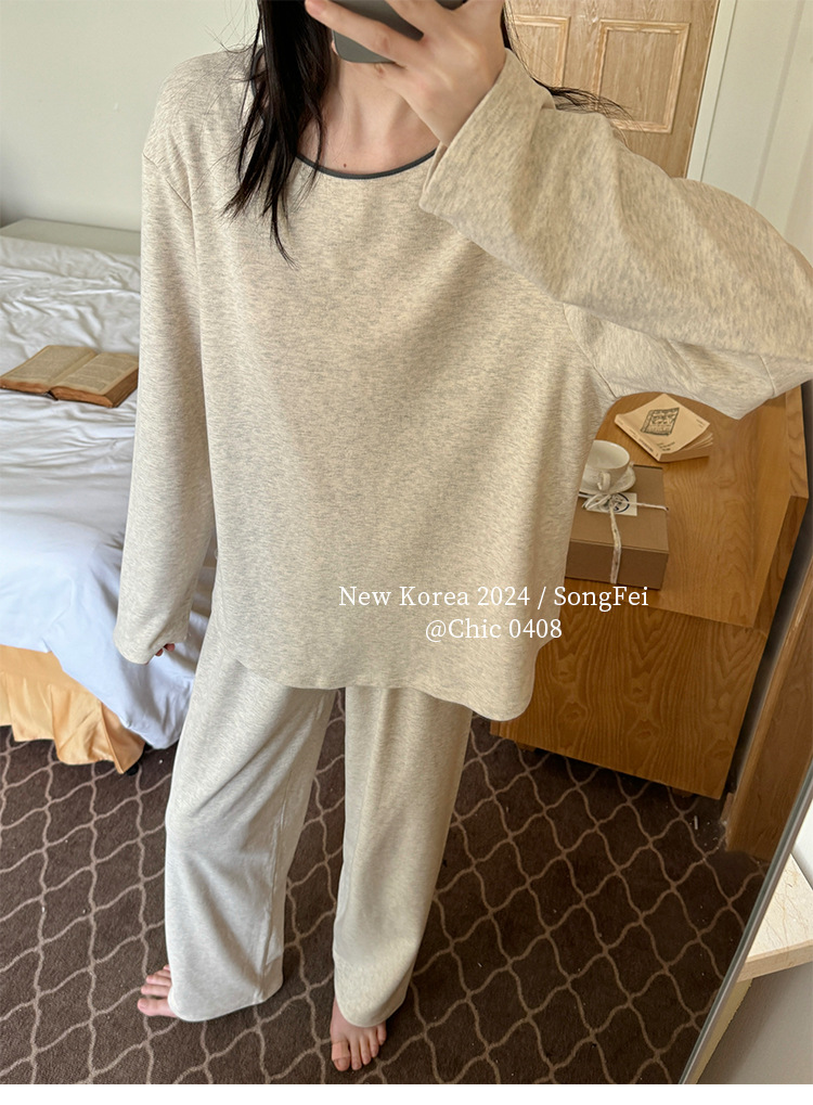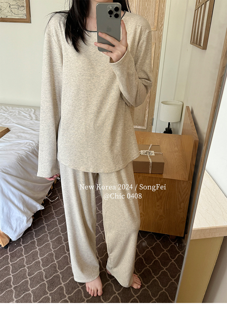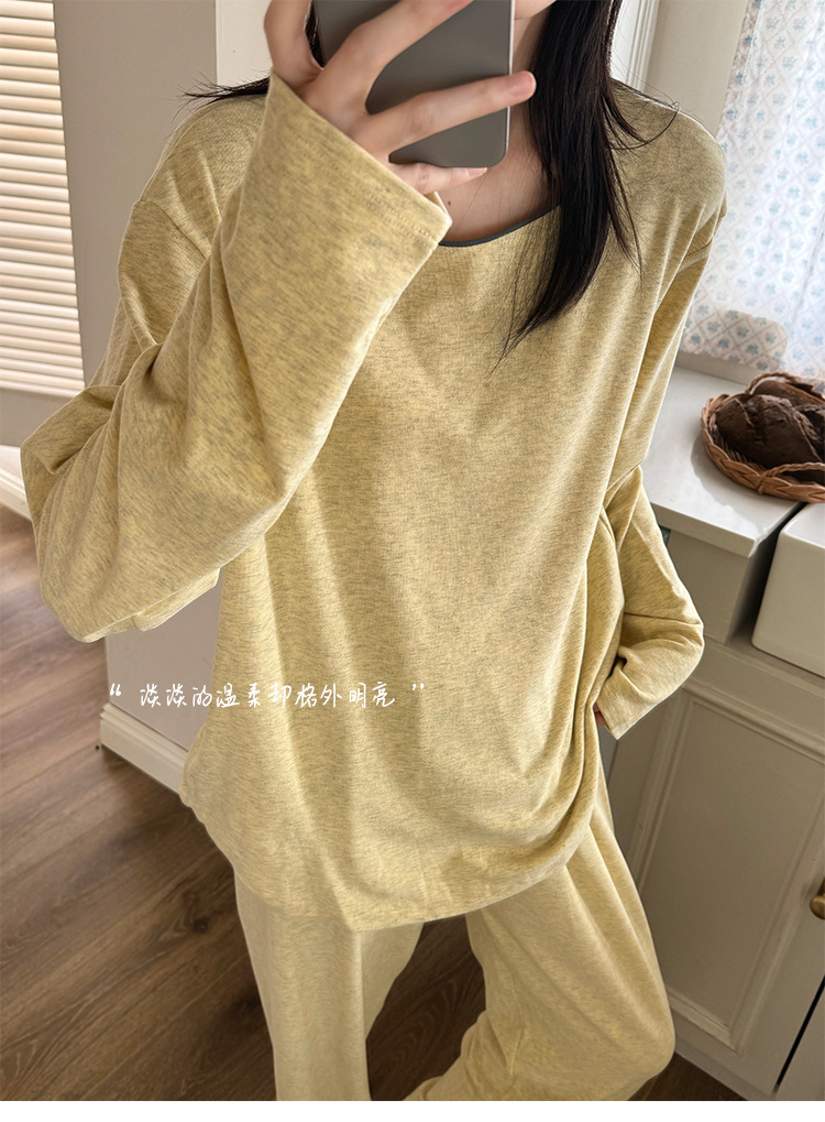 秋季加厚棉羊绒圆领套头长袖套装 宽松舒适弹力家居服可外穿两件套