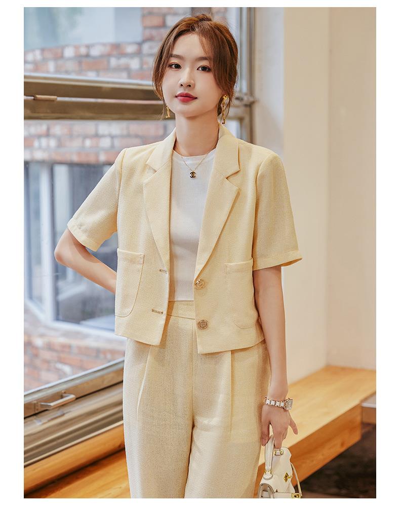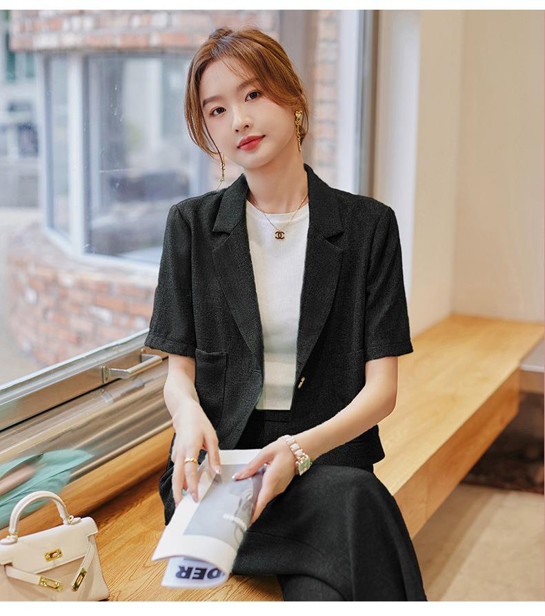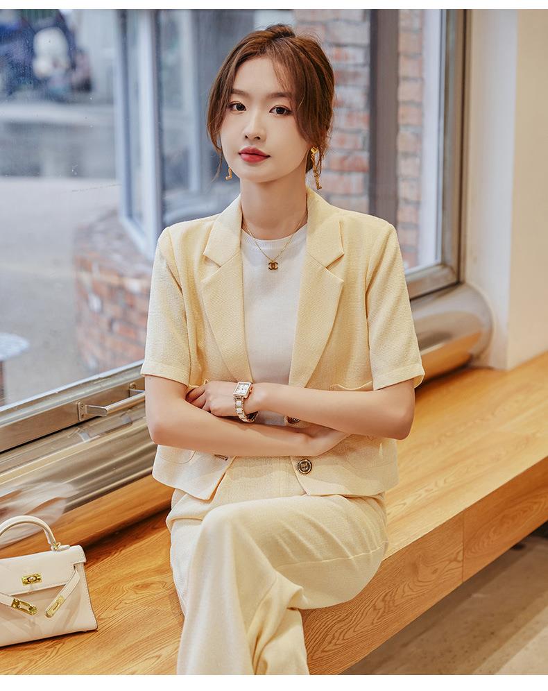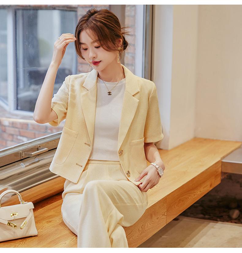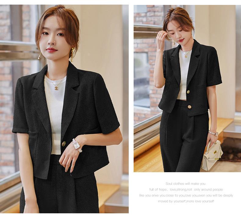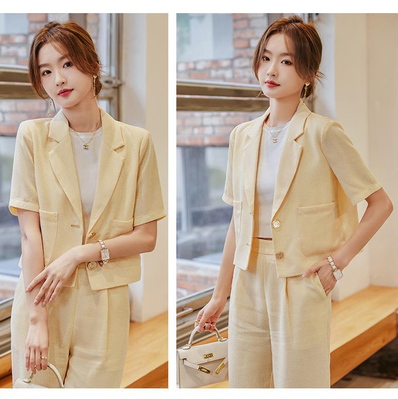 娜璐多 时尚洋气小西装外套女2023夏季韩版气质通勤小个子两件套西服套装