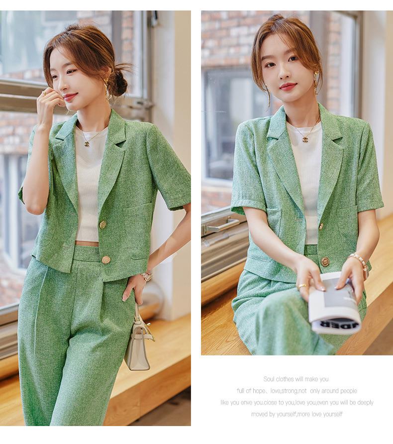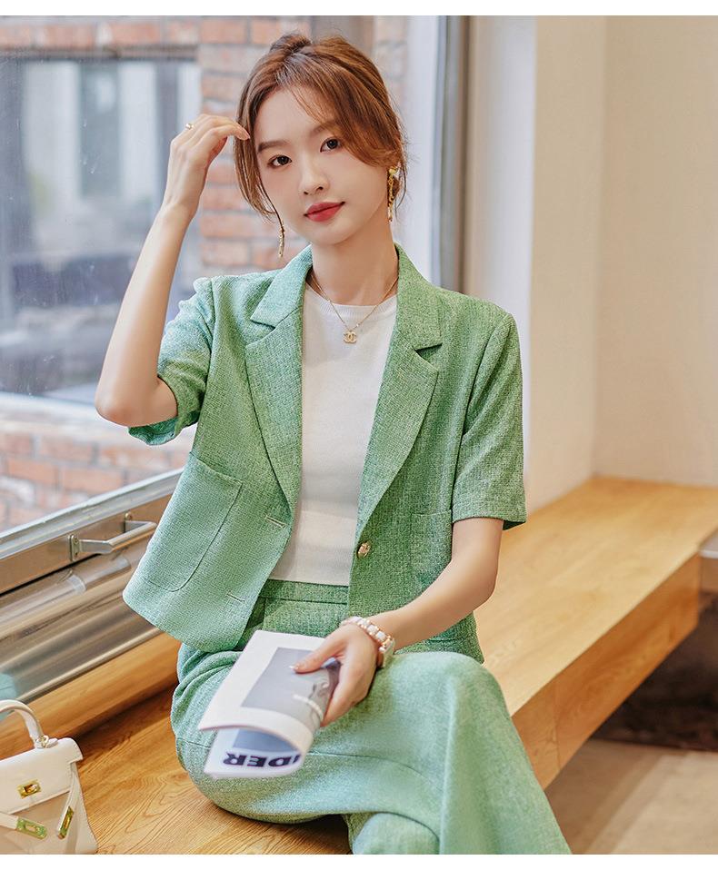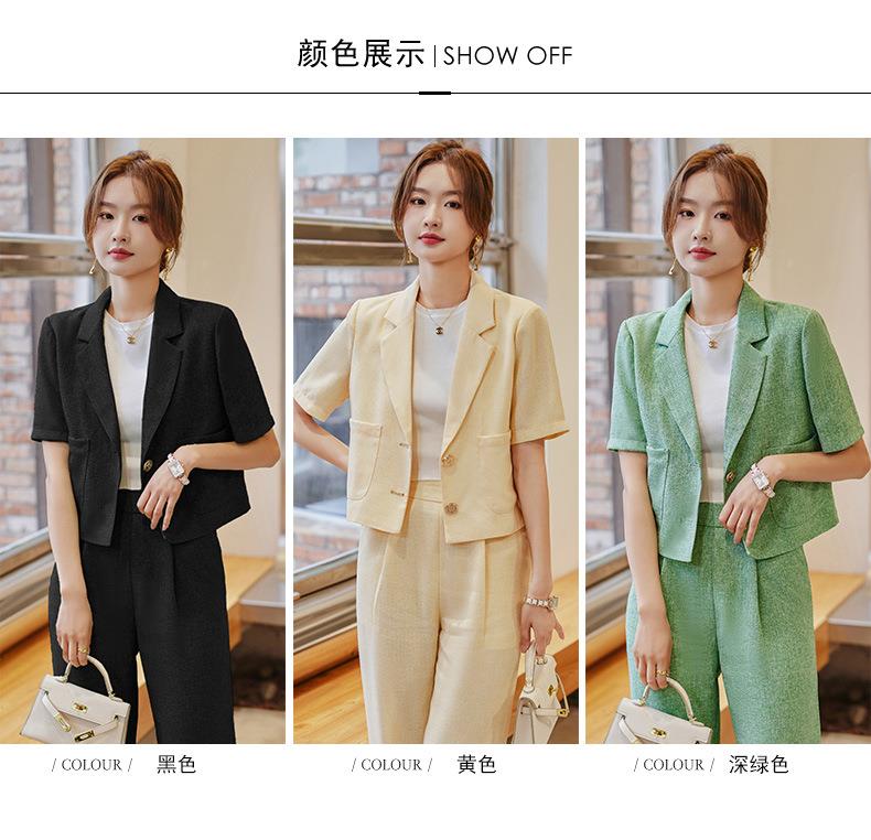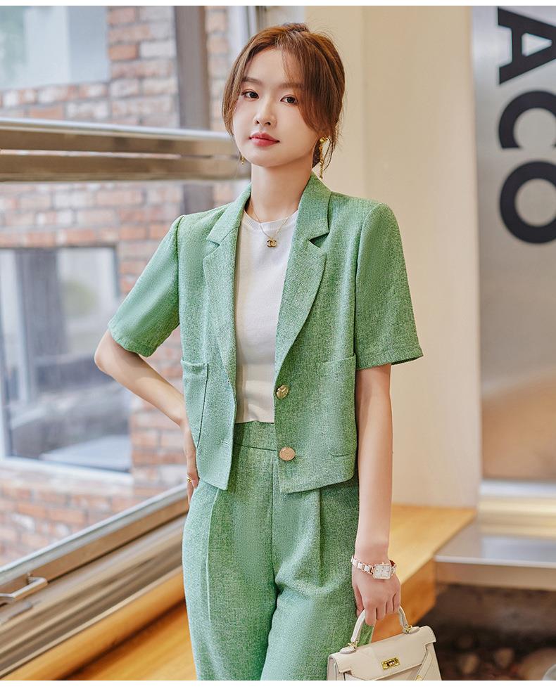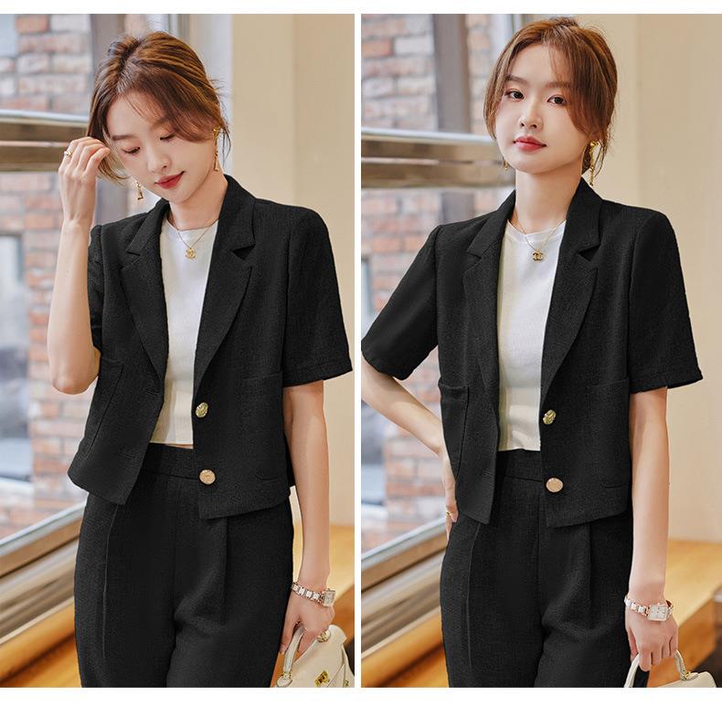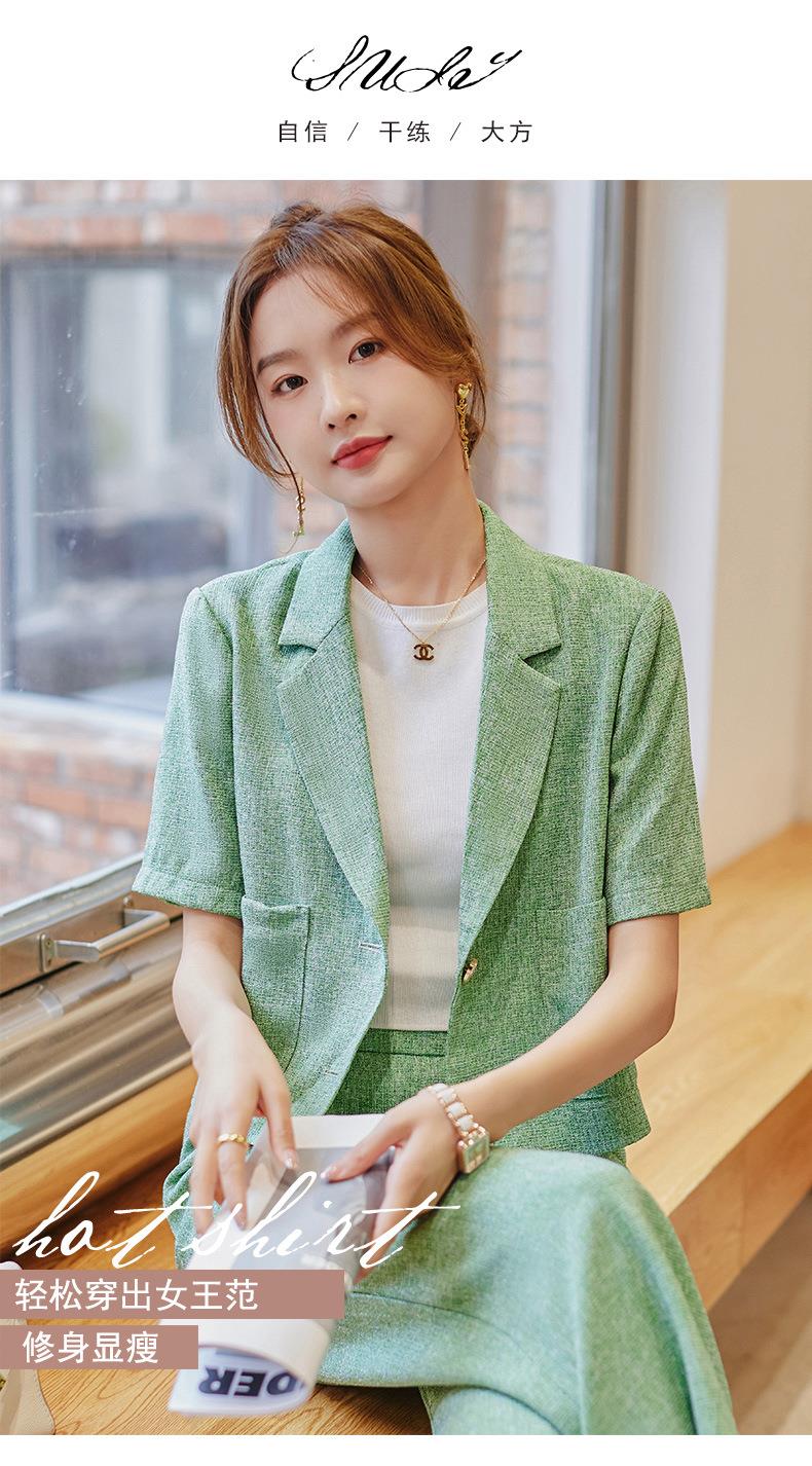 娜璐多 时尚洋气小西装外套女2023夏季韩版气质通勤小个子两件套西服套装