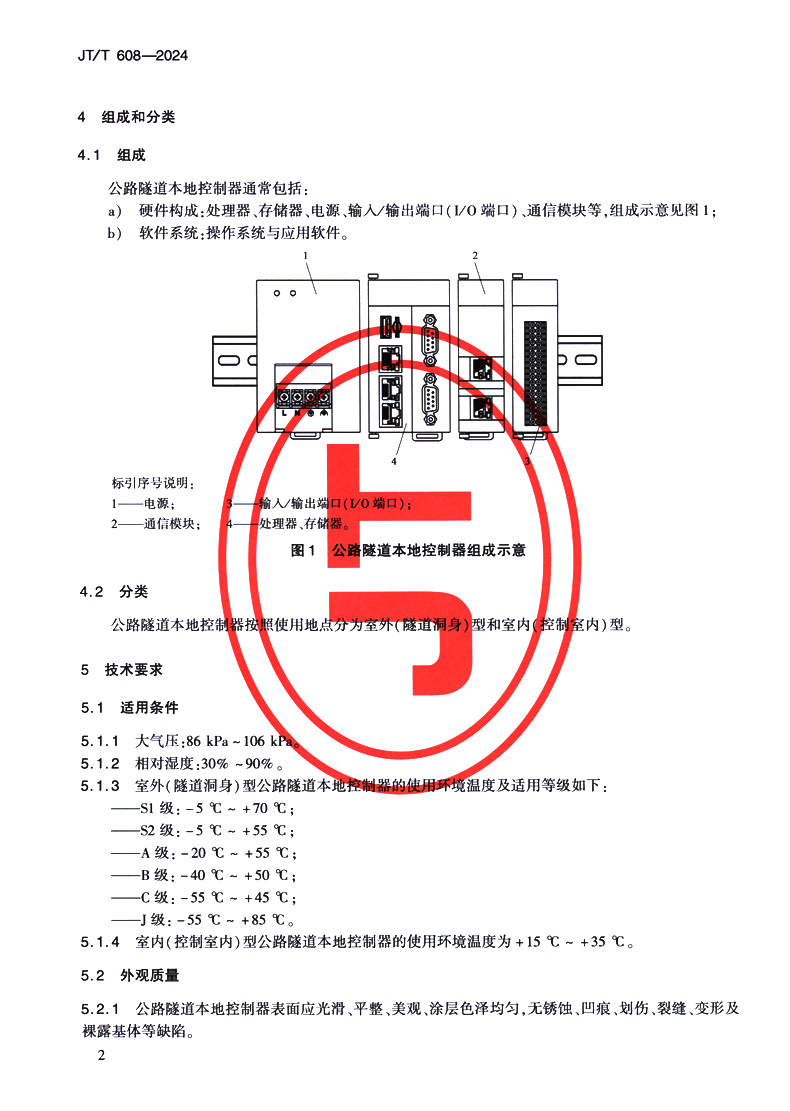 公路隧道本地控制器(JT/T 608—2024)