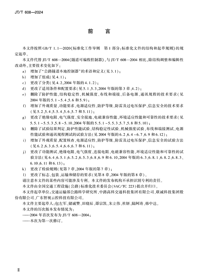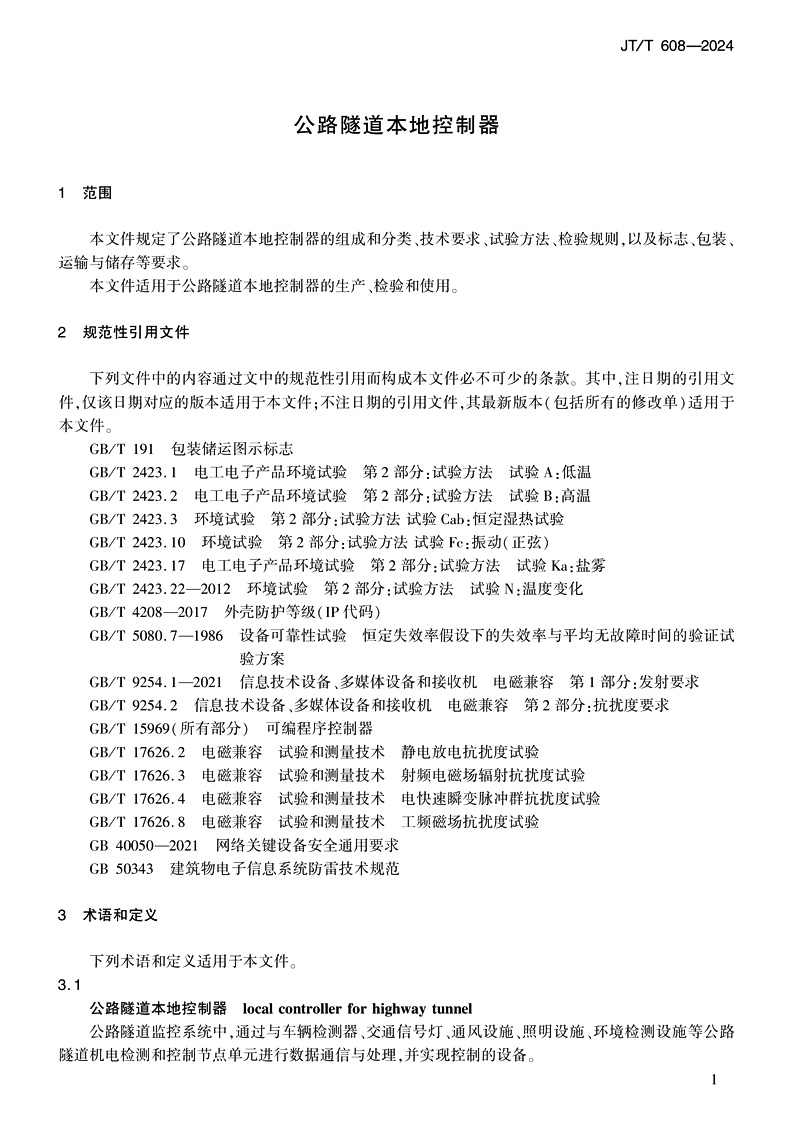 书名:公路隧道本地控制器(JT/T 608—2024)
