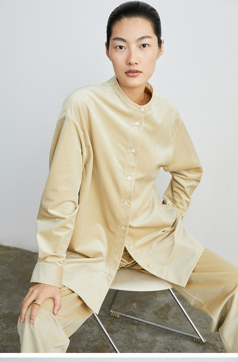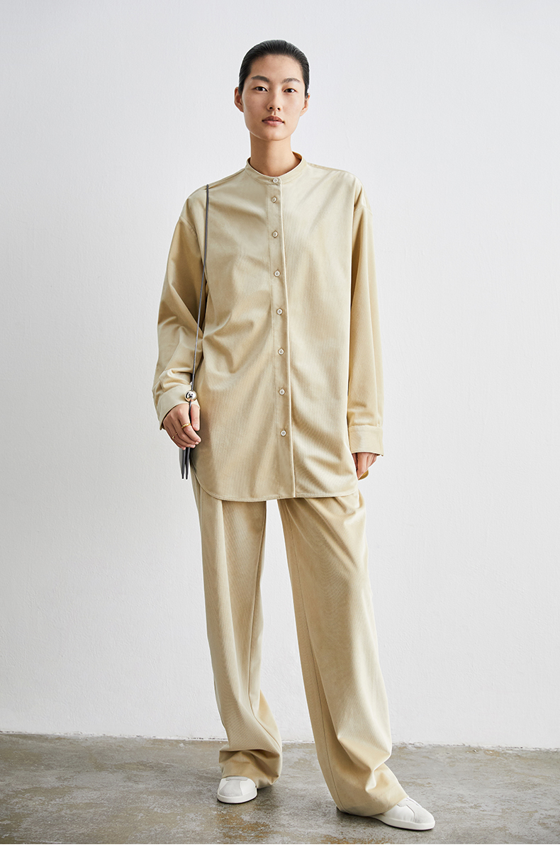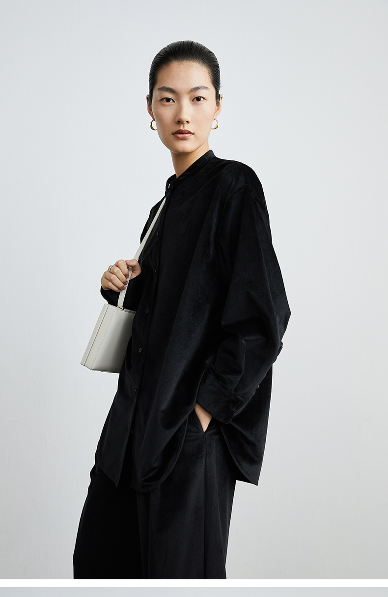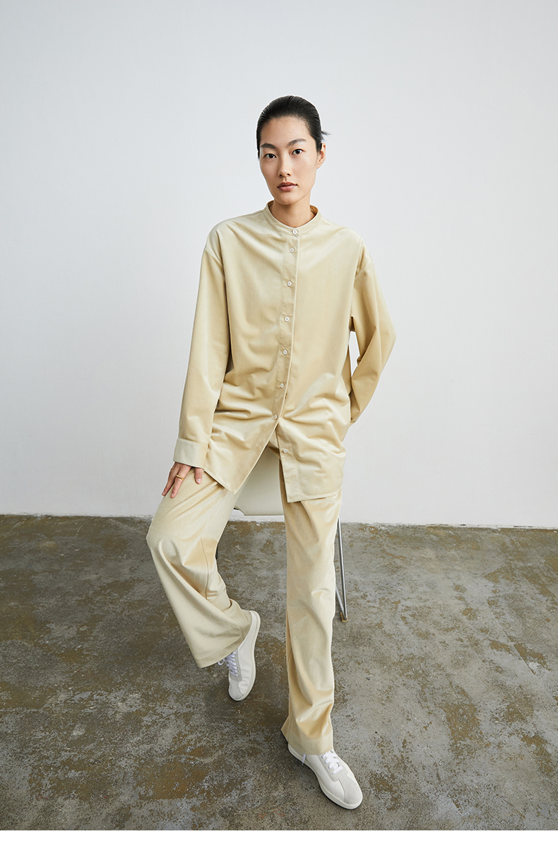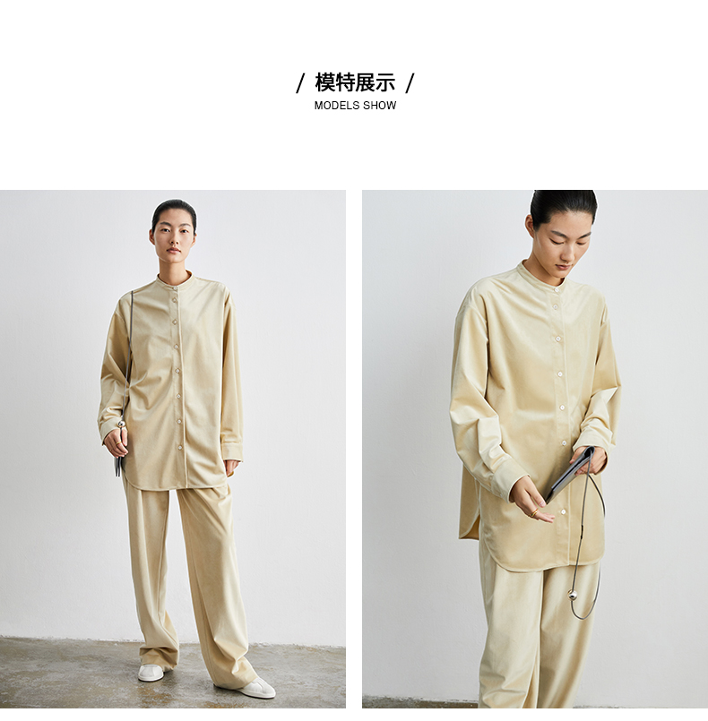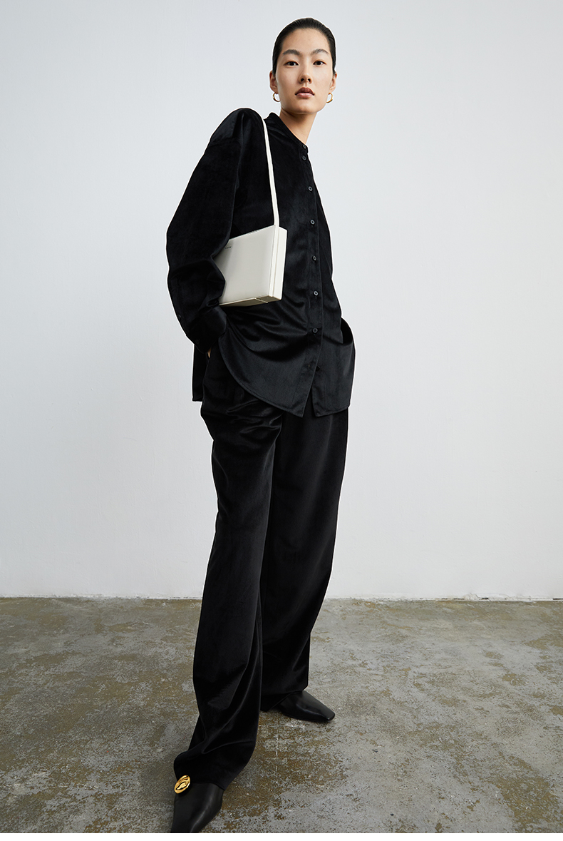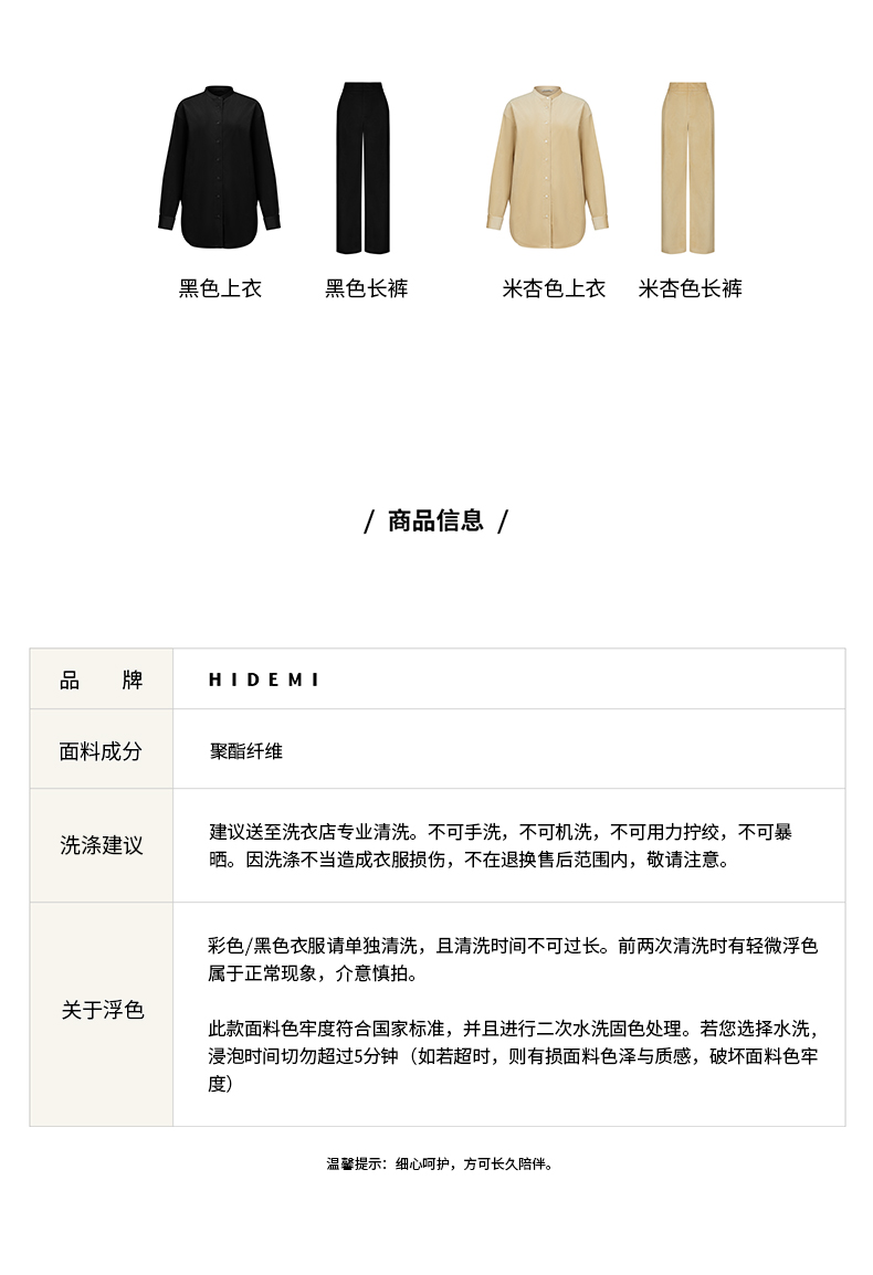 HIDEMI 简约廓形丝绒套装 衬衫/阔腿裤 米杏色/黑色