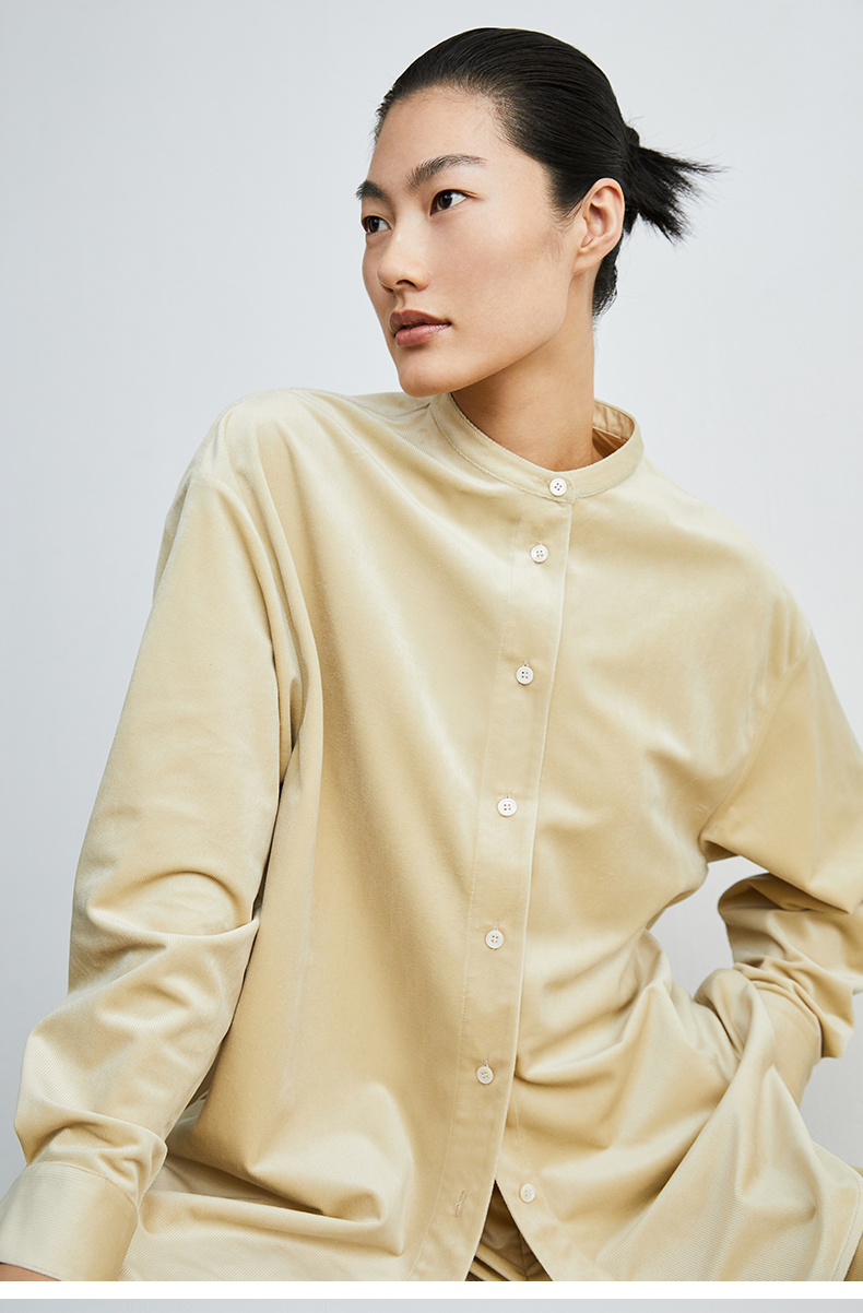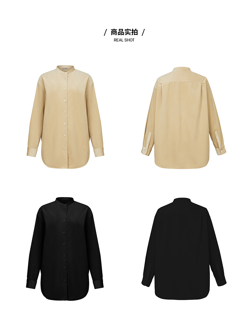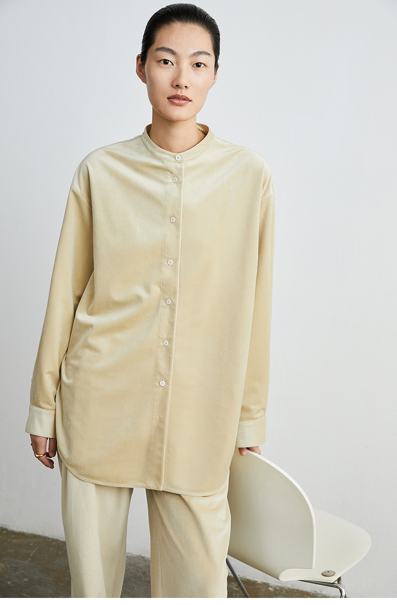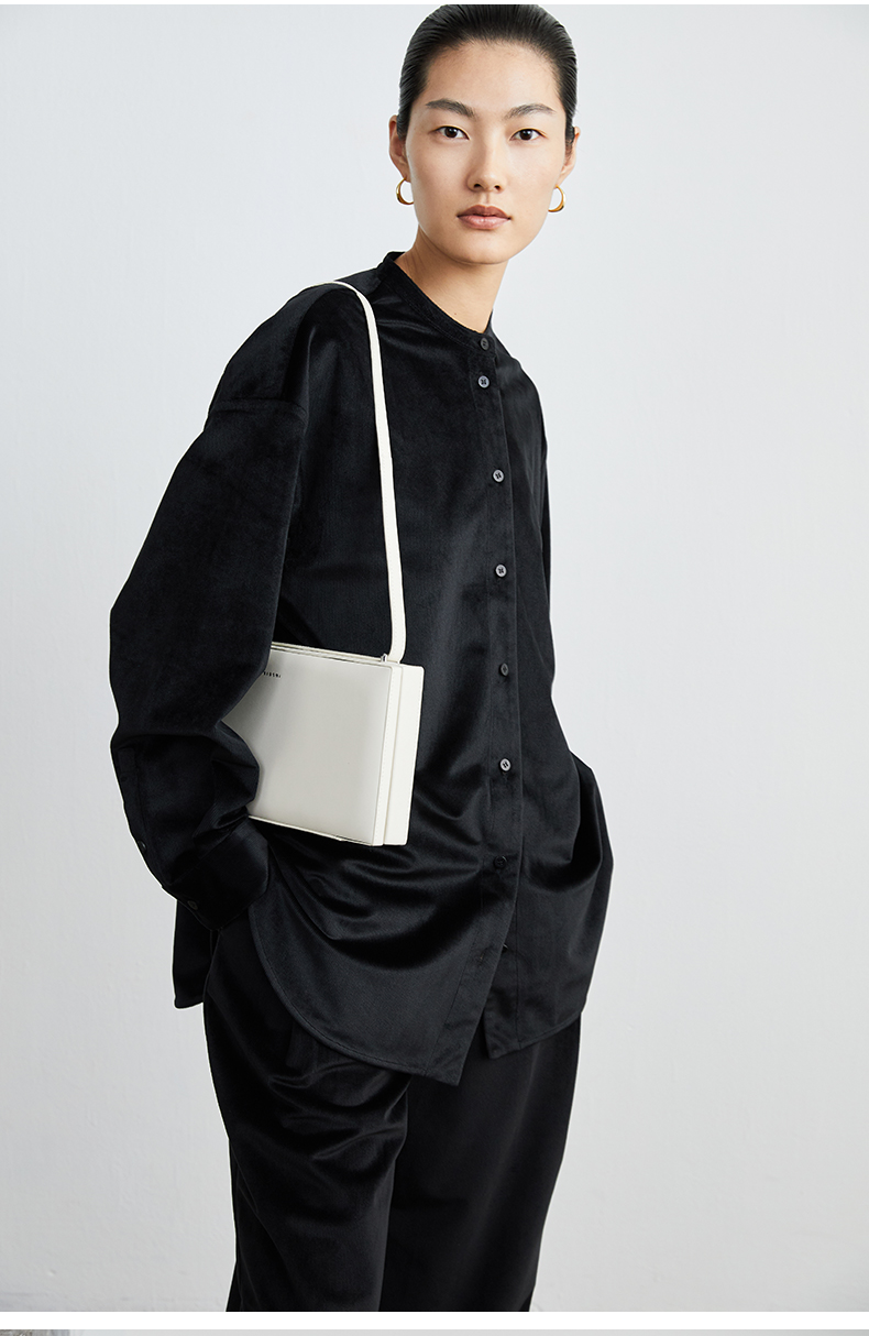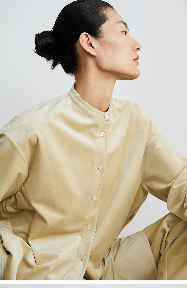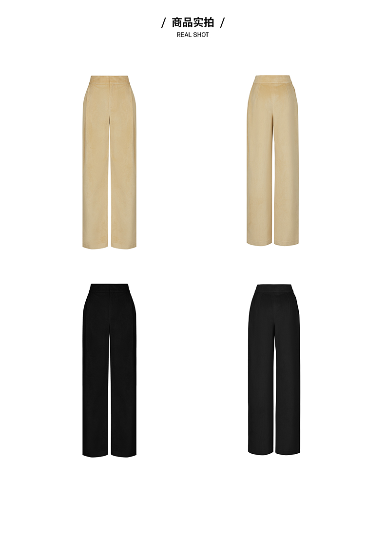 HIDEMI 简约廓形丝绒套装 衬衫/阔腿裤 米杏色/黑色