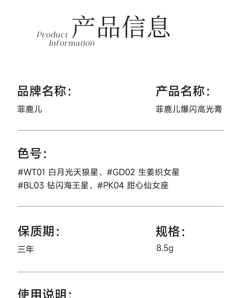 菲鹿儿爆闪迷你小高光膏单色脸部提亮持久细闪珠光立体水光肌