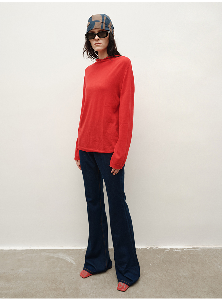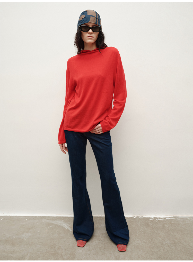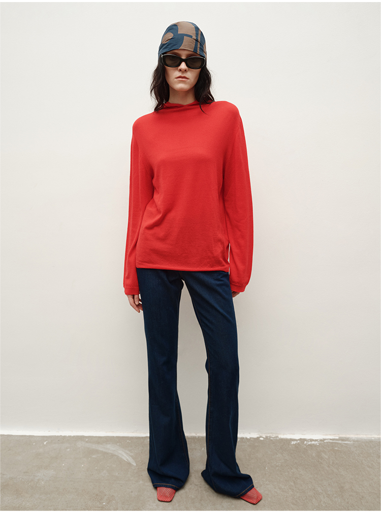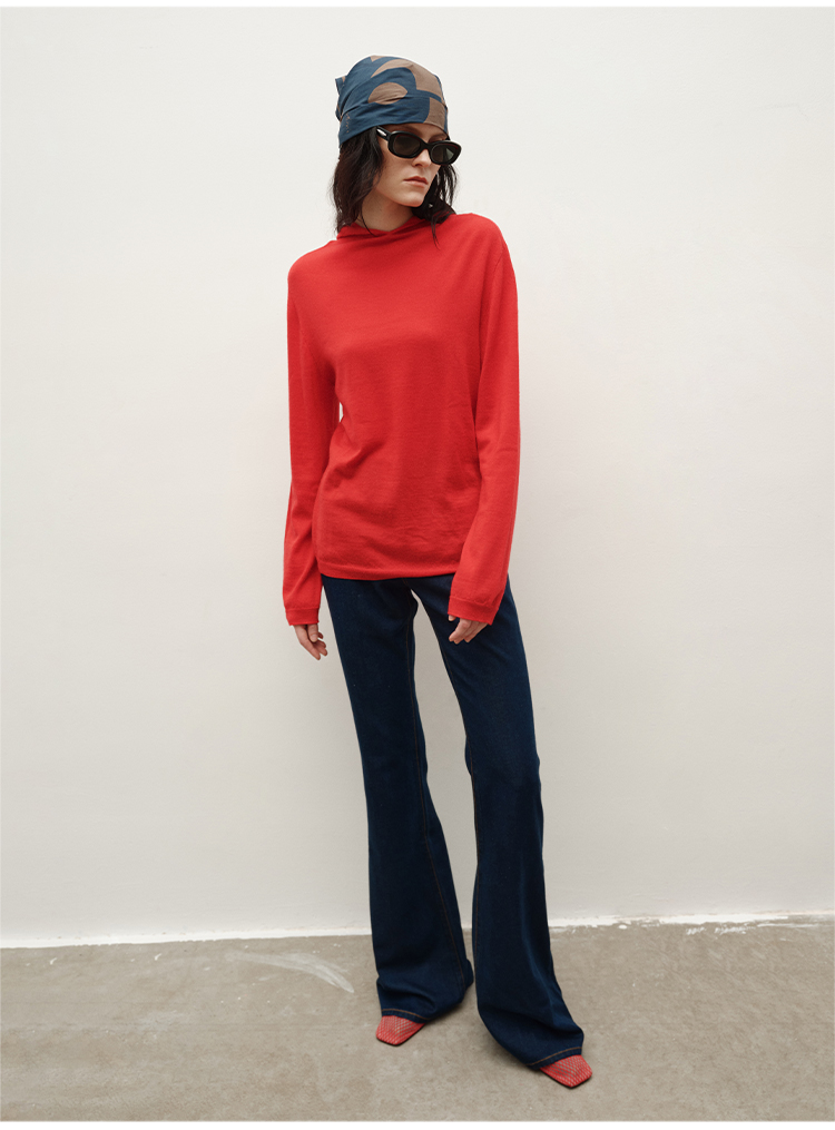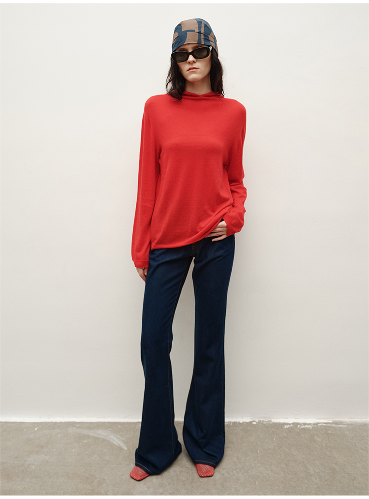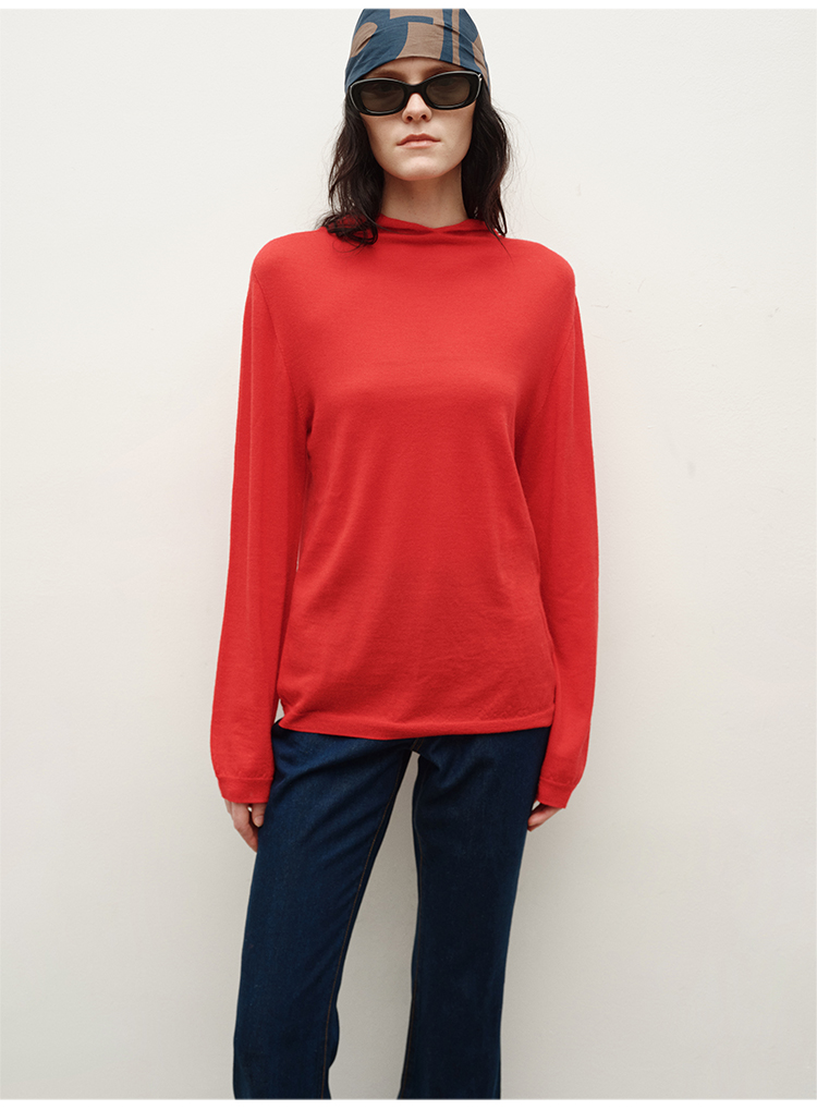 HIDEMI 进口美利奴羊毛精纺超细纱线亲肤柔软感连帽极简针织毛衫毛衣帽衫上衣 马斯正红/巧克力色/黑色