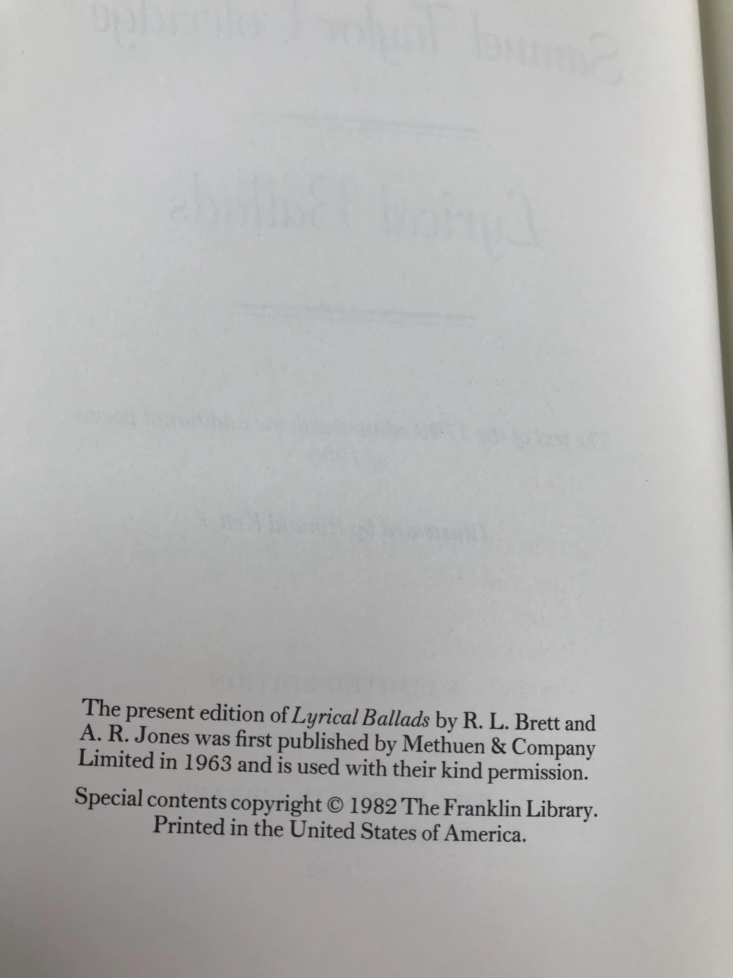 限量版!威廉・华兹华斯、 柯勒律治《抒情歌谣集》 配插图 富兰克林图书馆豪华皮装本