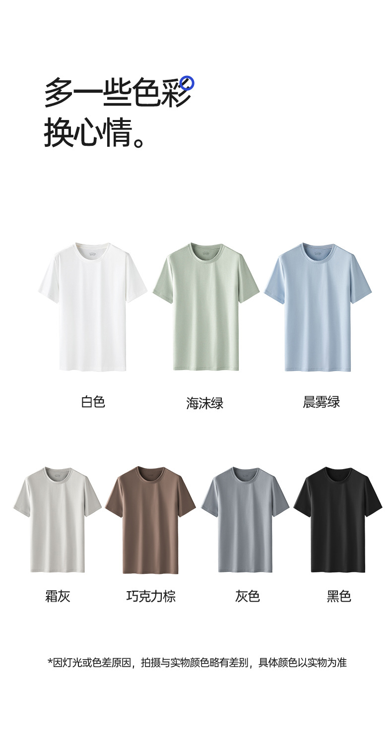 【拍2件109元】【大牌品质】 第二代新升级5A级抗菌美肌丝光棉短袖 丝滑凉爽垂顺凉感短袖T恤
