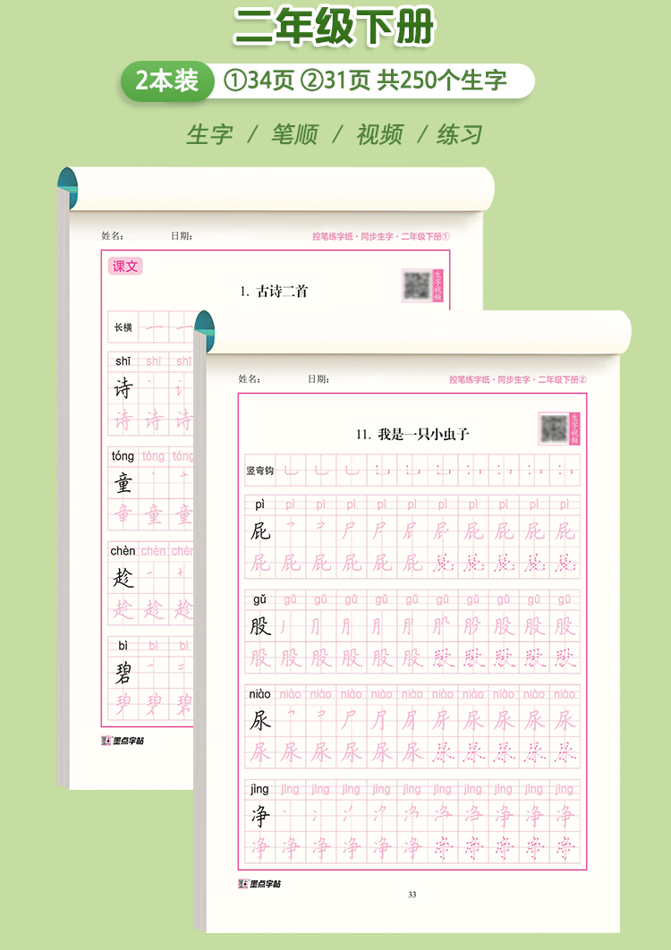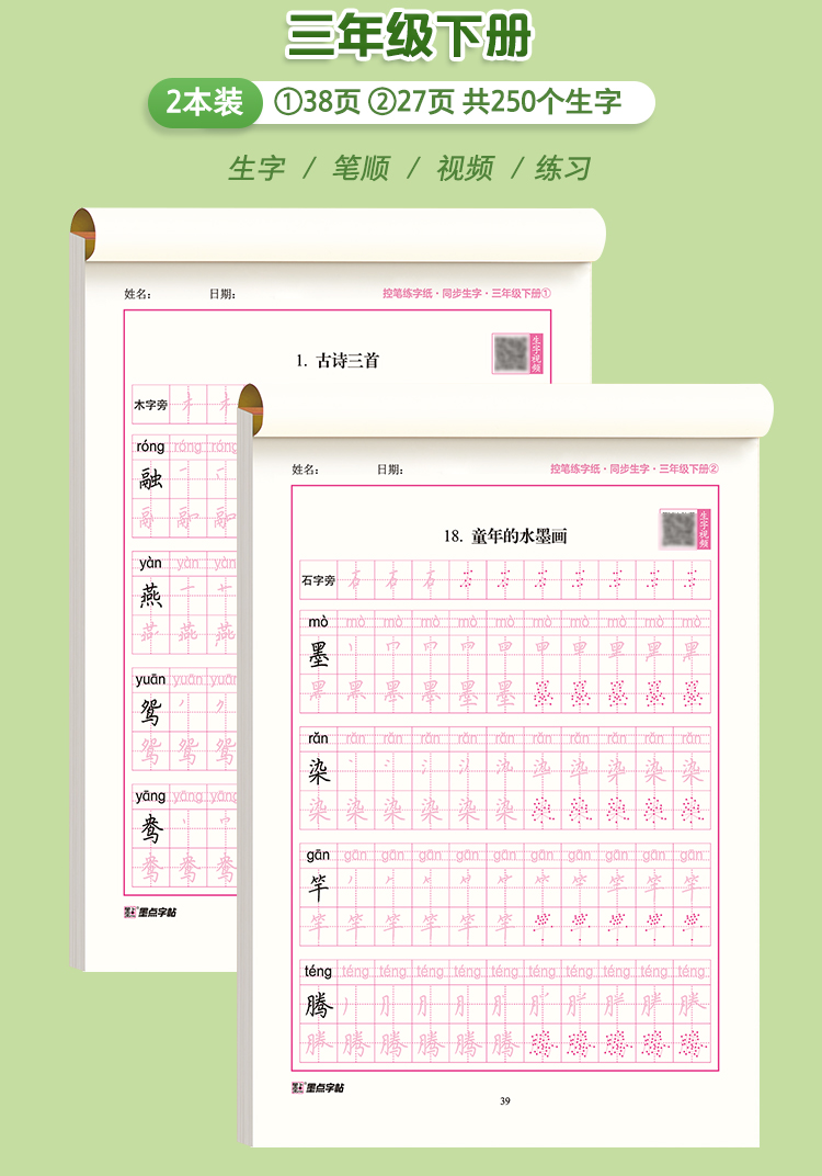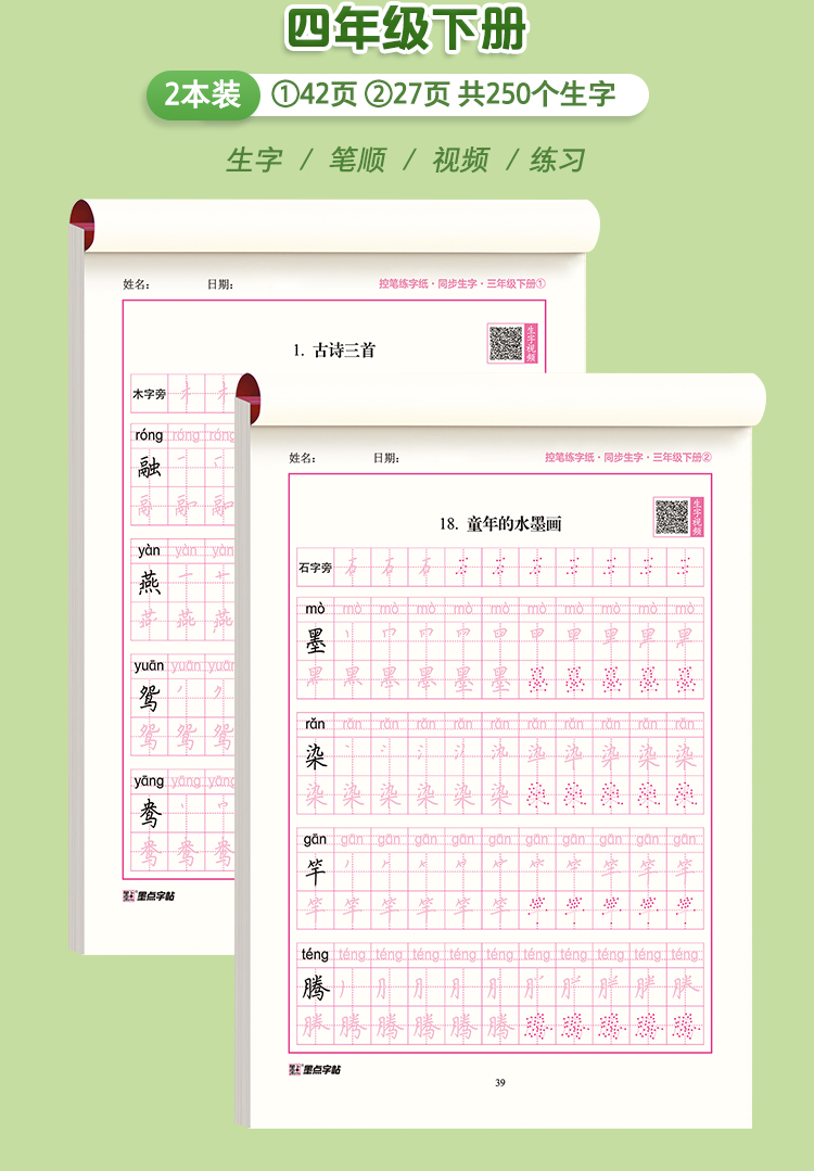 墨点一年级字帖练字每日30字二三四年级上册下册儿童减压小学生专用语文同步练字帖人教版生字描红笔画笔顺每日一练硬笔书法练字本