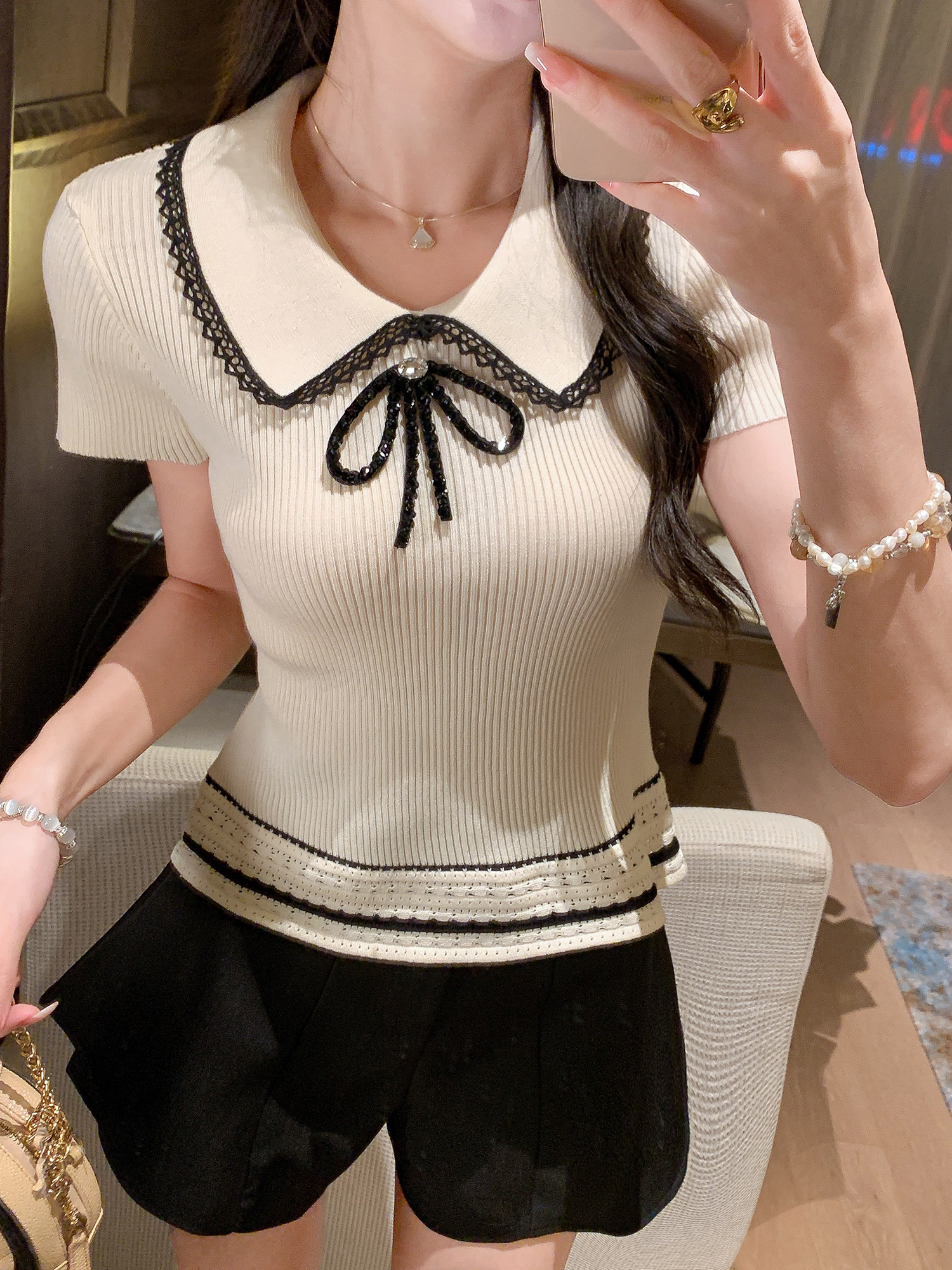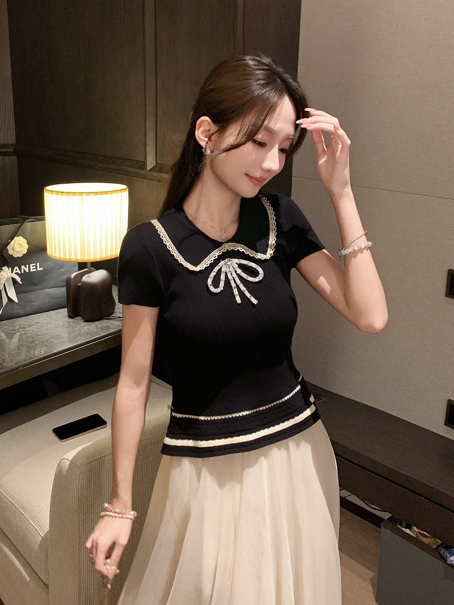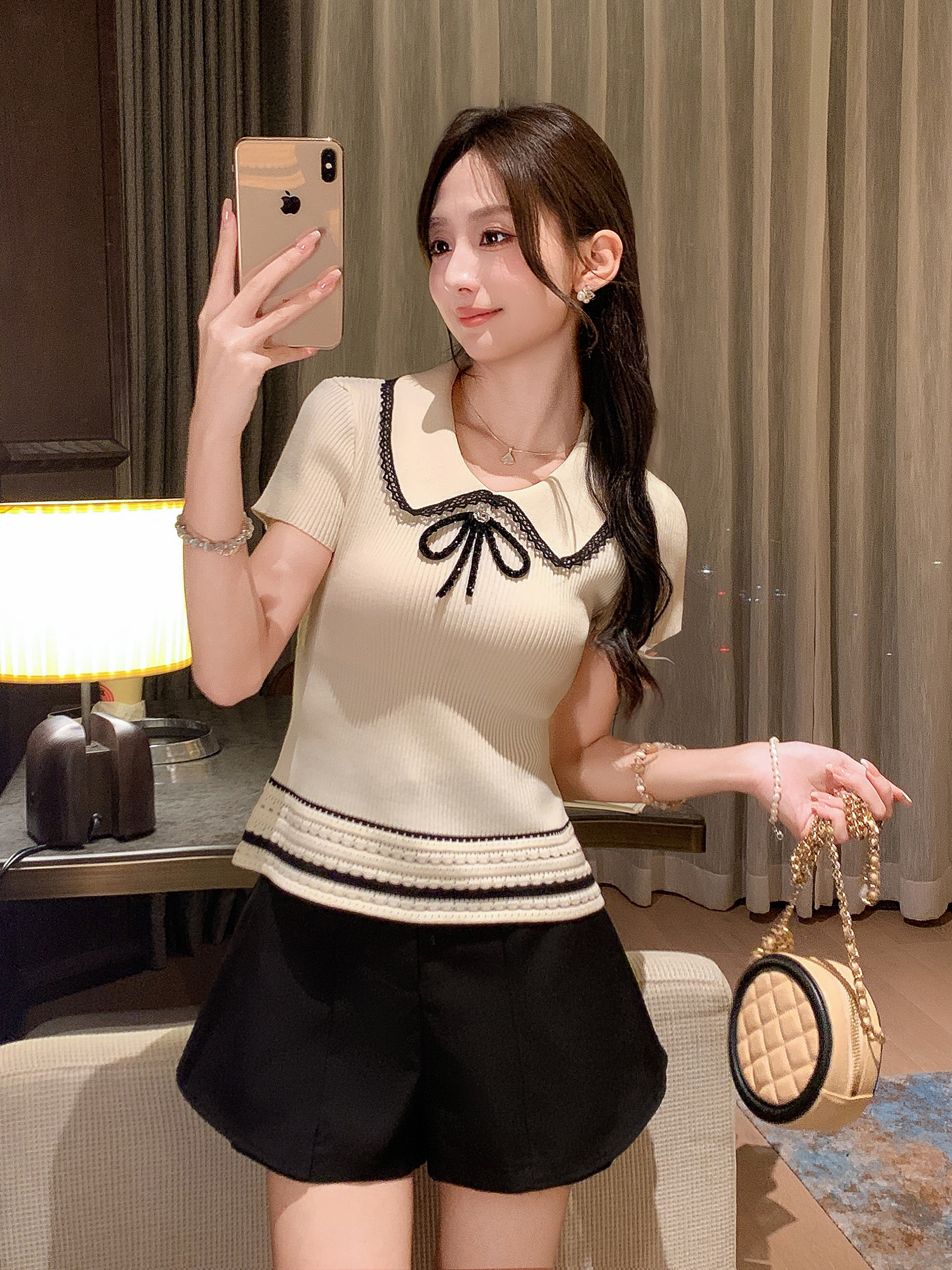 张心子【香芒甜茶】海军领减龄条纹针织上衣女夏季新款法式polo衫 U2406016
