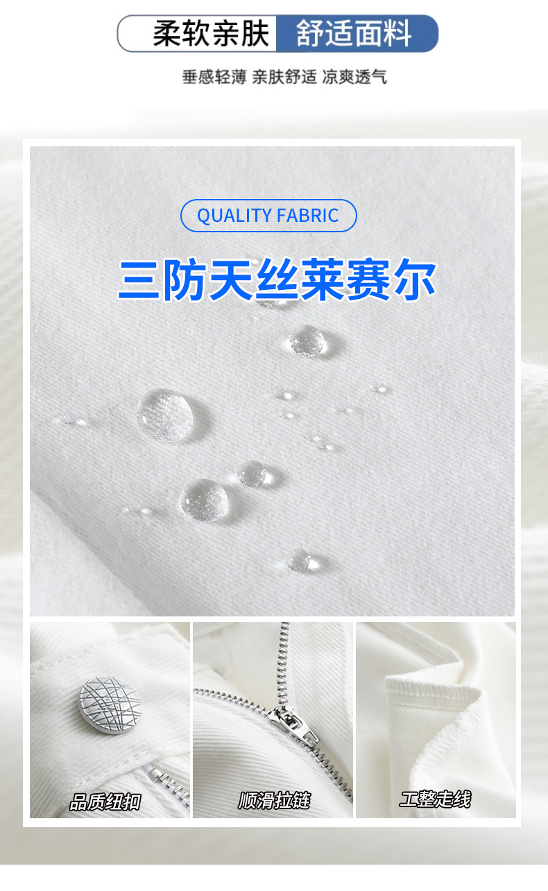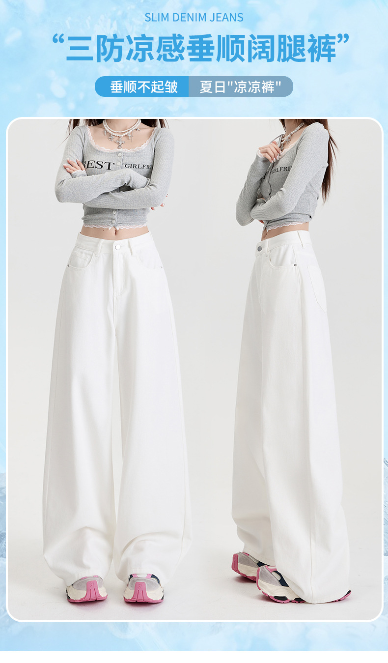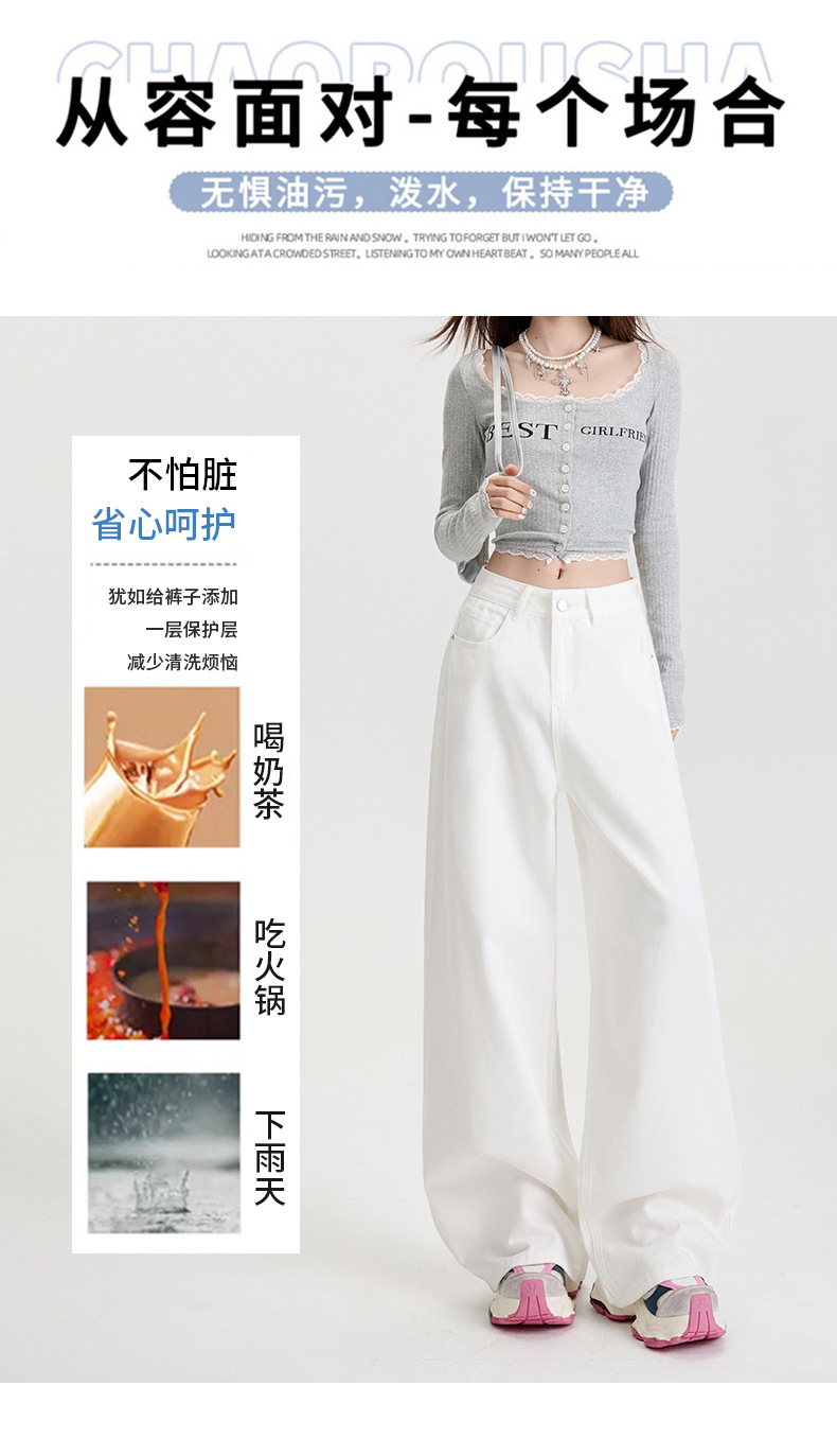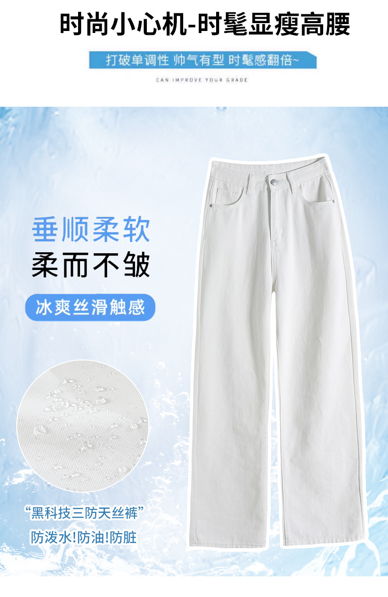 【可穿三季】三防天丝棉纯白色宽松阔腿裤 性简约显瘦防油污牛仔裤
