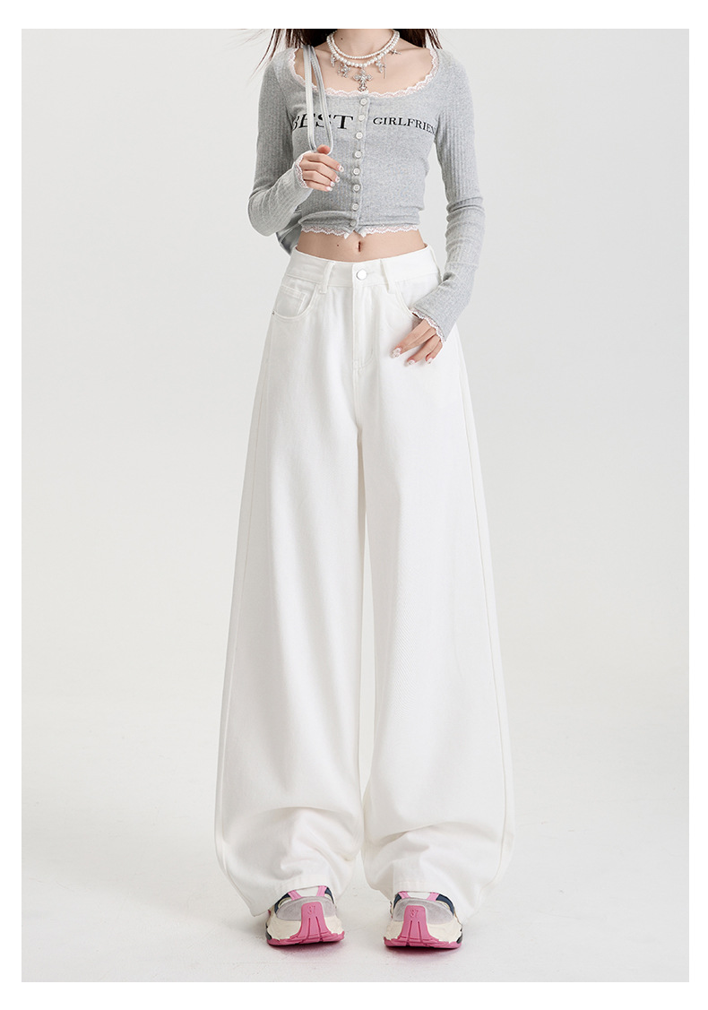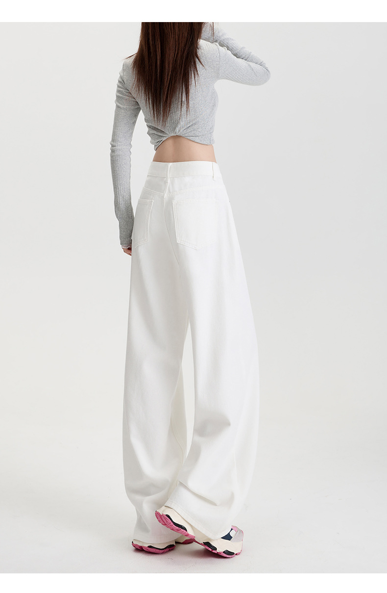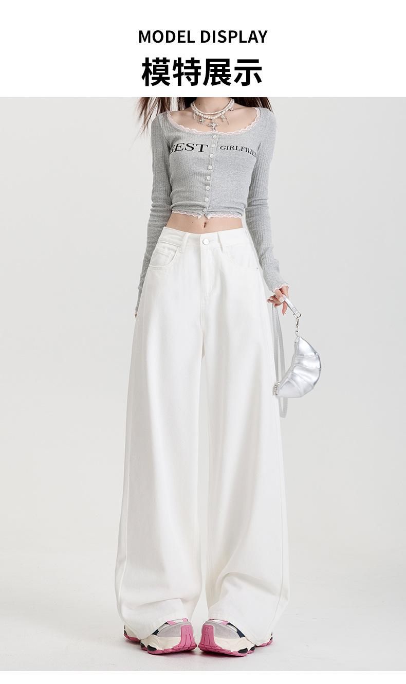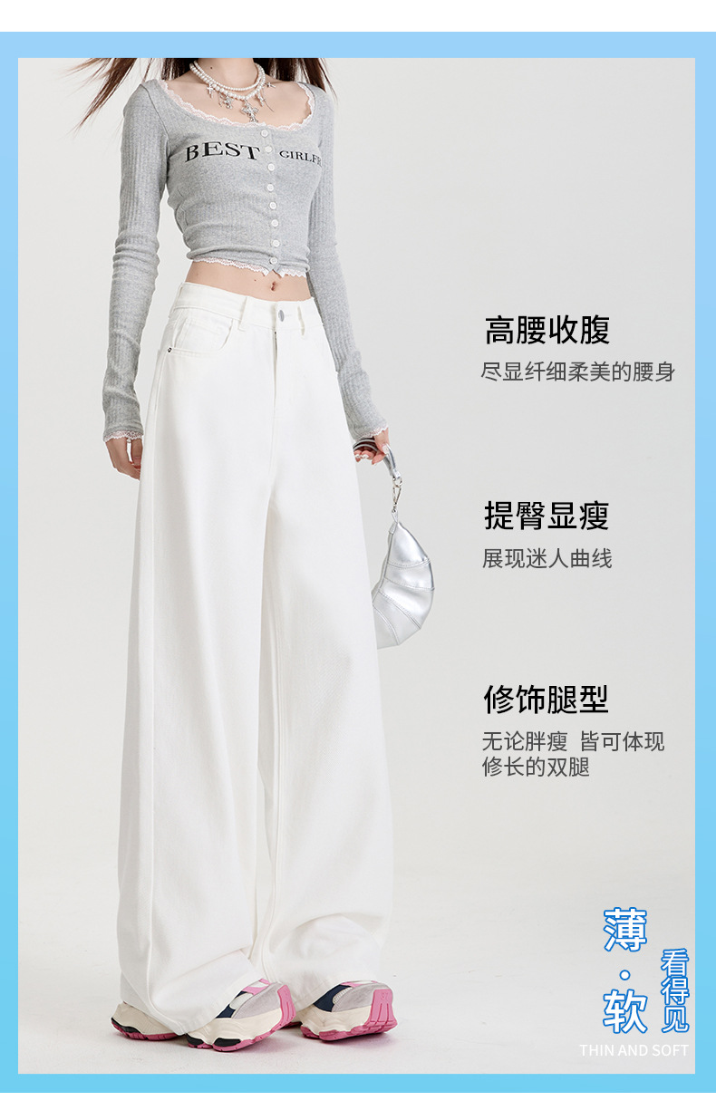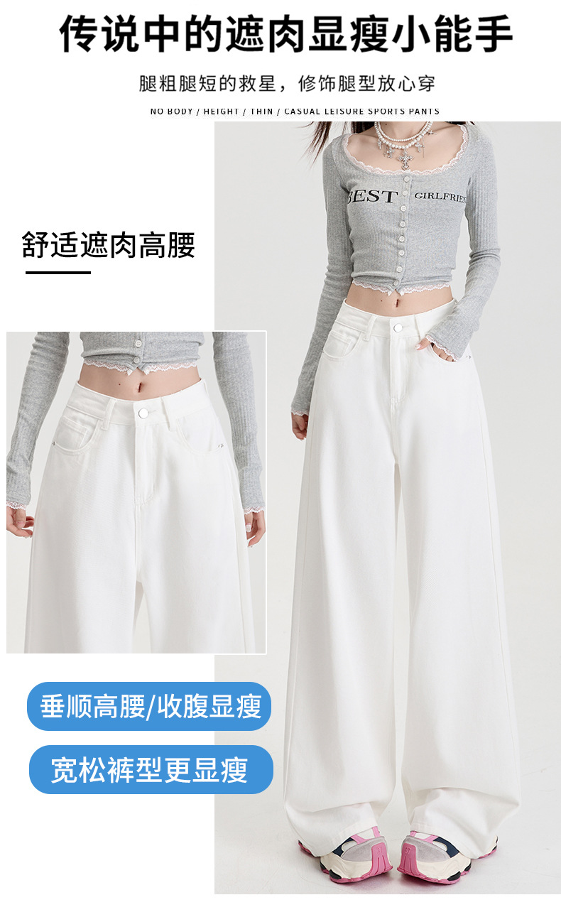 【可穿三季】三防天丝棉纯白色宽松阔腿裤 性简约显瘦防油污牛仔裤