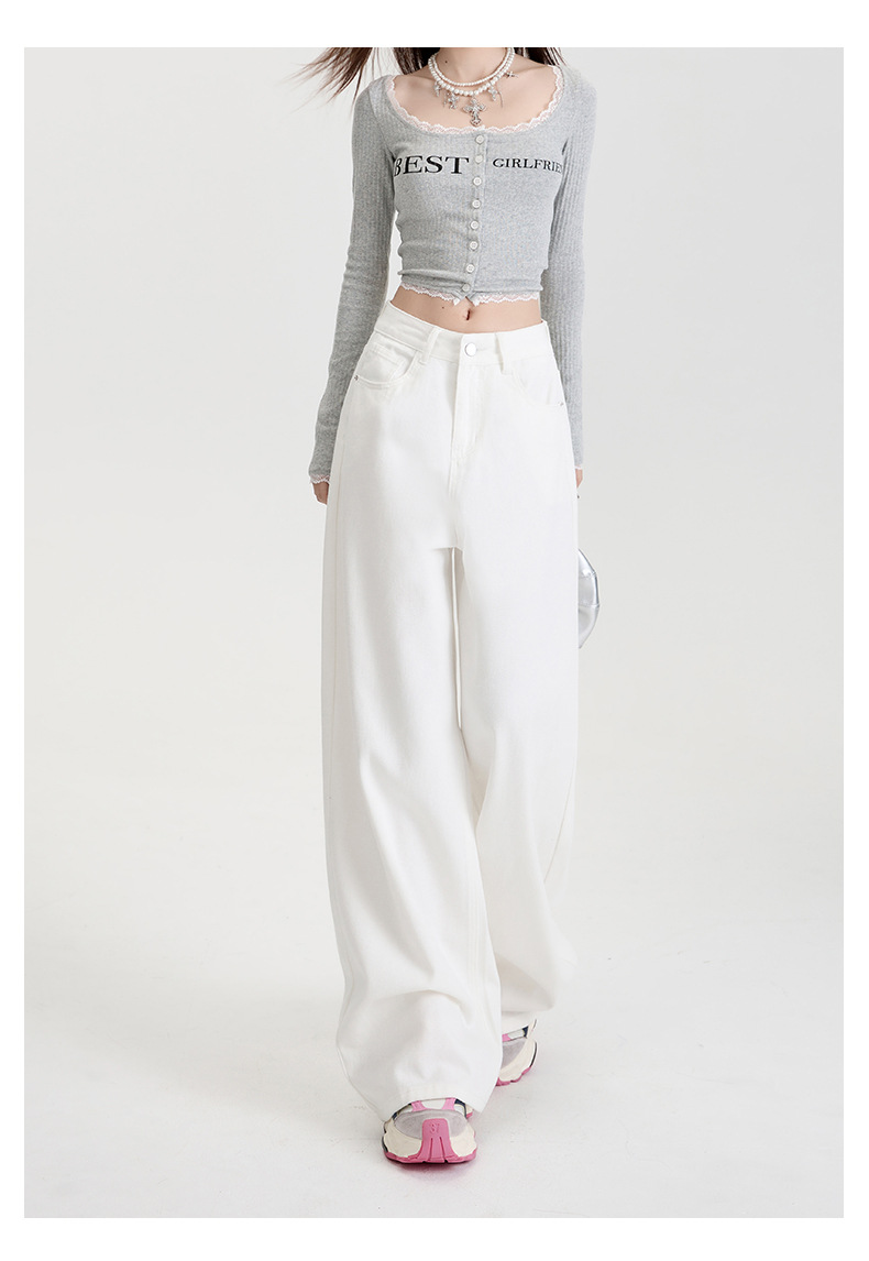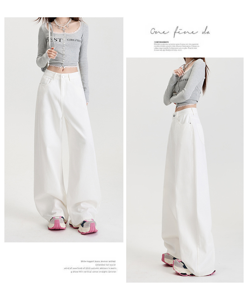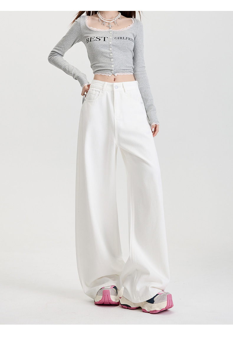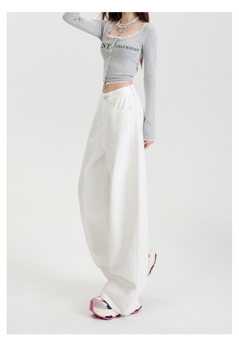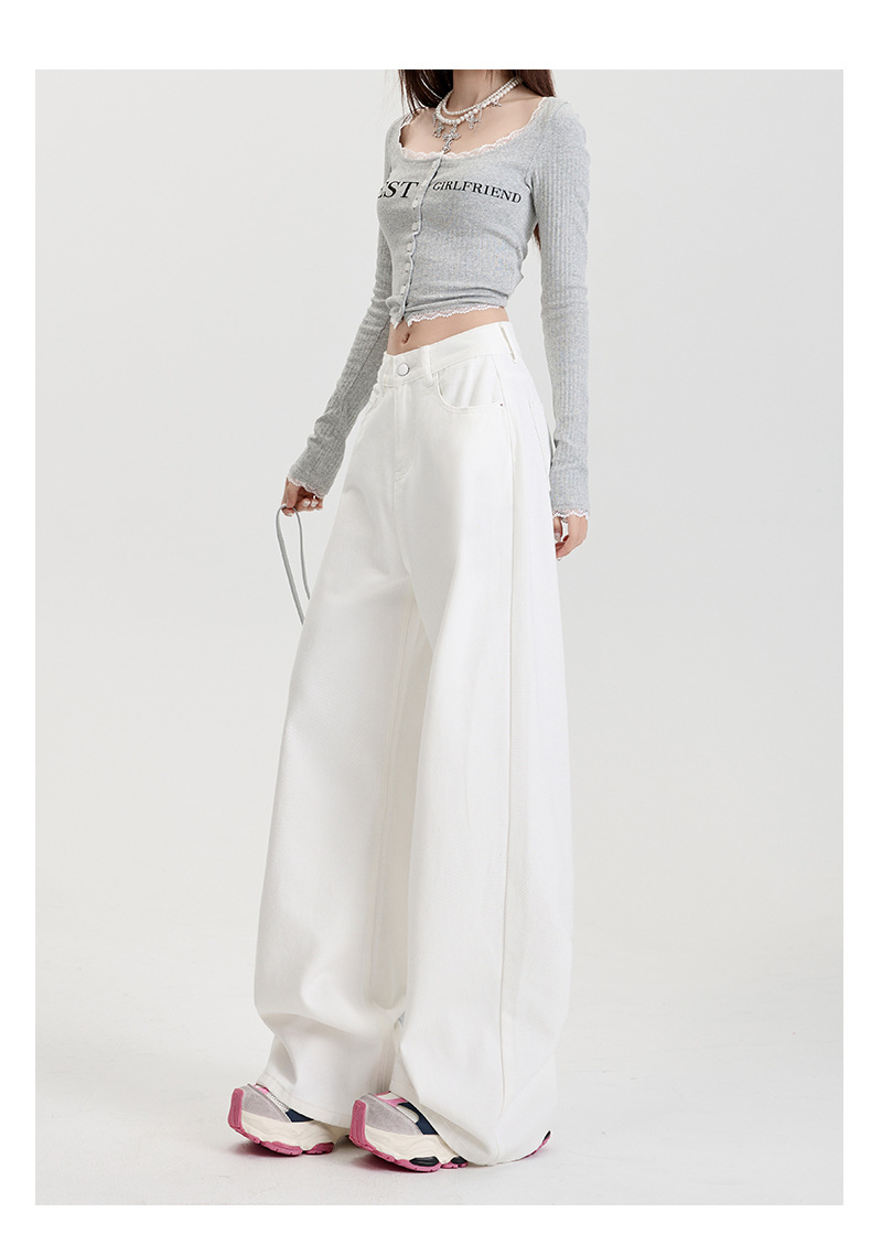 【可穿三季】三防天丝棉纯白色宽松阔腿裤 性简约显瘦防油污牛仔裤