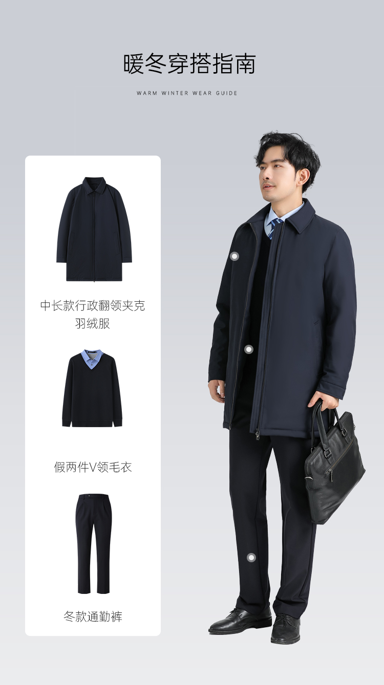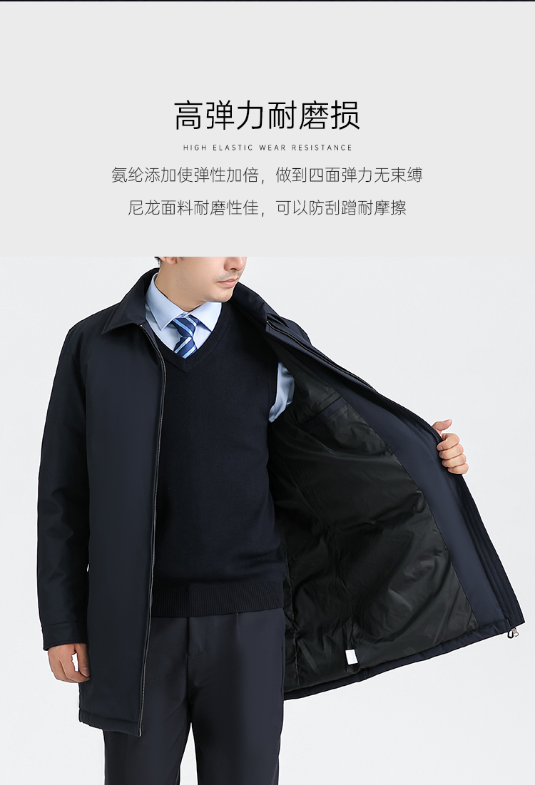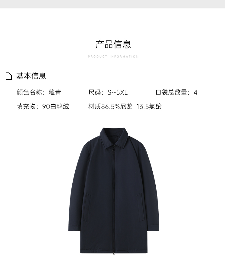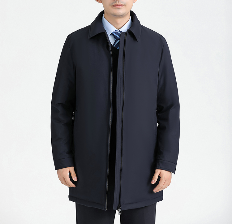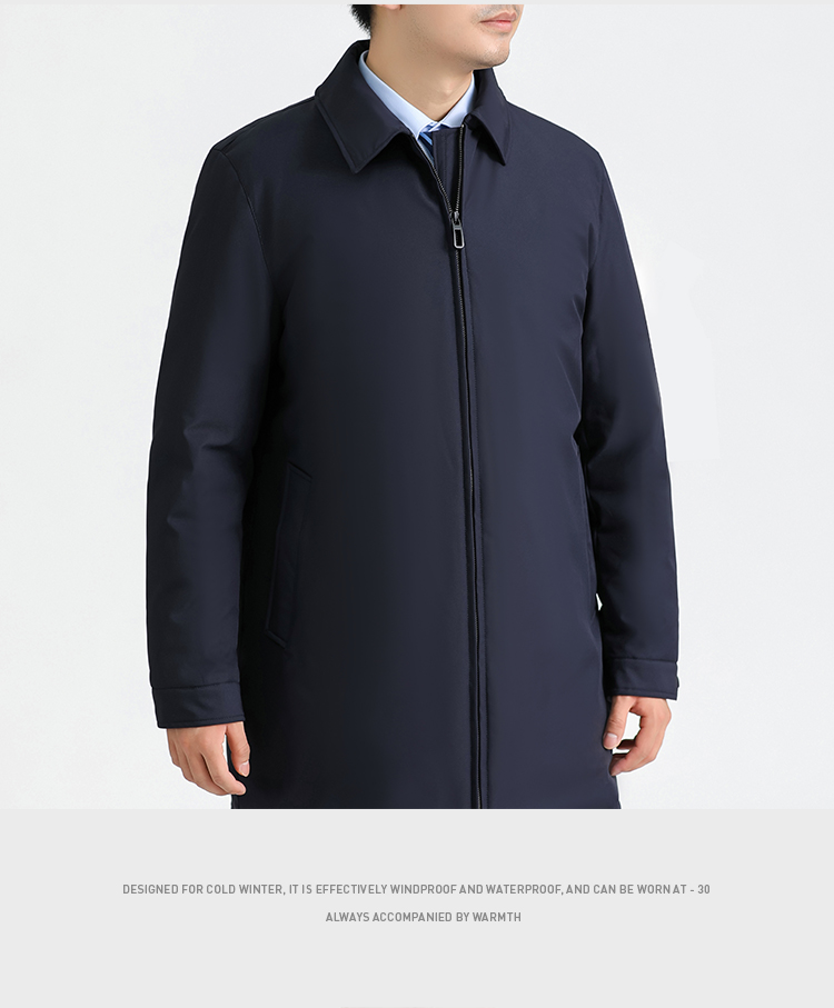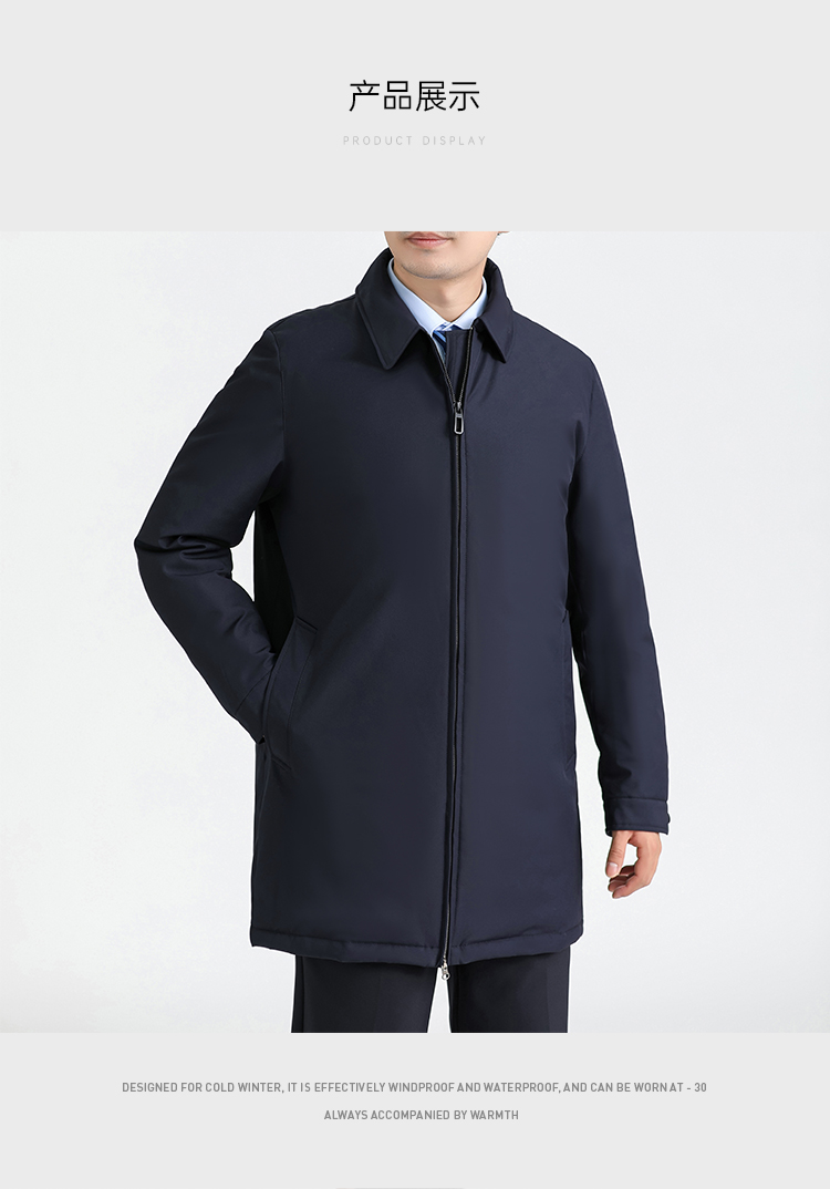 【中长款翻领羽绒服外套】防风保暖羽绒外套 中长款白鸭绒通勤棉服