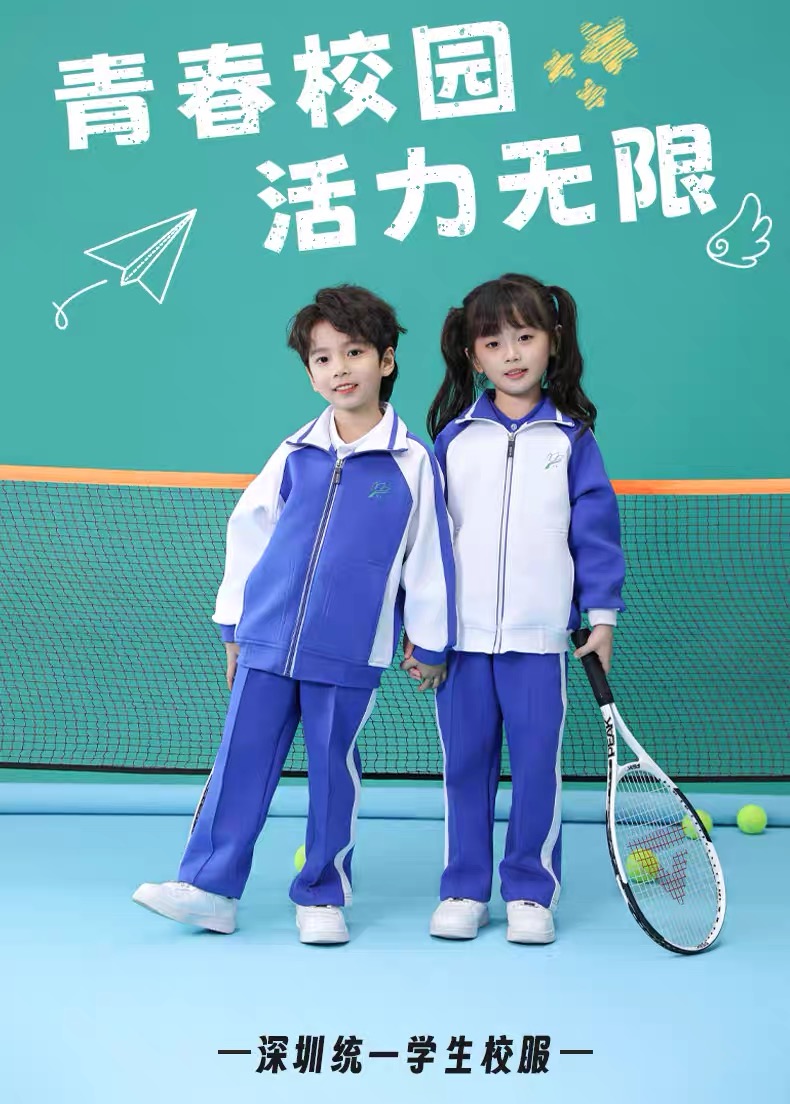 创童深圳校服银狐绒小学生冬装运动服男女加厚加绒长袖外套套装