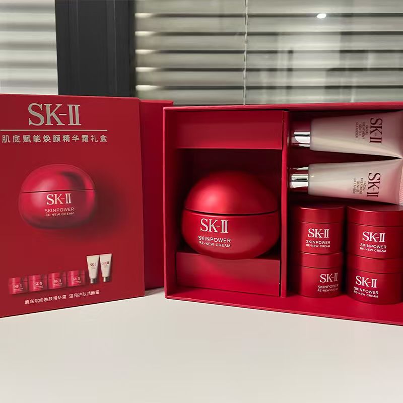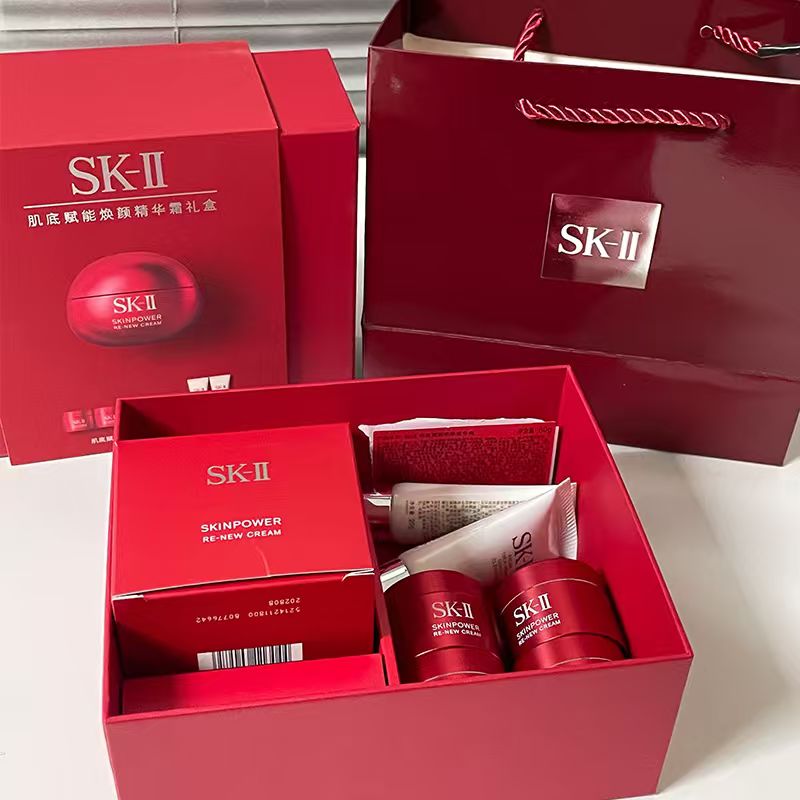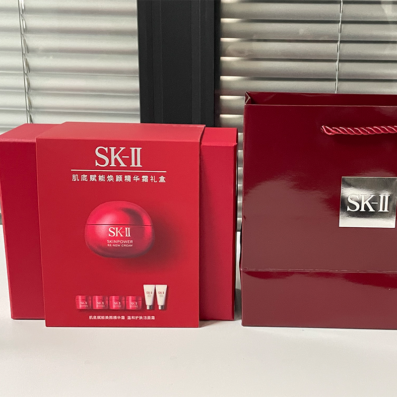 【送礼袋】SKII肌底赋能焕颜精华霜礼盒(新版大红瓶面霜80g+面霜15g*4+洁面20g*2)香港/内地随机发