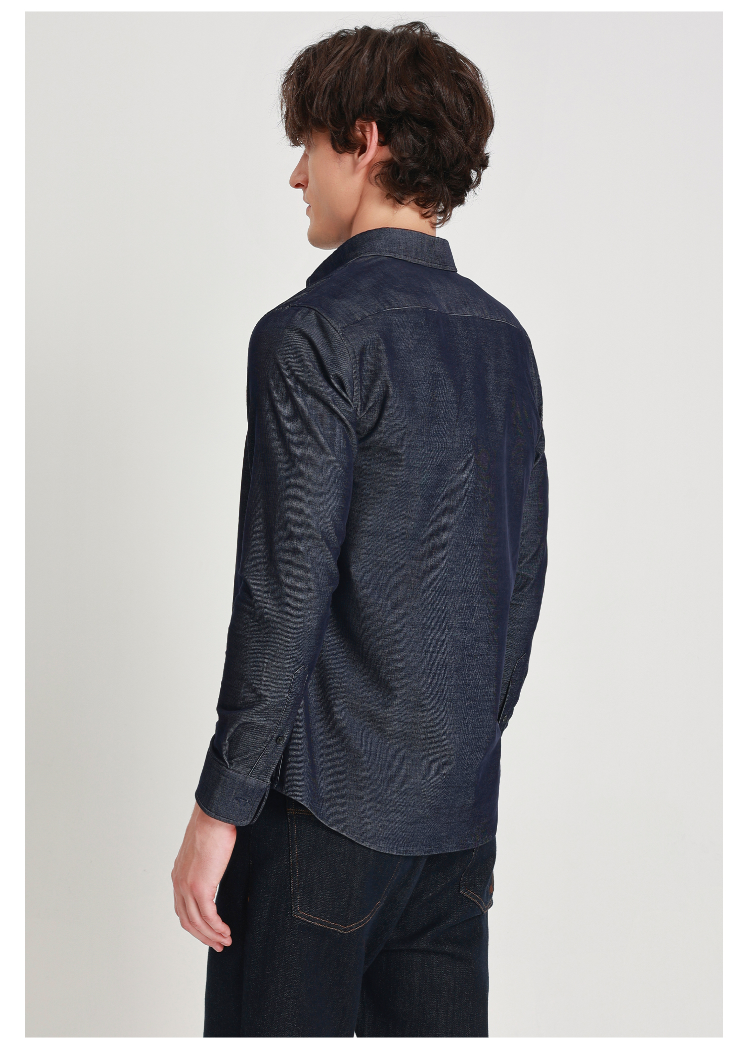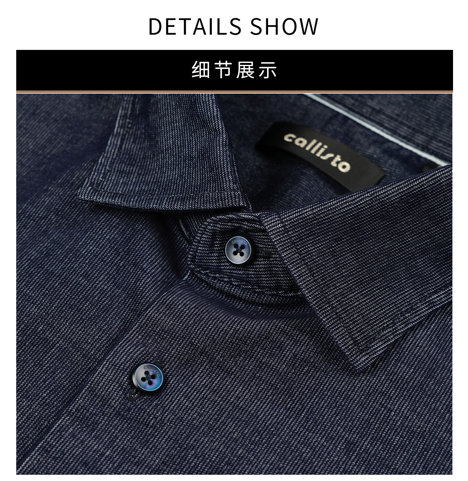 callisto蓝白巴朗斯条纹全棉意式领衬衫 SRSTL082C