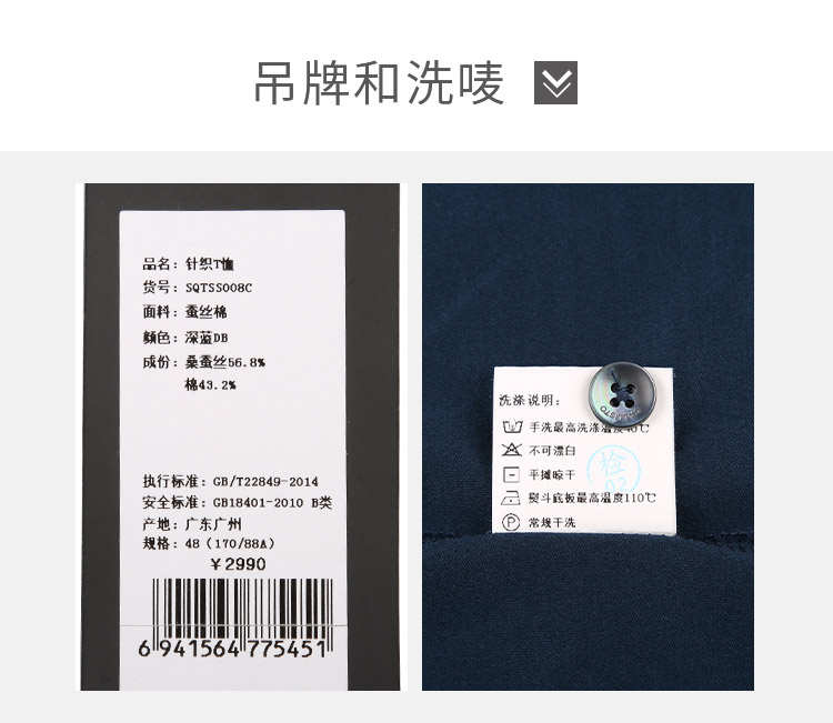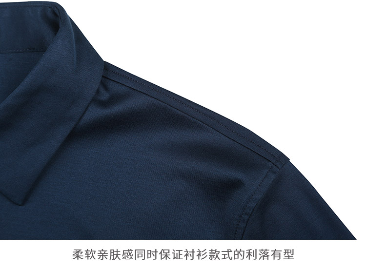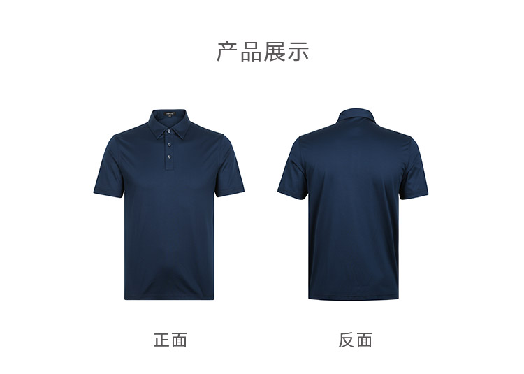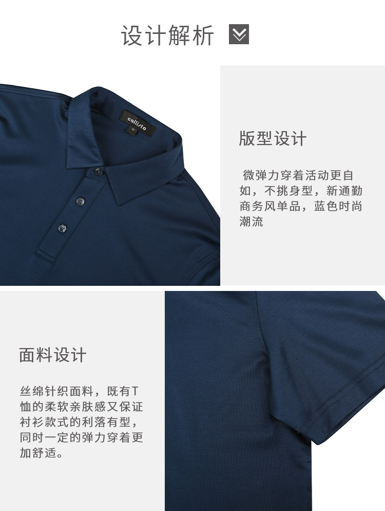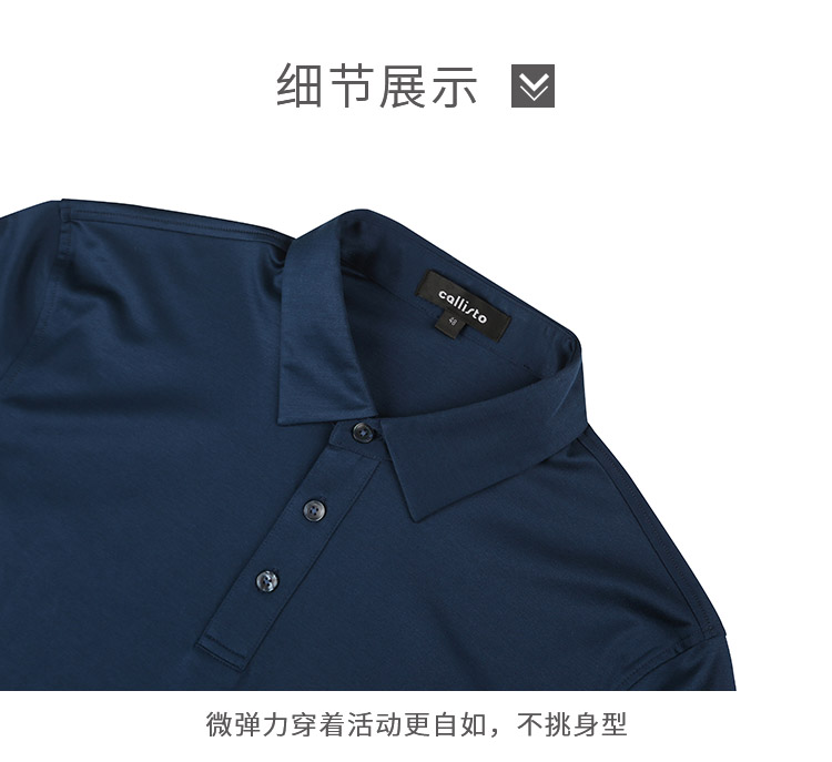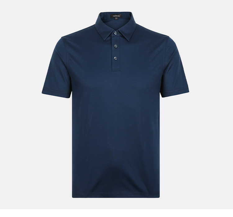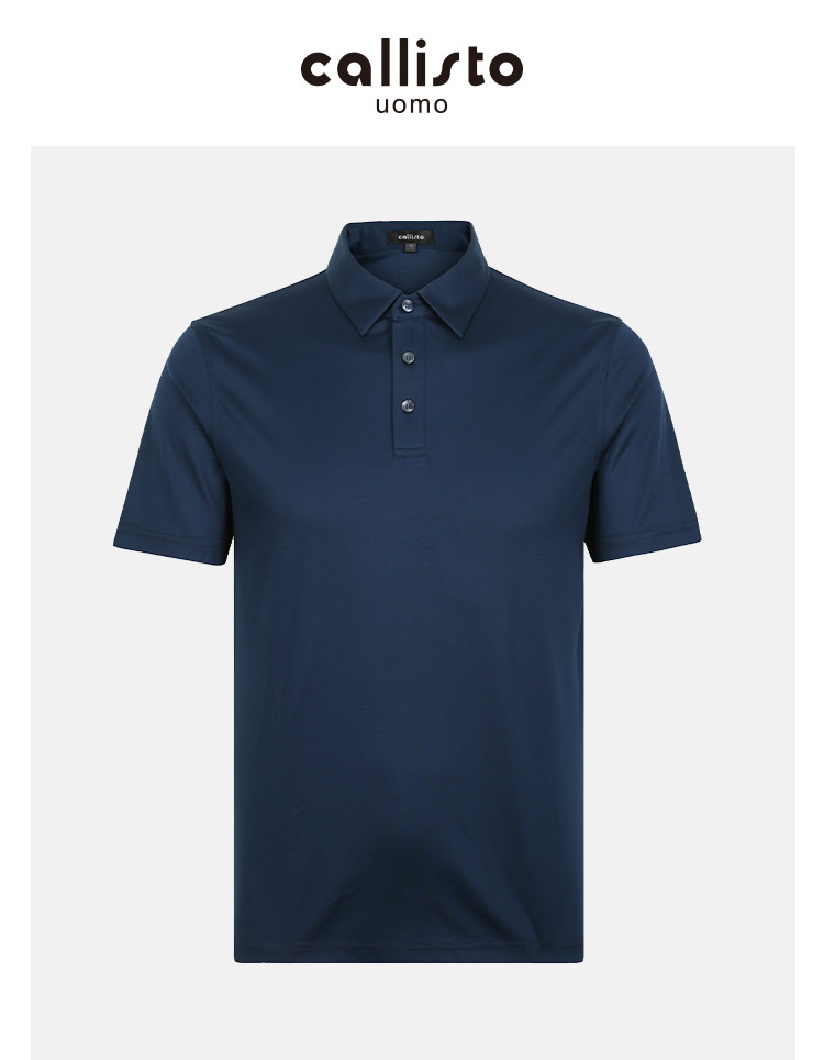 callisto深蓝蚕丝棉针织翻领T恤 SQTSS008C