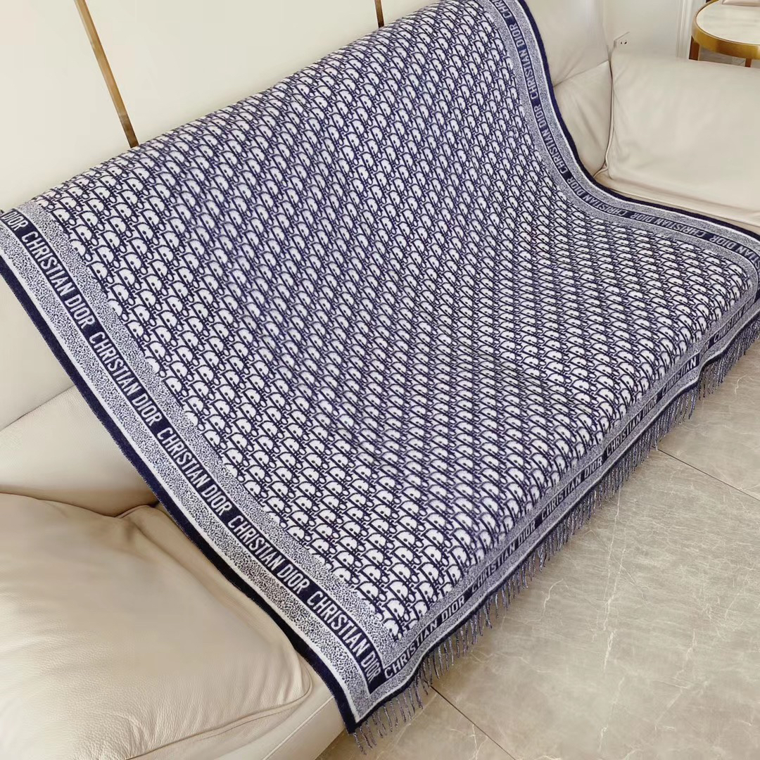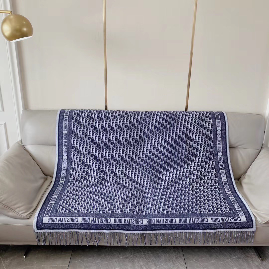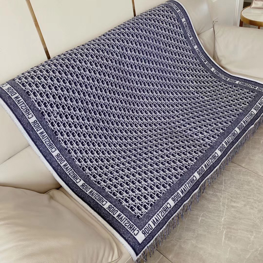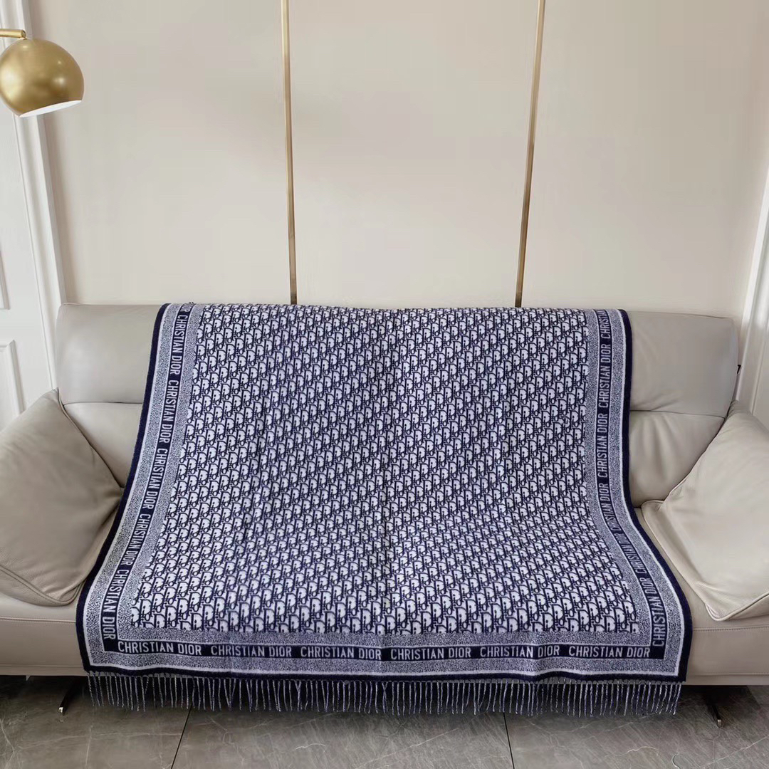秋冬特惠💰180 迪家新款围巾披肩这款深蓝色围巾采用标志性的 Oblique 印花/刺绣图案装饰,于 1967 年由 Dior 率先推出。这款围巾大部分采用针织手法,四周边缘采用大写的“Christian Dior”字样装饰。采用磨损底边装饰,可系在定制外套的颈部打造时尚风。尺寸:140 x 140cm