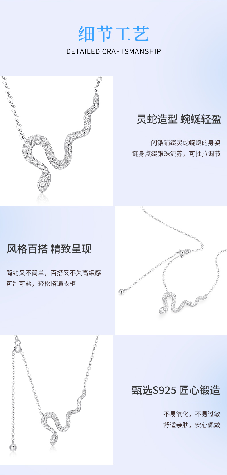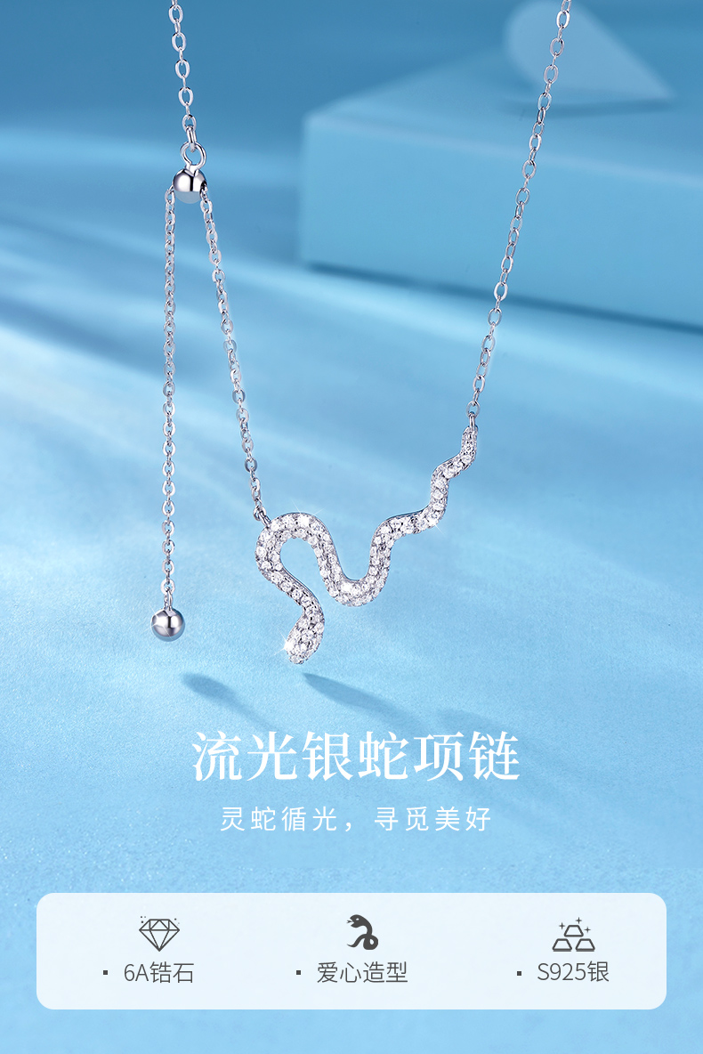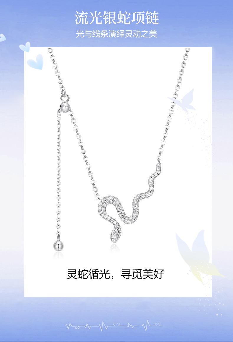 【蛇年礼赠】卡蒂罗/KADER 流光银蛇项链十二生肖蛇年本命年纳福转运可调节拼接链 小众高级感情人节女友 925银