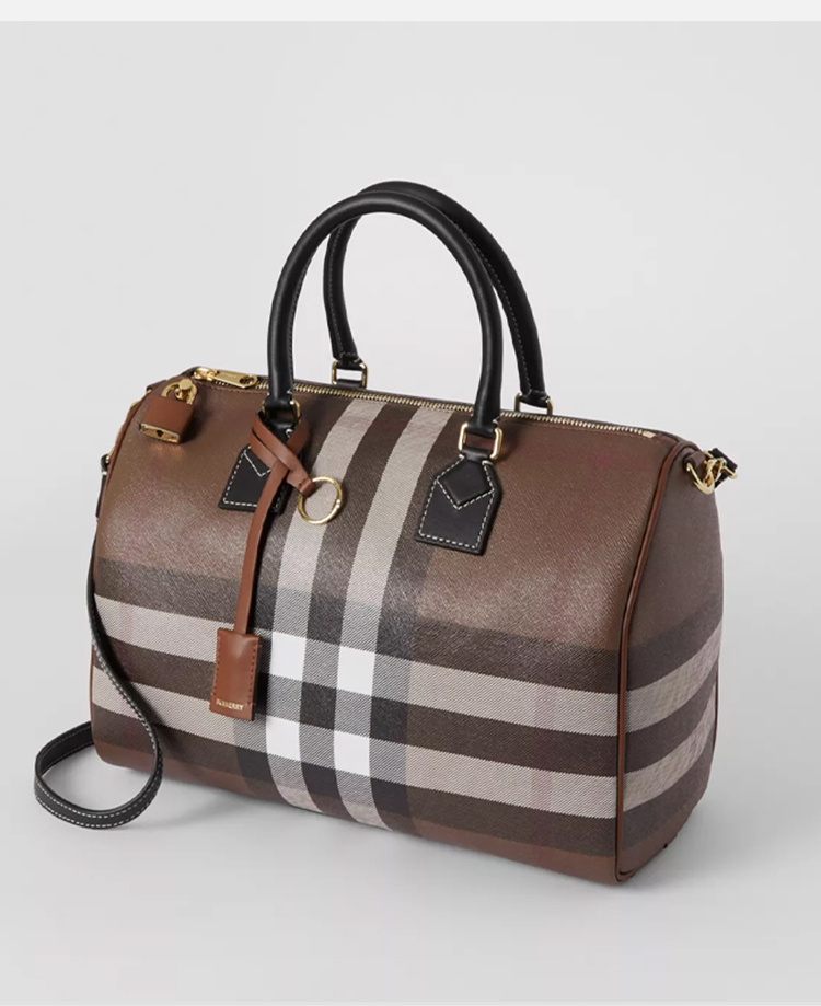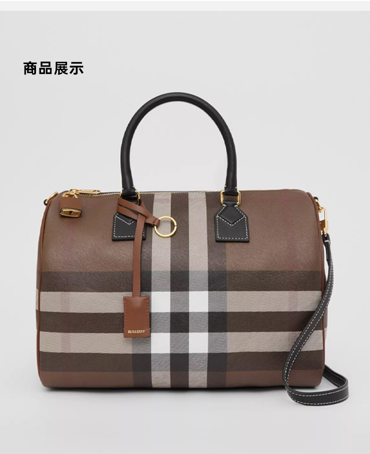 BURBERRY 巴宝莉 女士中号格纹皮革提挎保龄球包 深桦木棕色 8052348 A9011