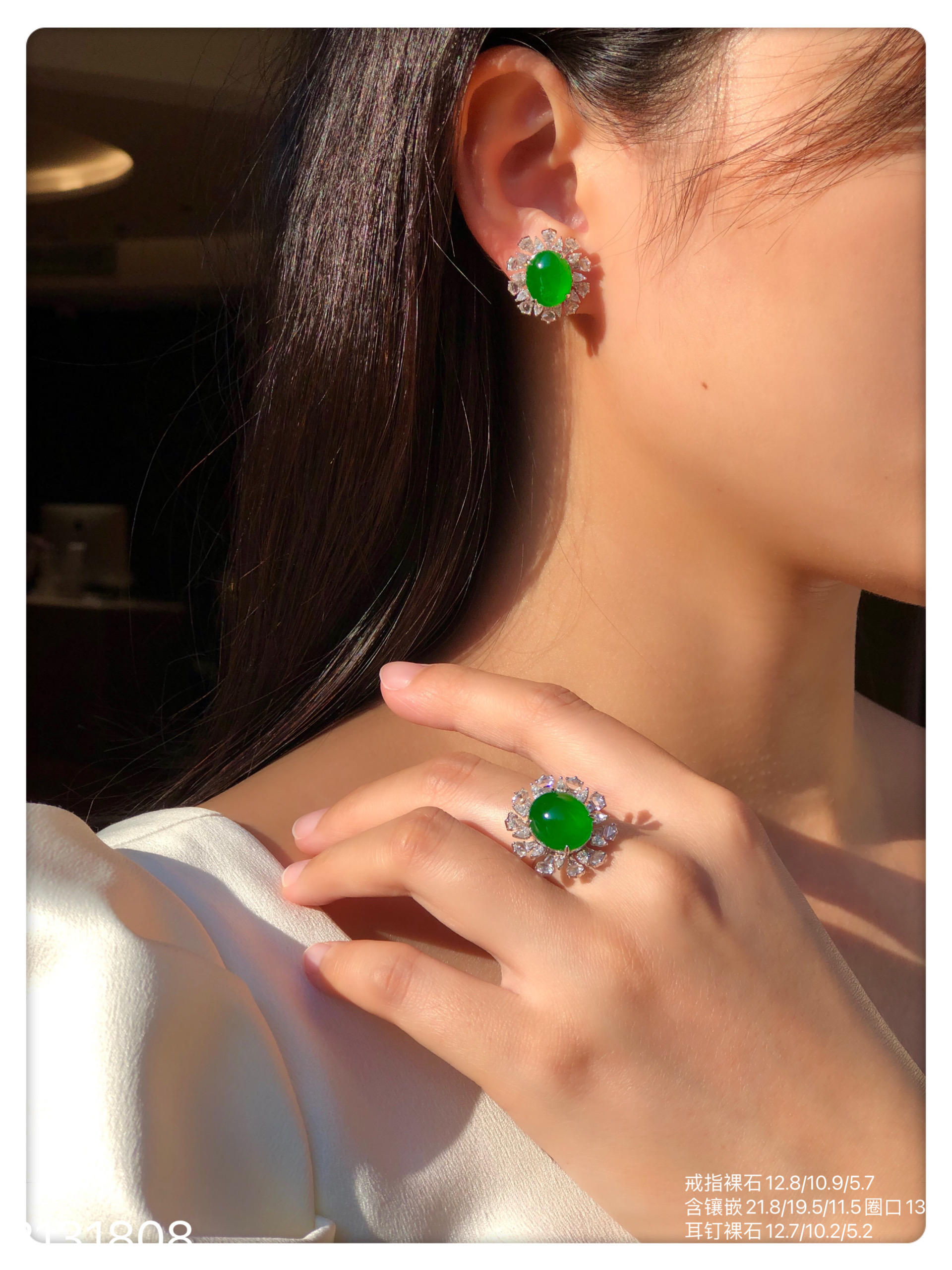 120-1232908,玻璃种木那艳绿蛋面戒指,具体价格微信咨询