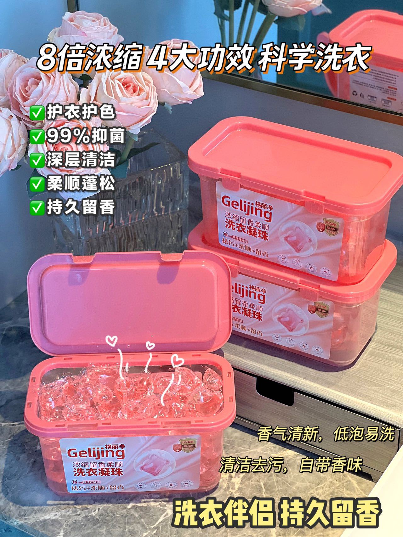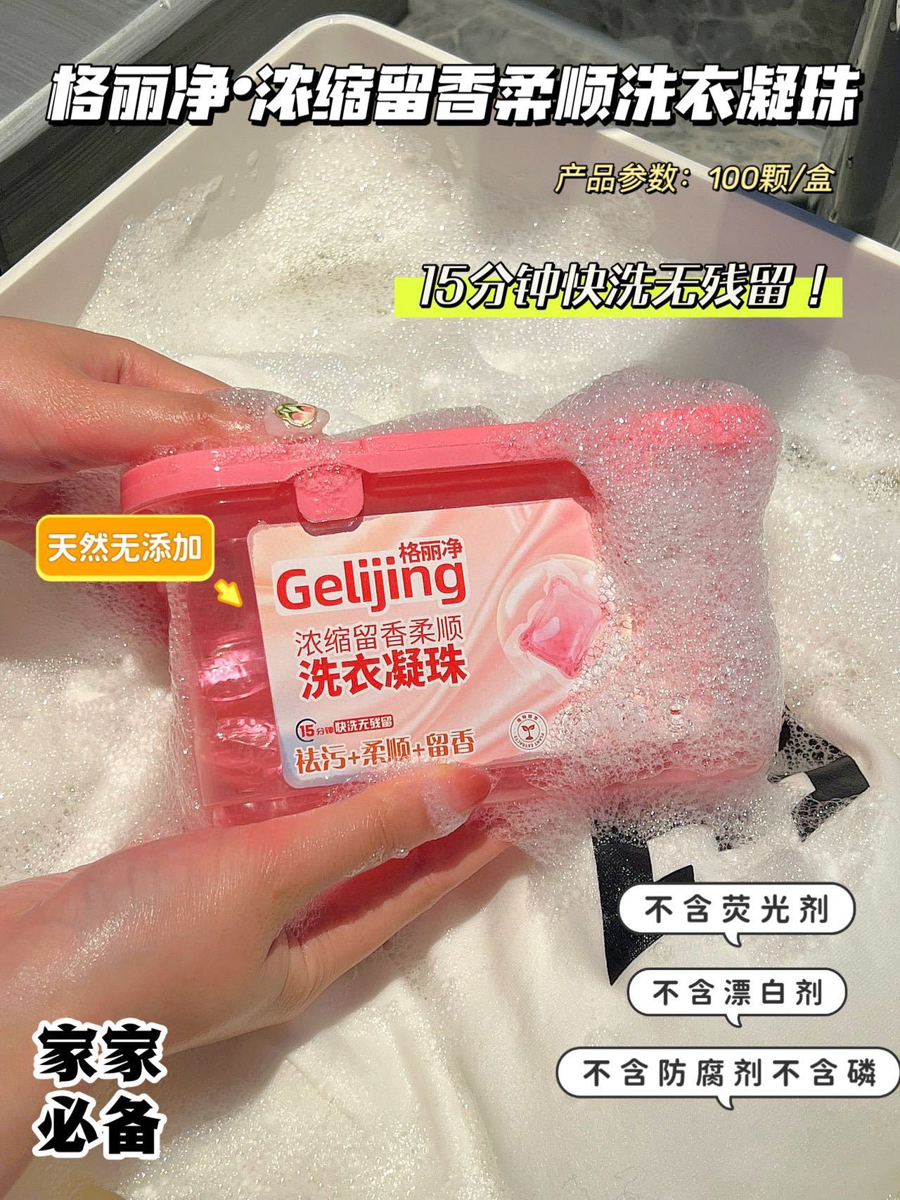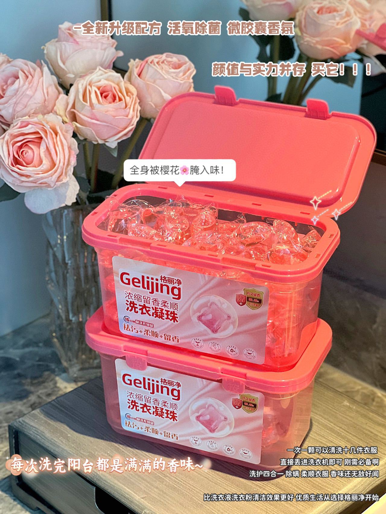 「19.9元到手100颗!洗护合一」樱花香洗衣凝珠 居家日用浓缩留香柔顺100颗盒装格丽净洗衣凝珠去污去渍