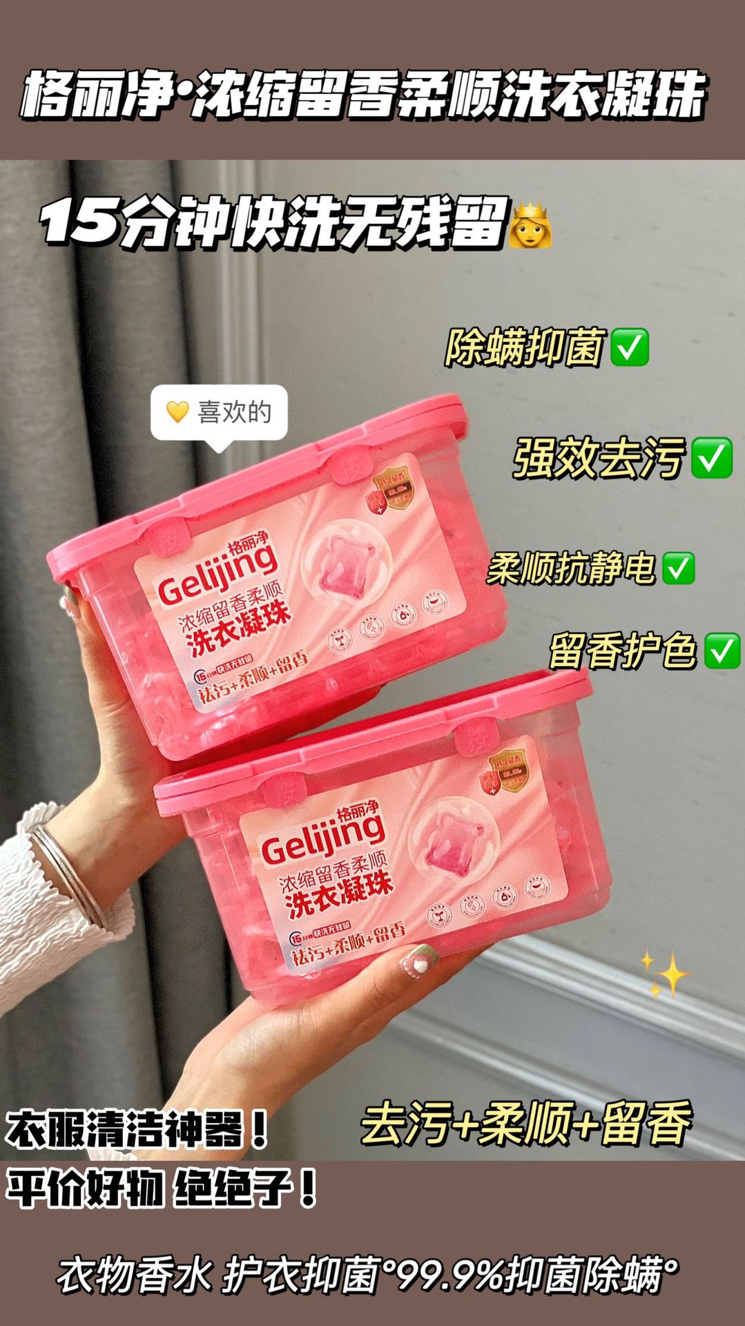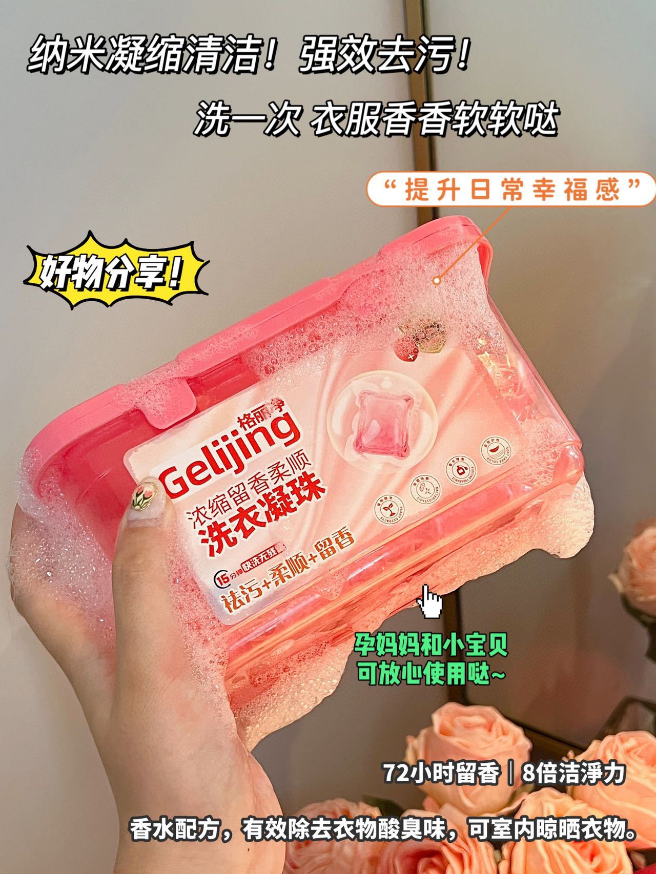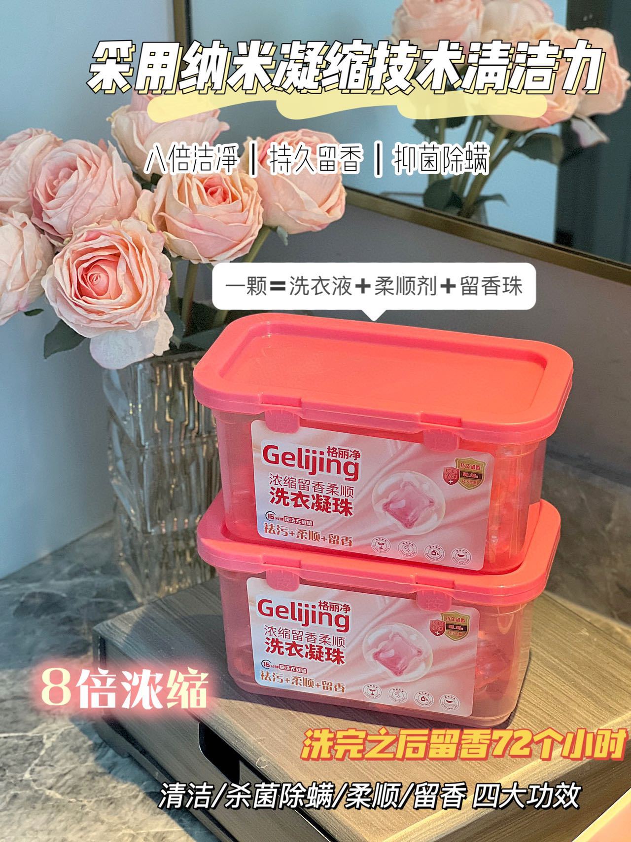 「19.9元到手100颗!洗护合一」樱花香洗衣凝珠 居家日用浓缩留香柔顺100颗盒装格丽净洗衣凝珠去污去渍