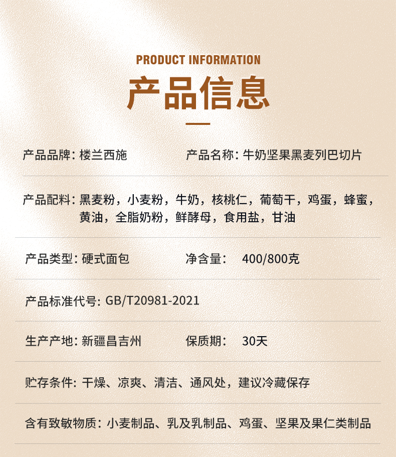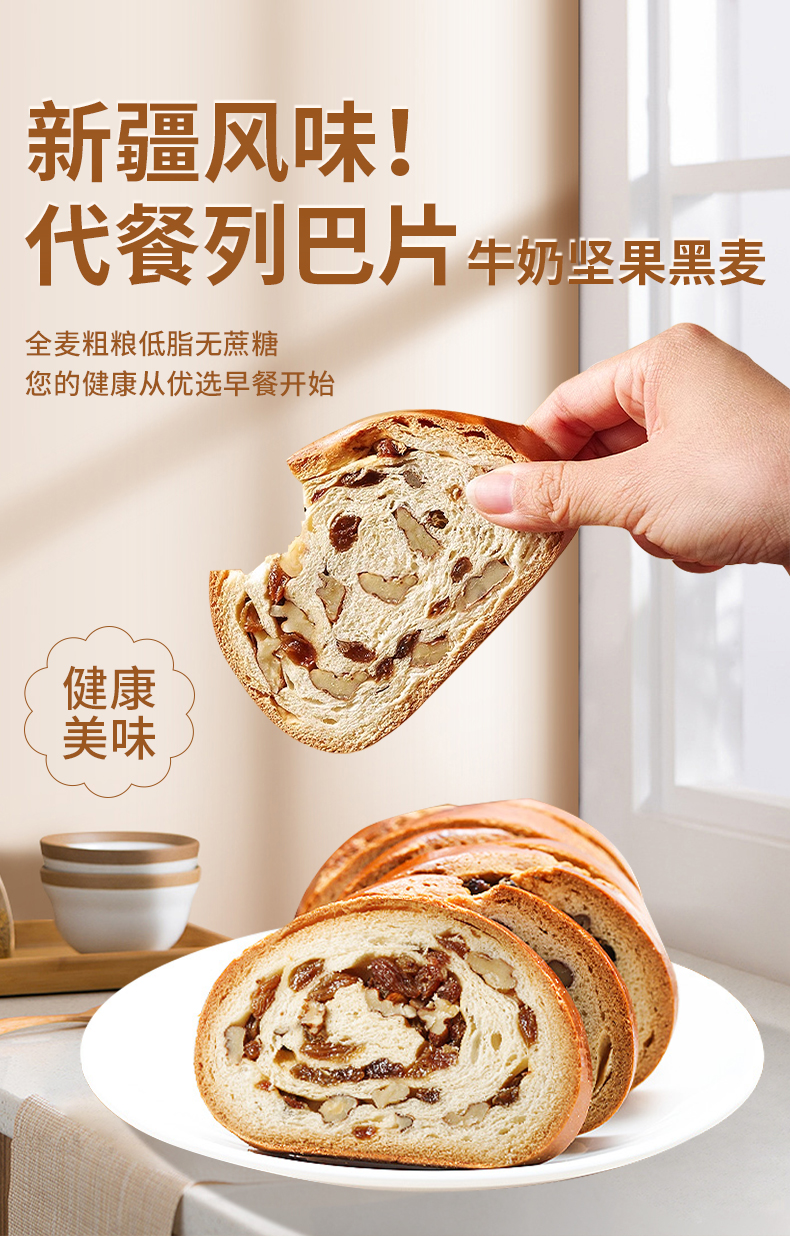 楼兰西施牛奶坚果黑麦代餐列巴切片