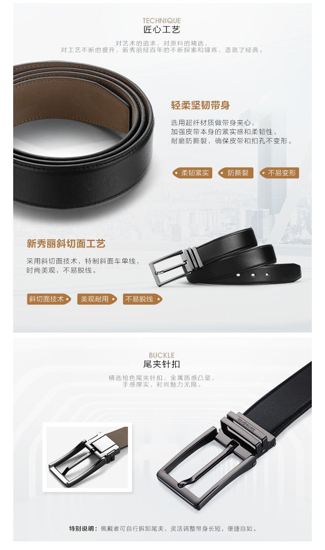 新秀丽(Samsonite)男皮带 男士休闲商务腰带男式裤带男款1.3寸尾夹针扣皮带 黑色 BW5*09002 120CM