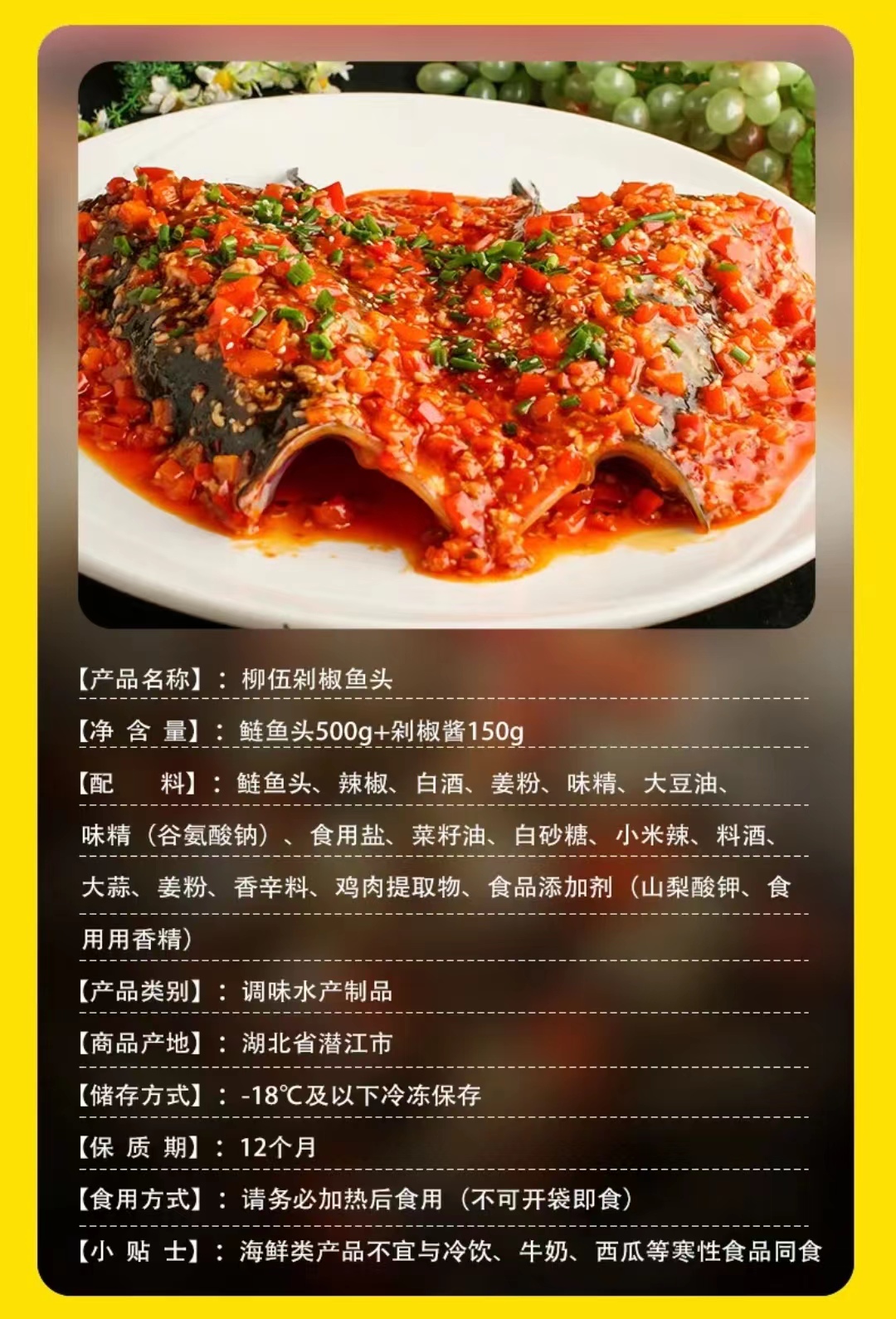 【严选】柳伍鲢鱼头剁椒鱼头650g*3袋