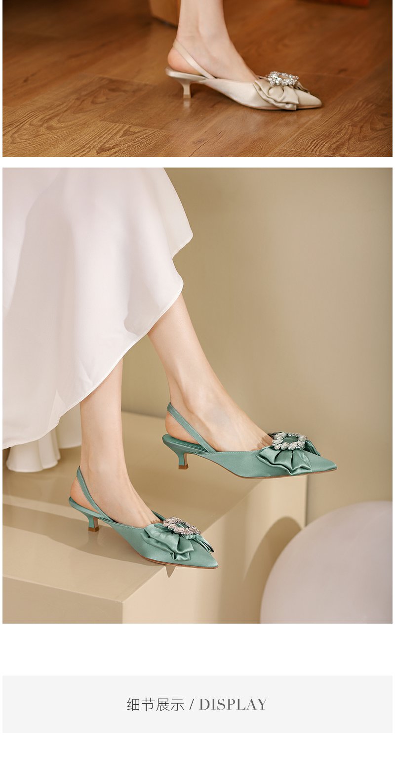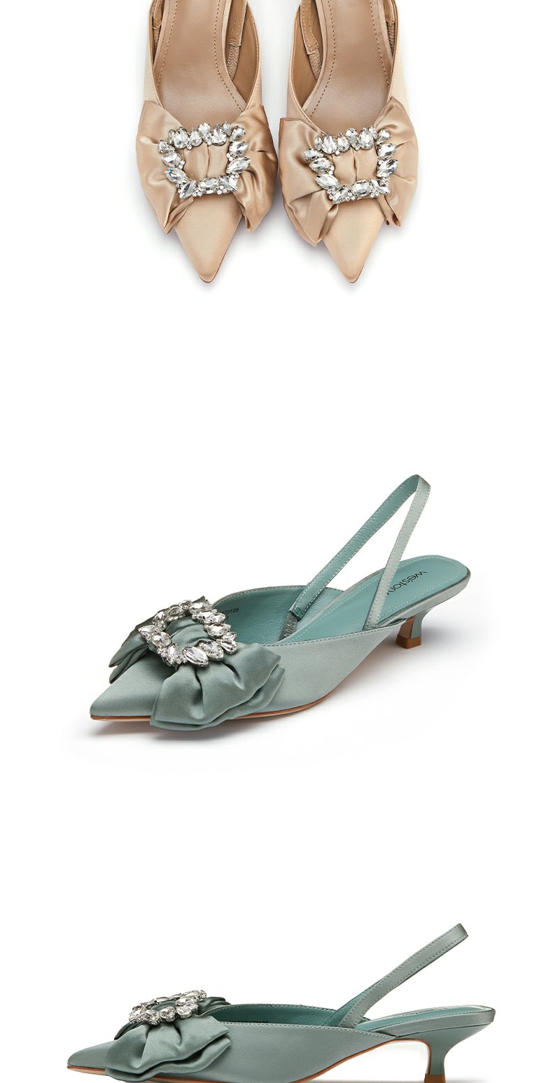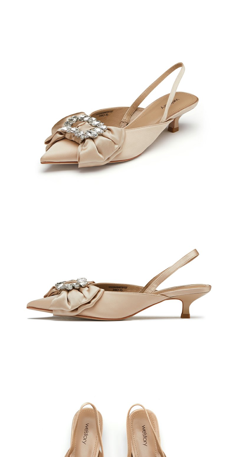 westory2022年夏蝴蝶结水钻尖头中细跟后空法式单鞋凉鞋女W22AH54731