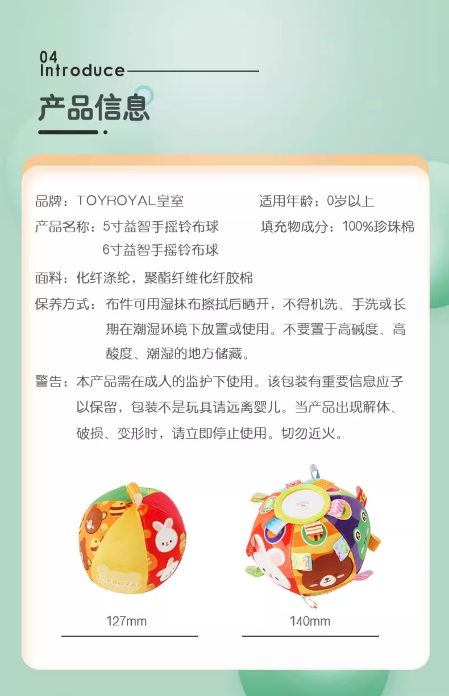 Toyoyal皇室玩具婴儿手抓球新生儿摇铃触觉球布球0-1岁安抚感知球/TRY-ZYL06