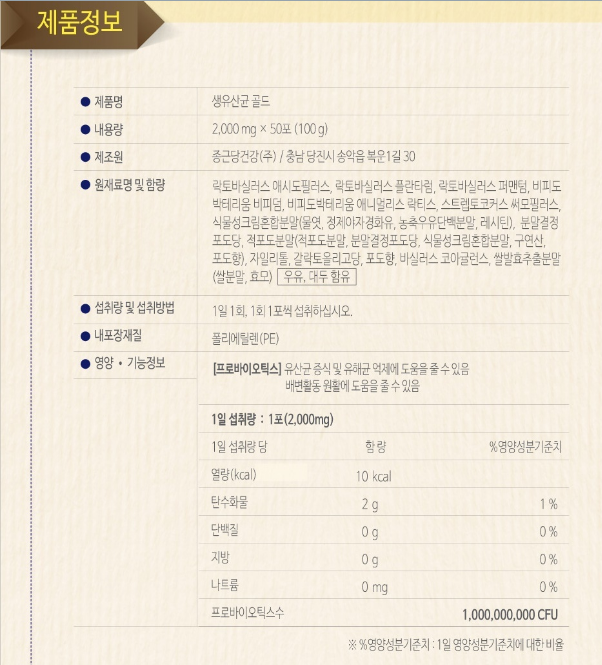 락토핏 생유산균골드 프로바이오 틱스50포(100g)