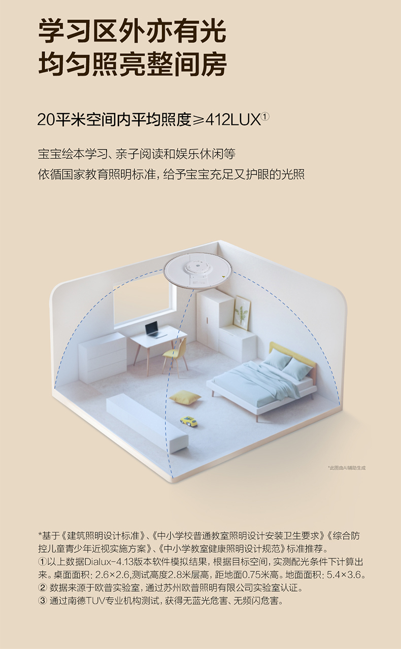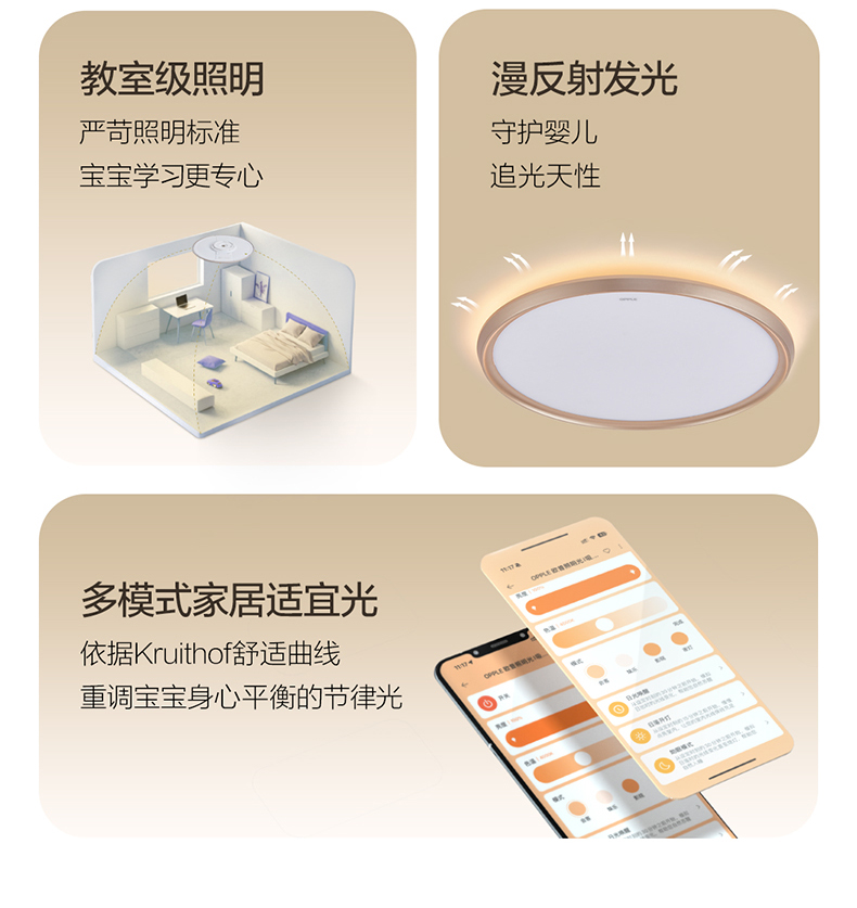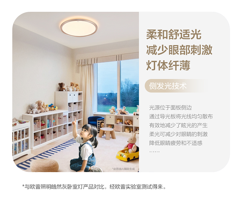 欧普(OPPLE)25新LED全光谱婴幼儿童0眩光专业光越侧发光护眼吸顶灯具饰卧室灯