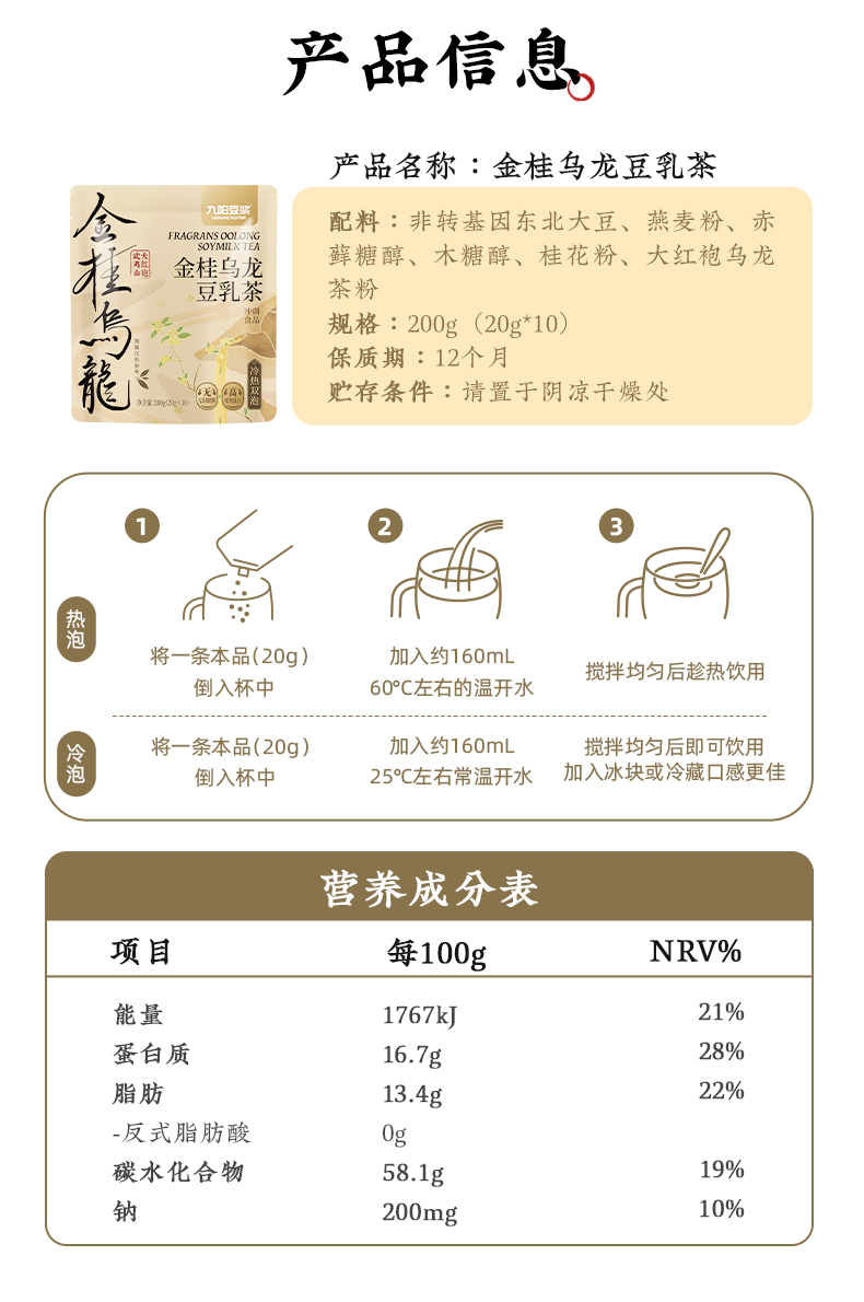 【金桂乌龙】九阳豆浆茉莉龙井金桂乌龙豆乳茶奶茶0糖添加下午茶早餐桂花