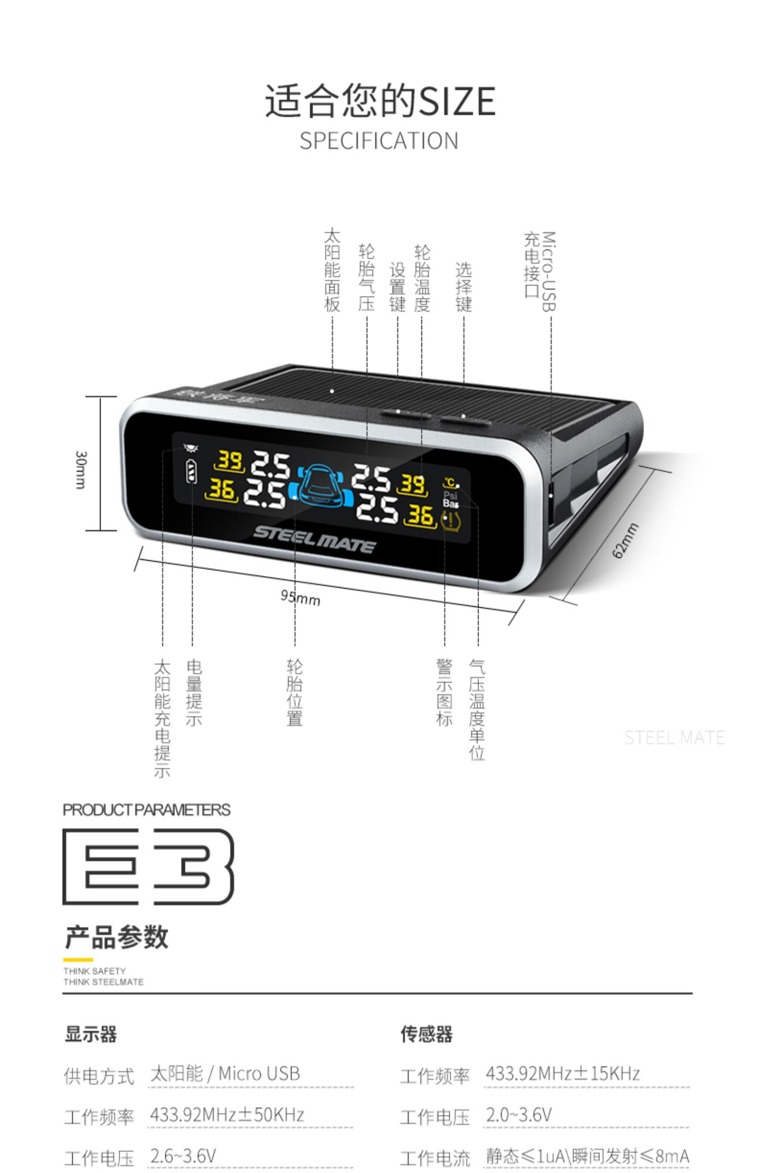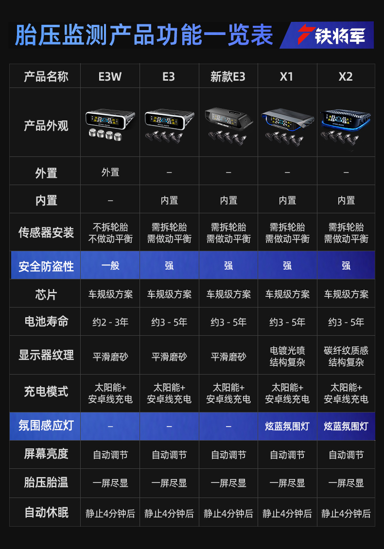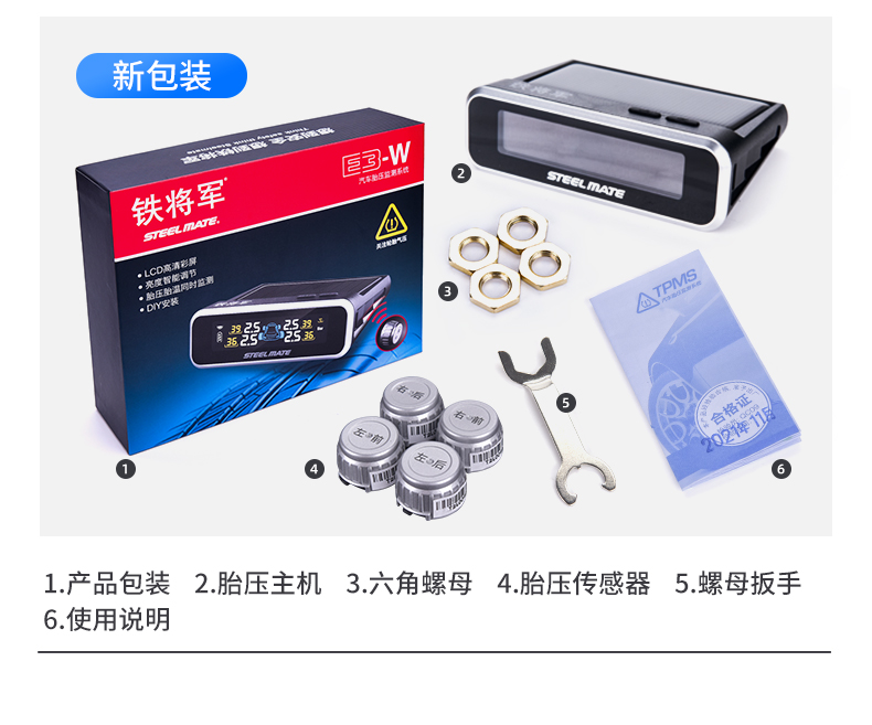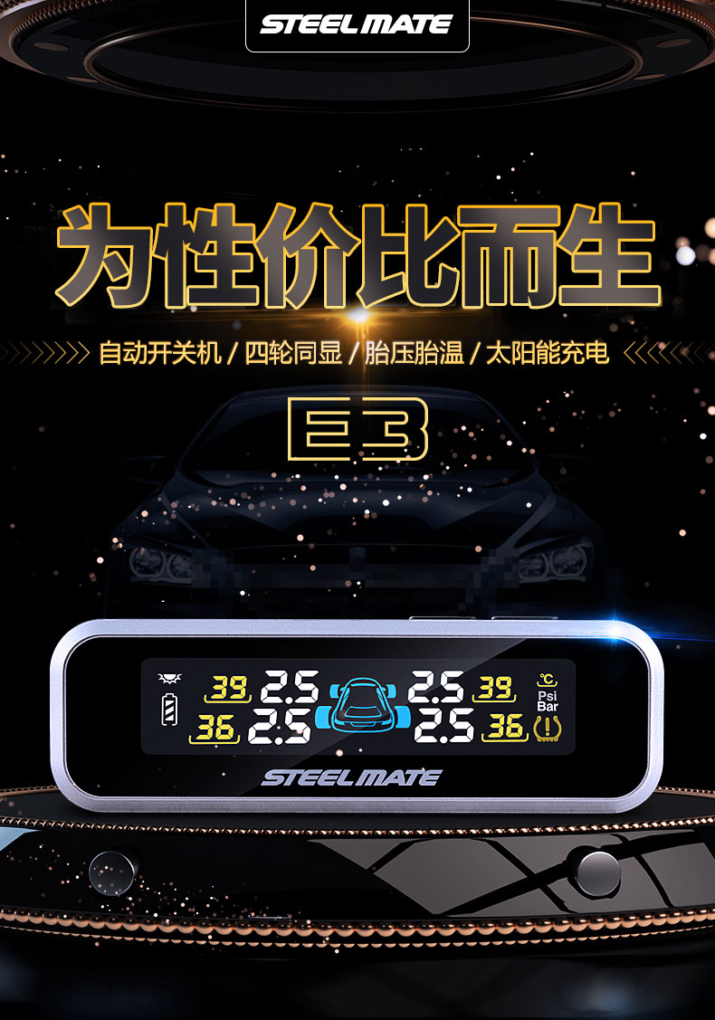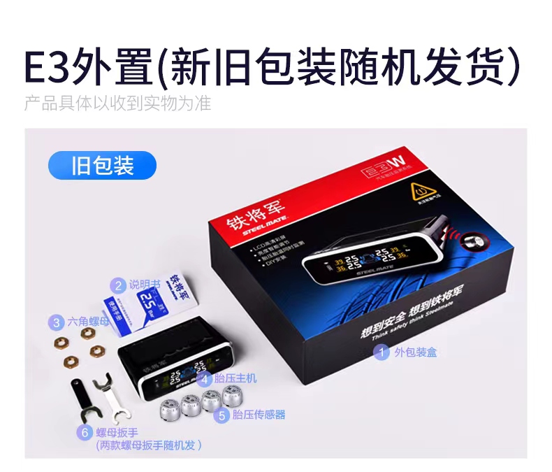 铁将军内置胎压监测器外置无线太阳能高精度汽车轮胎压表检测仪E3
