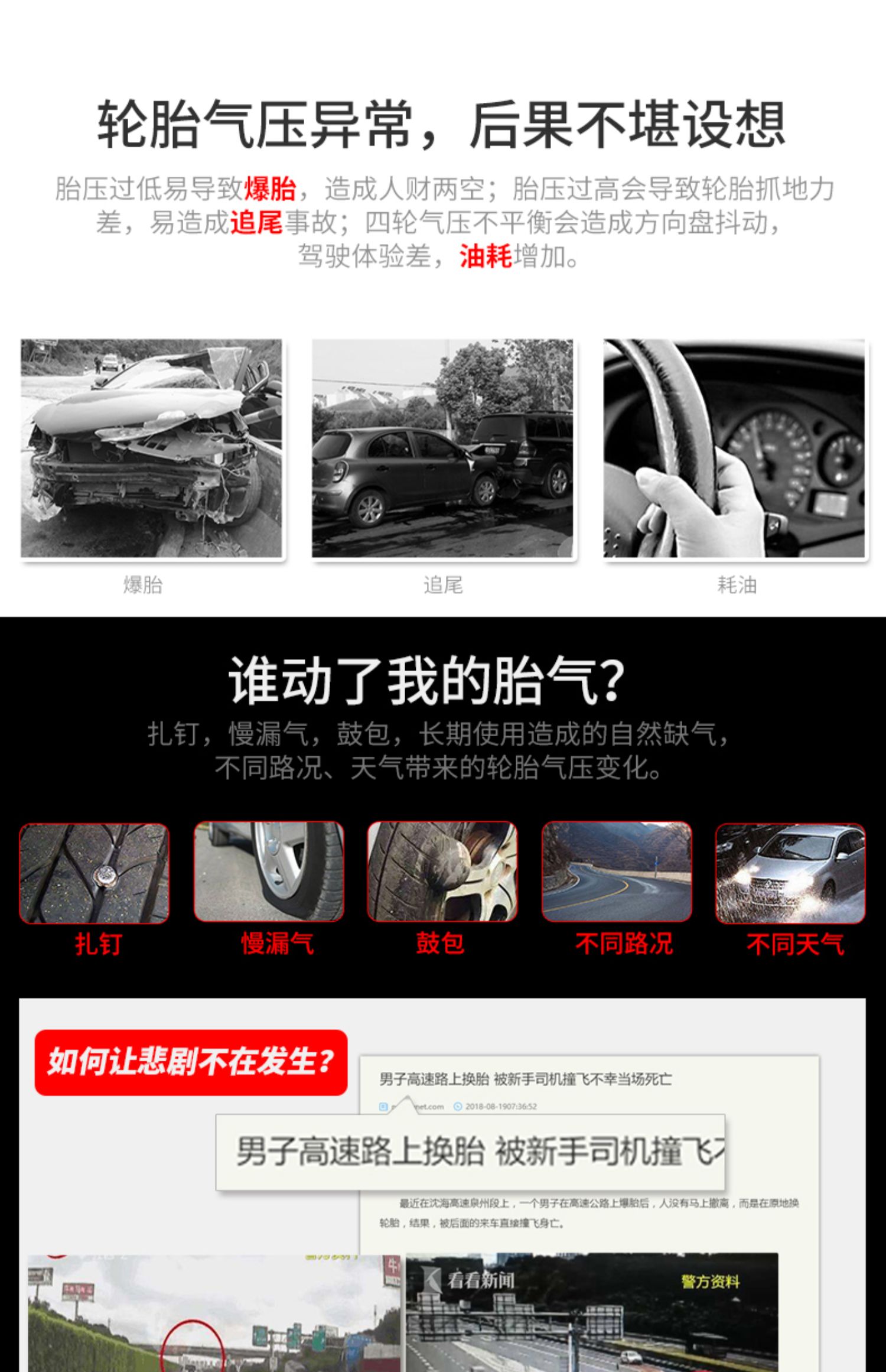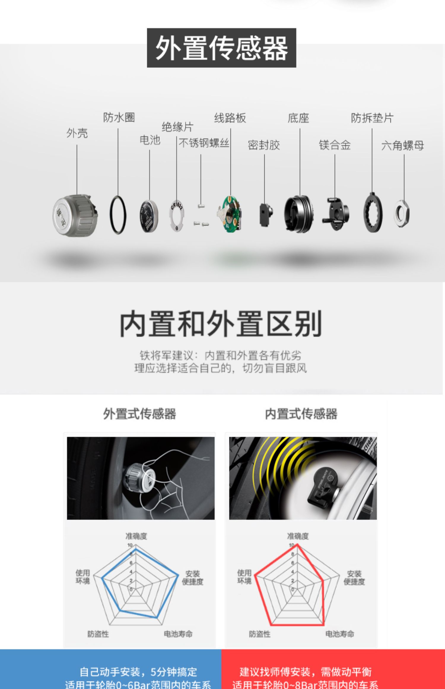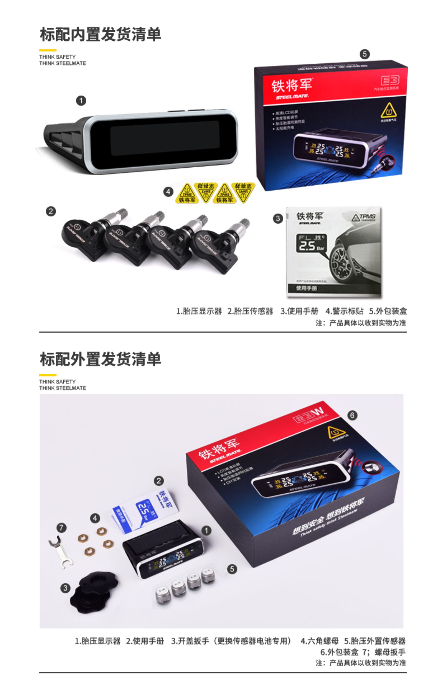 铁将军内置胎压监测器外置无线太阳能高精度汽车轮胎压表检测仪E3