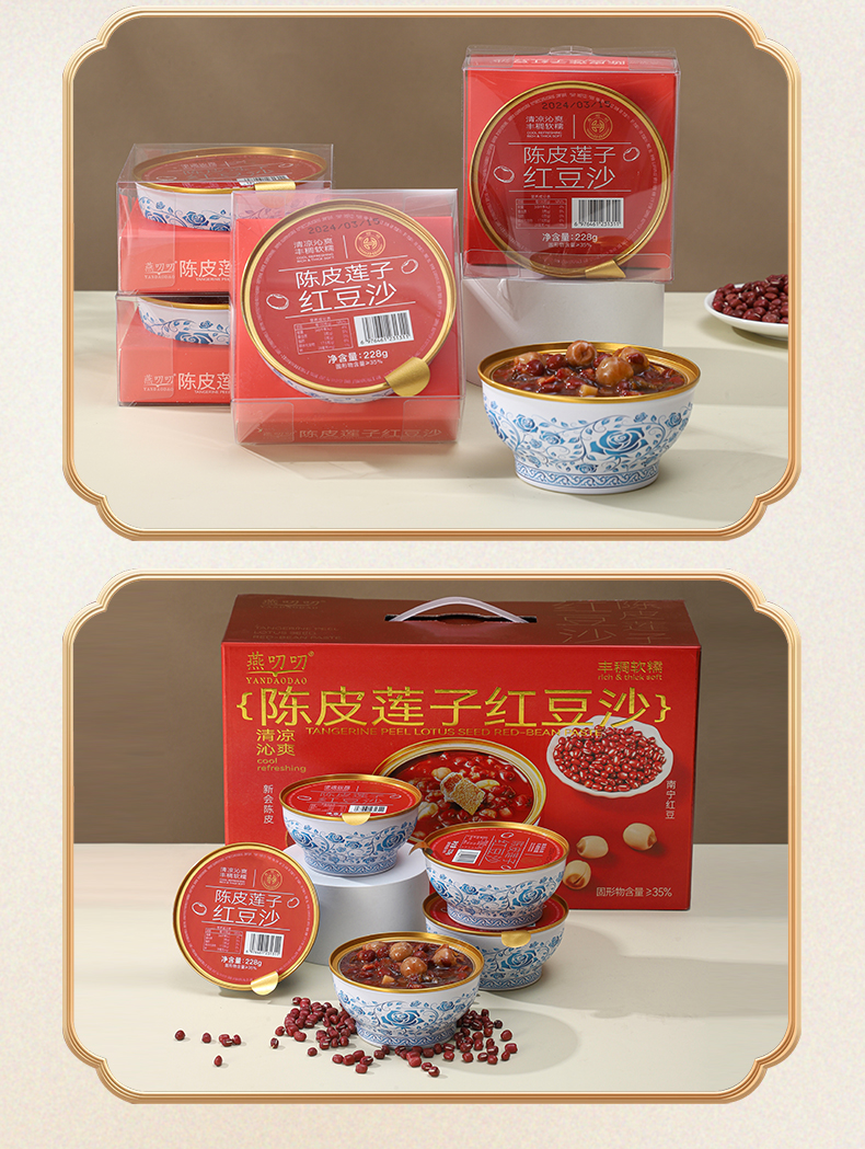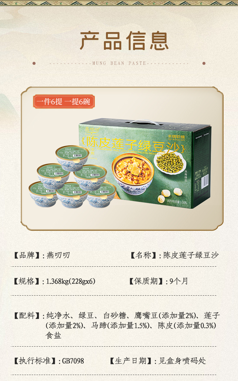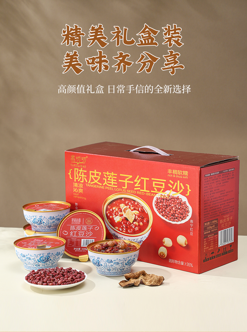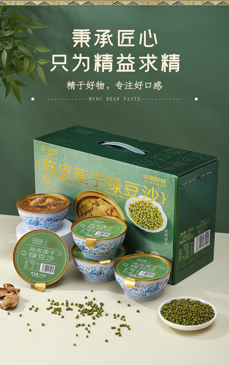 燕叨叨陈皮莲子绿豆沙礼盒 0脂低钠速食代餐粥八宝粥 陈皮莲子红豆沙节日送礼