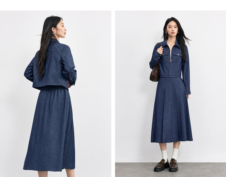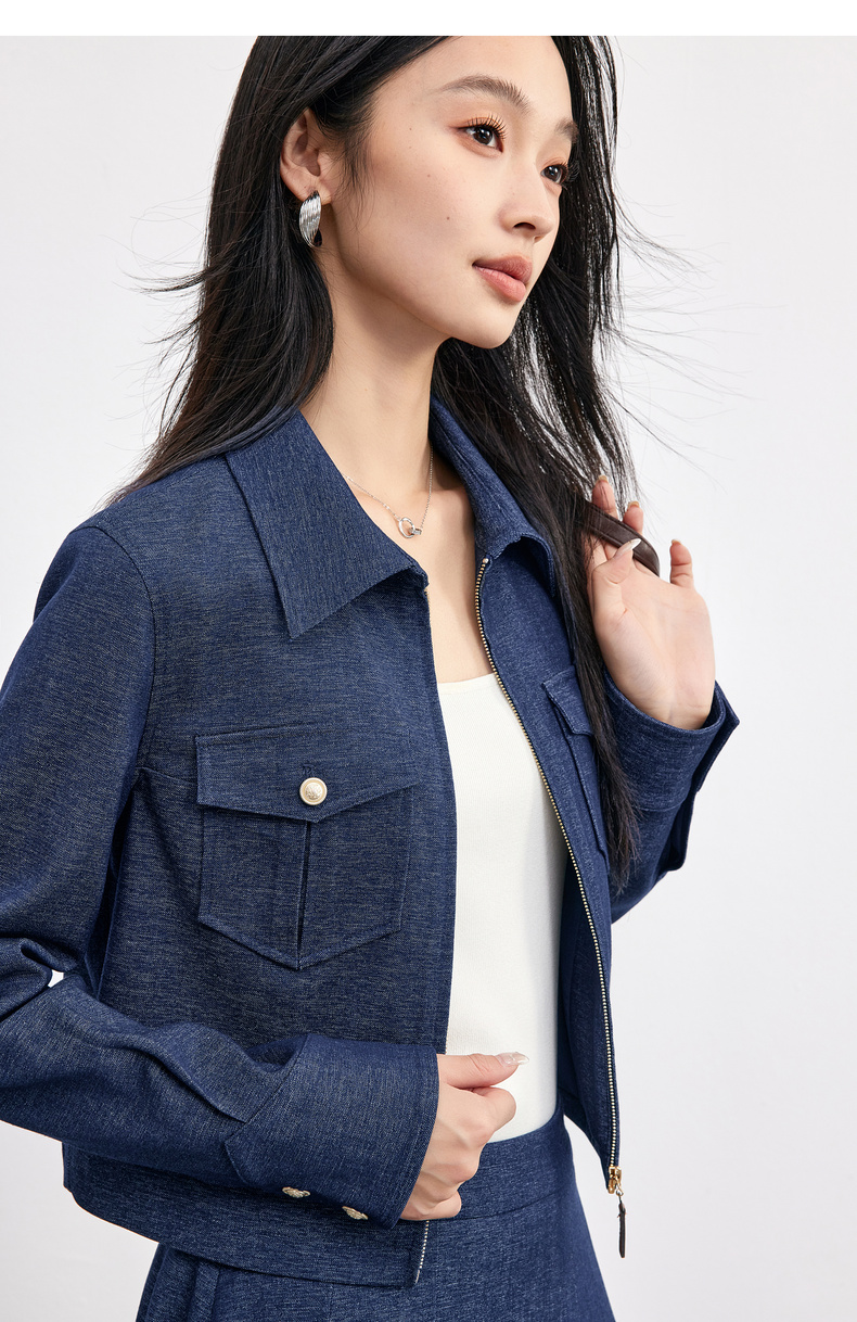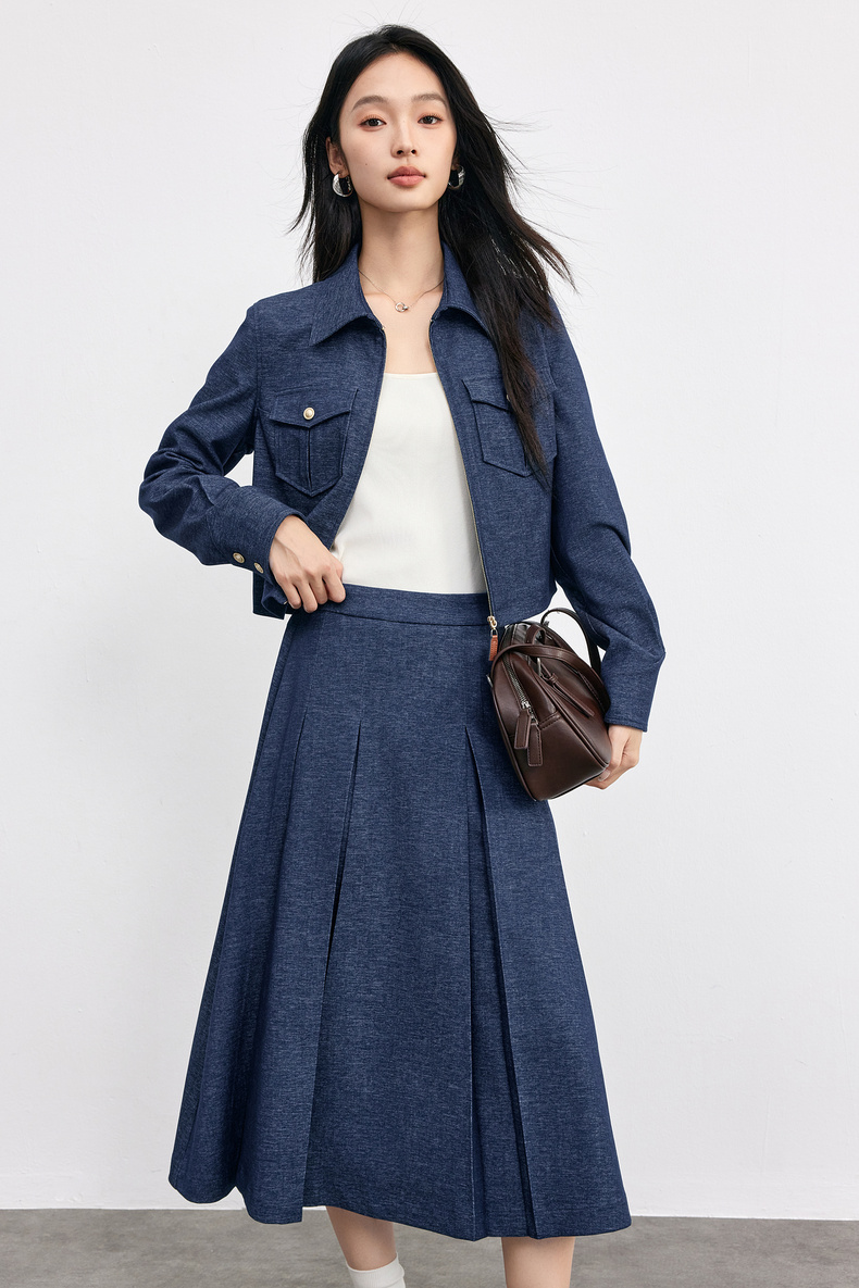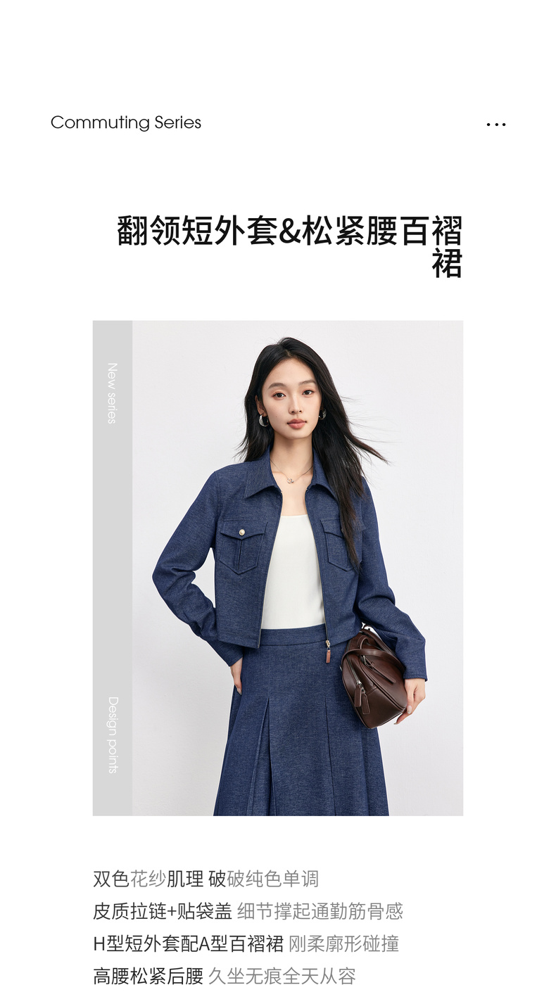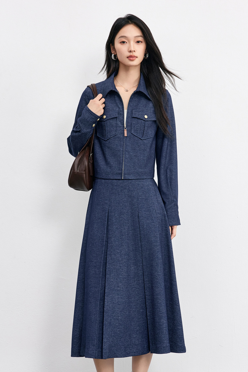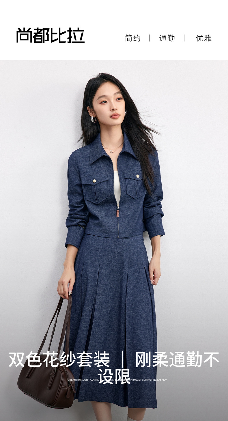 【内购】【免搭配花纱套装】简约休闲通勤皮质拉链开衫高腰百褶半裙套装-153ZA2566