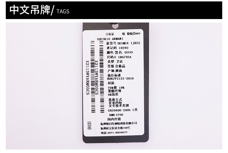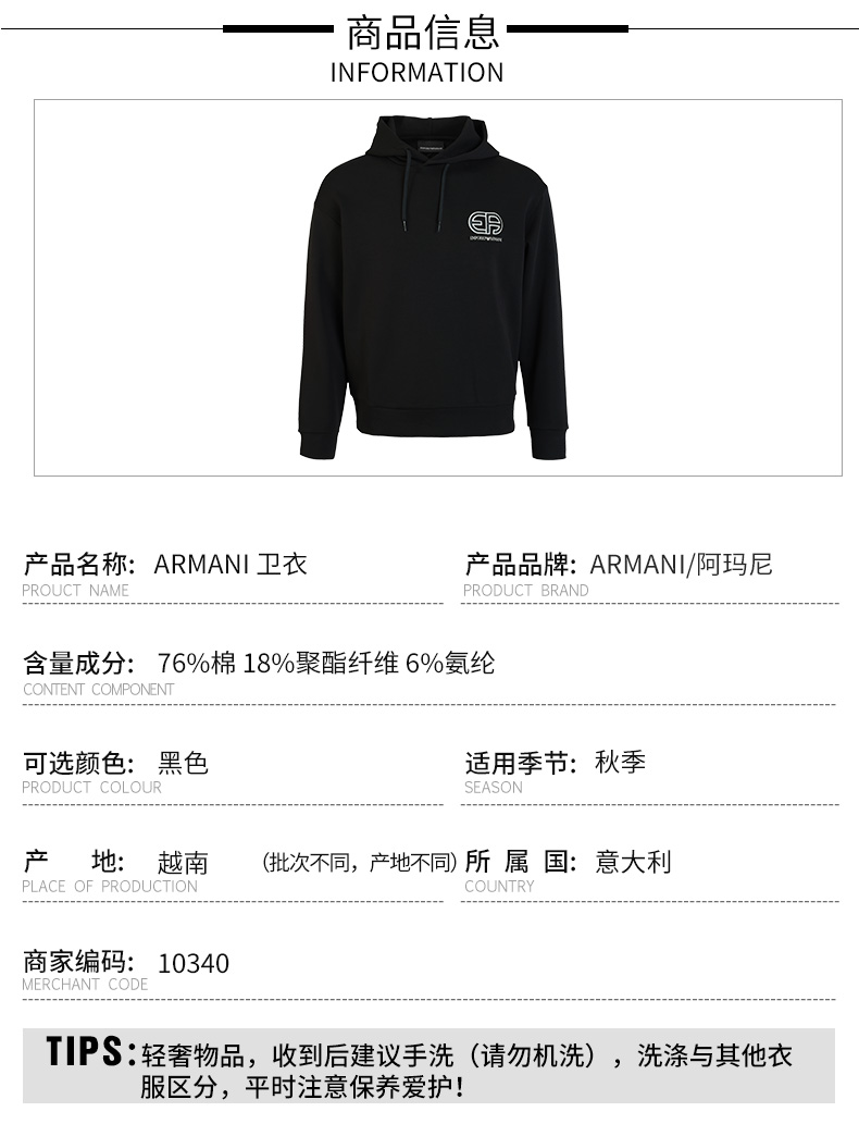 【单件特惠秒】Emporio Armani 阿玛尼 男士弹棉针绣EA logo连帽保暖卫衣外套 10340 单件缘分秒