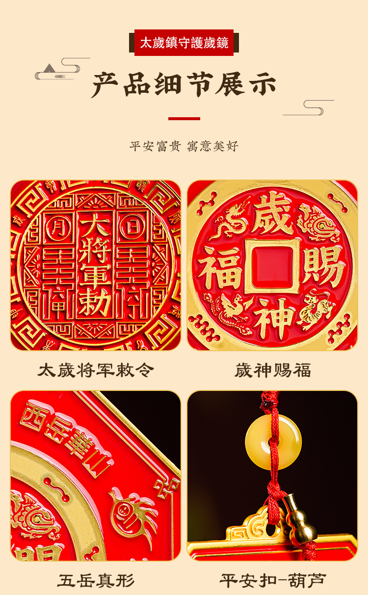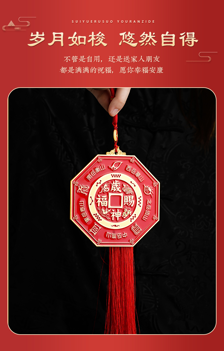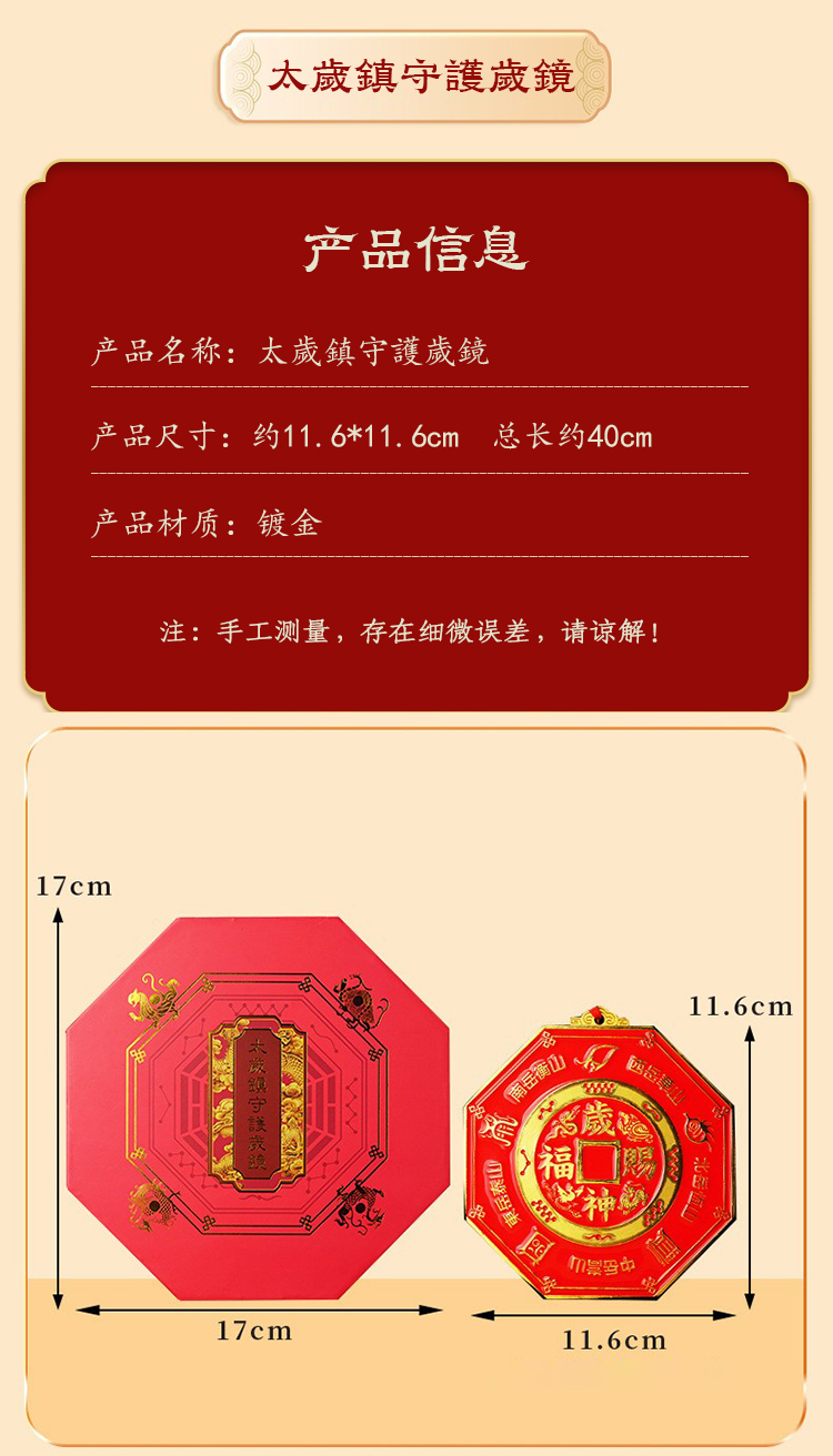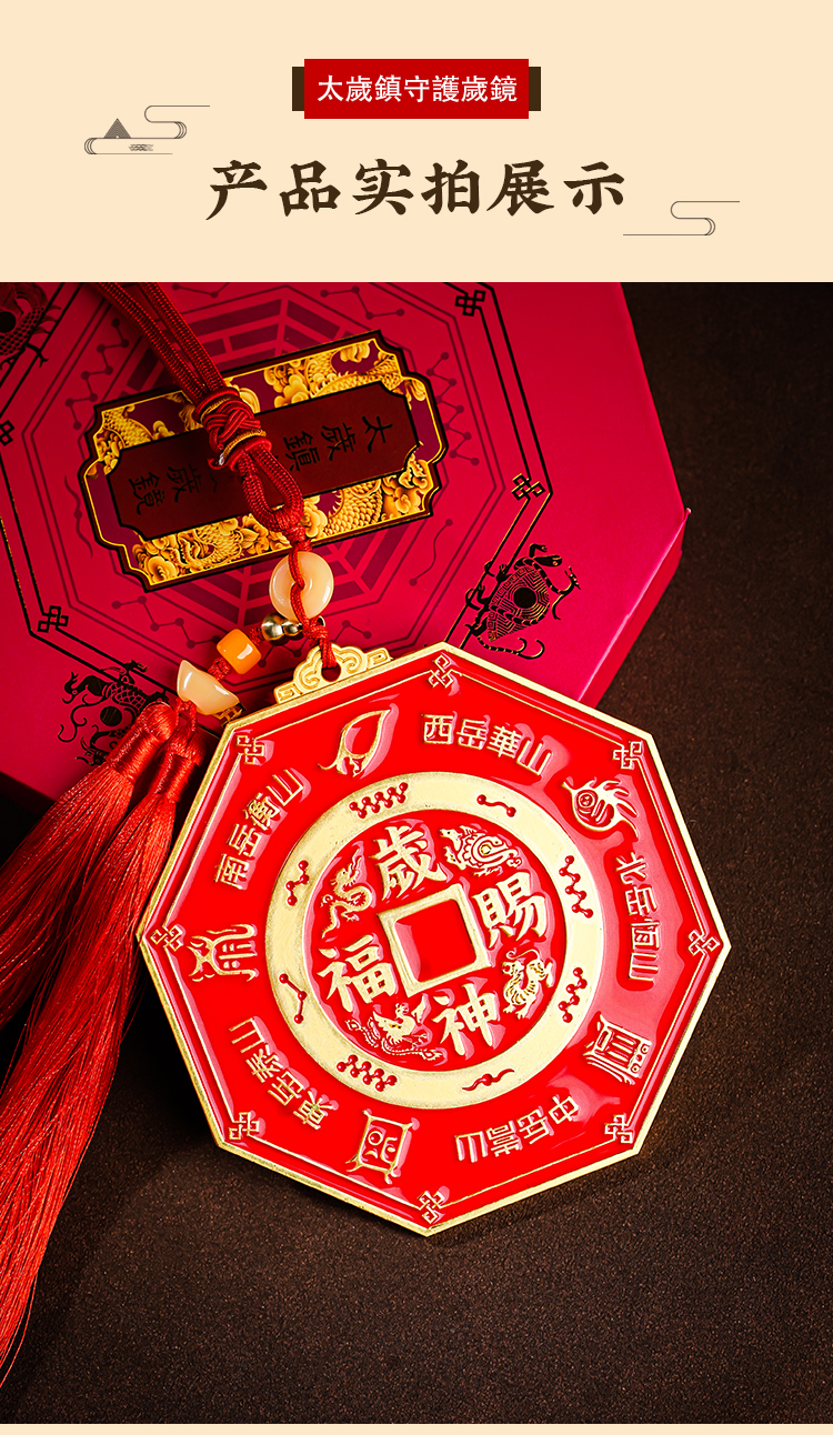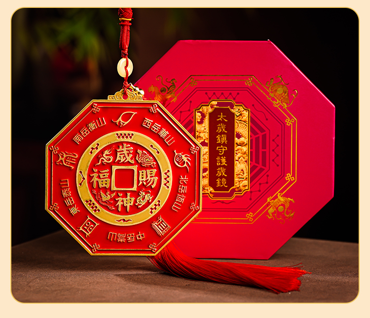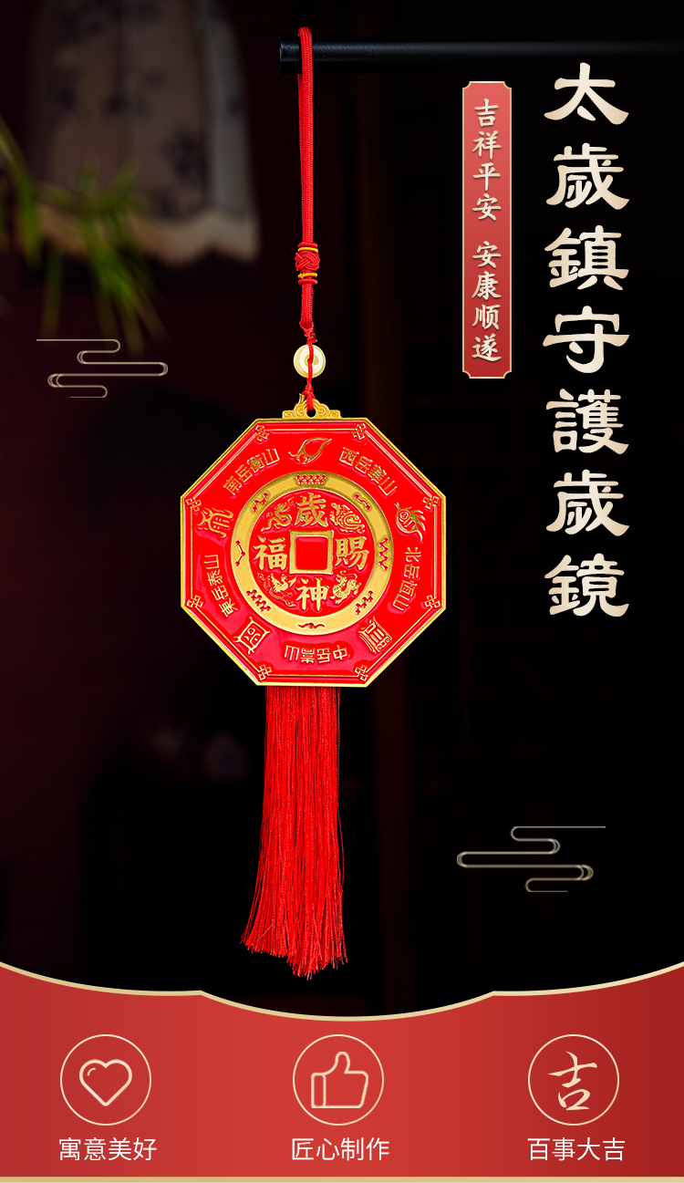 本命太歳镇守护岁镜挂件家用彩绘镀金八gua镜吉祥物摆件